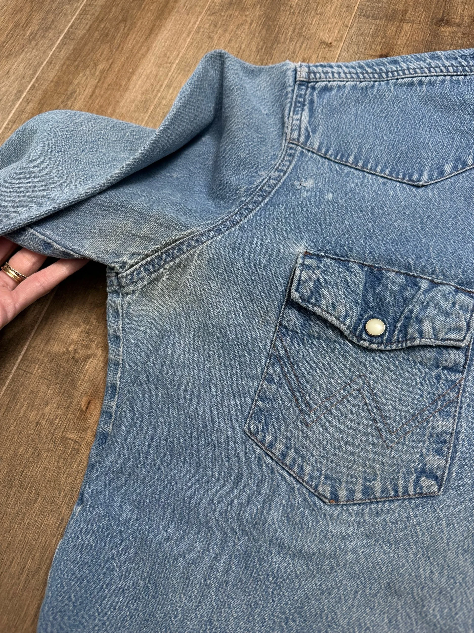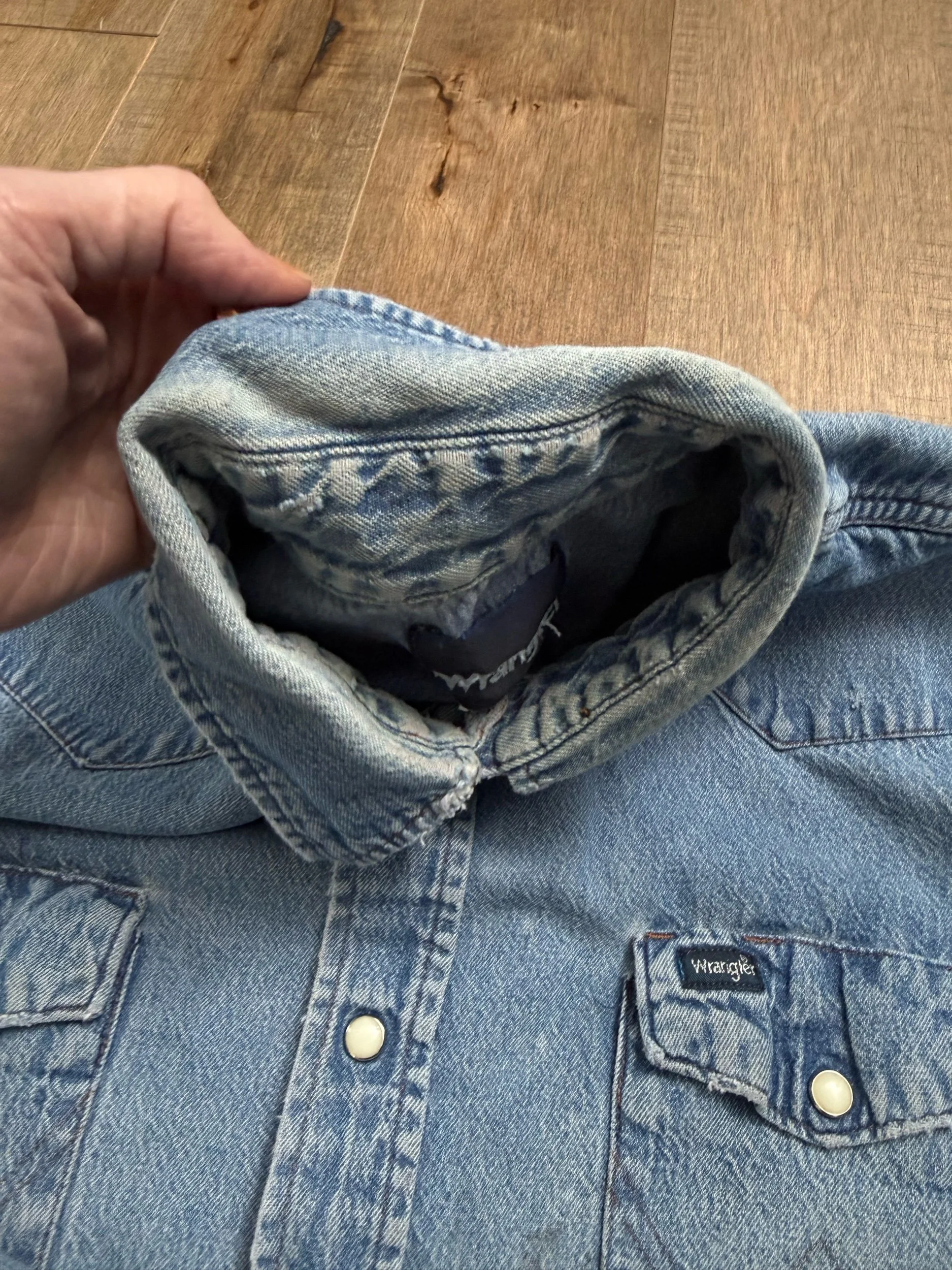 Some signs of distress and dirt tinge from work wear — the best characteristics in my opinion for a vintage denim shirt!