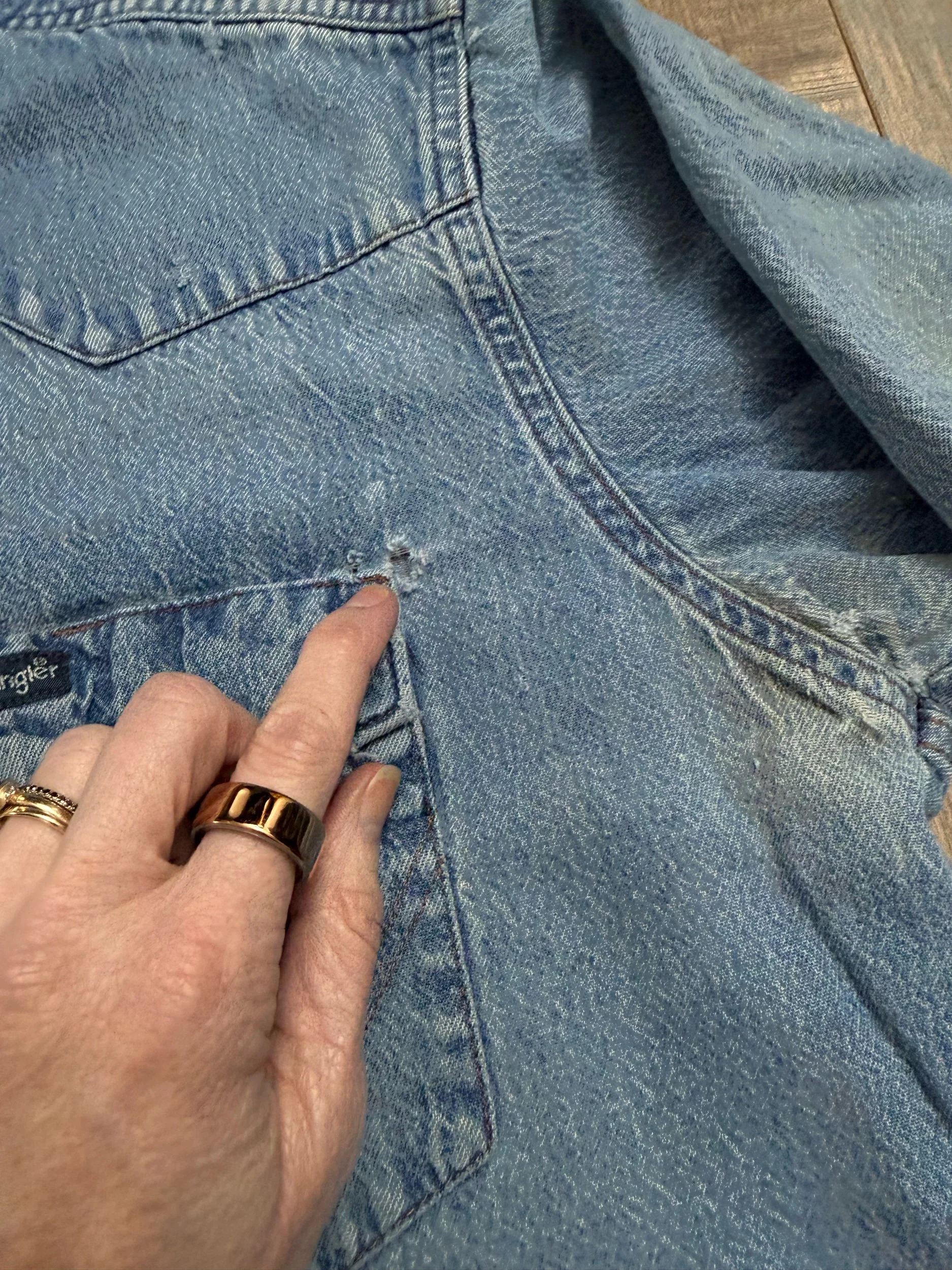 Keep in mind, vintage pieces are not new pieces. Every piece is at least 20 years old, most are older. This means they’ve been worn and likely have signs of wear - i.e. thinning areas, loose threads, signs of previous repair work, discolorations, faint (or not so faint stains), organic distressing, wear at the rivets, wear at the button holes. I do my best to describe these areas/signs of wear&tear, so please - before you buy - understand that you may receive your item and there will be signs of aging. Most buy vintage wanting this, but if you want pristine new looking clothing, vintage likely isn’t for you. And that’s A-OK!