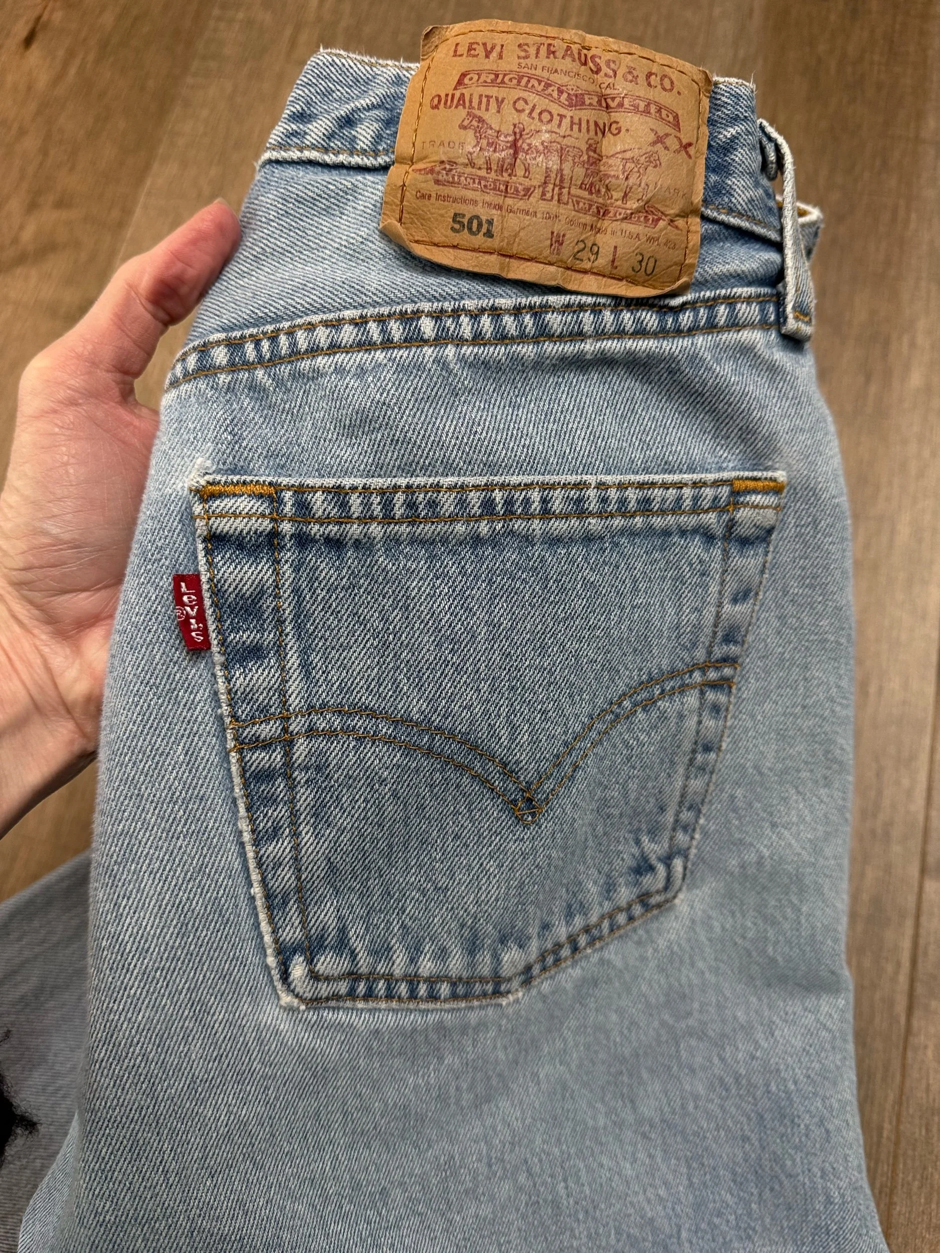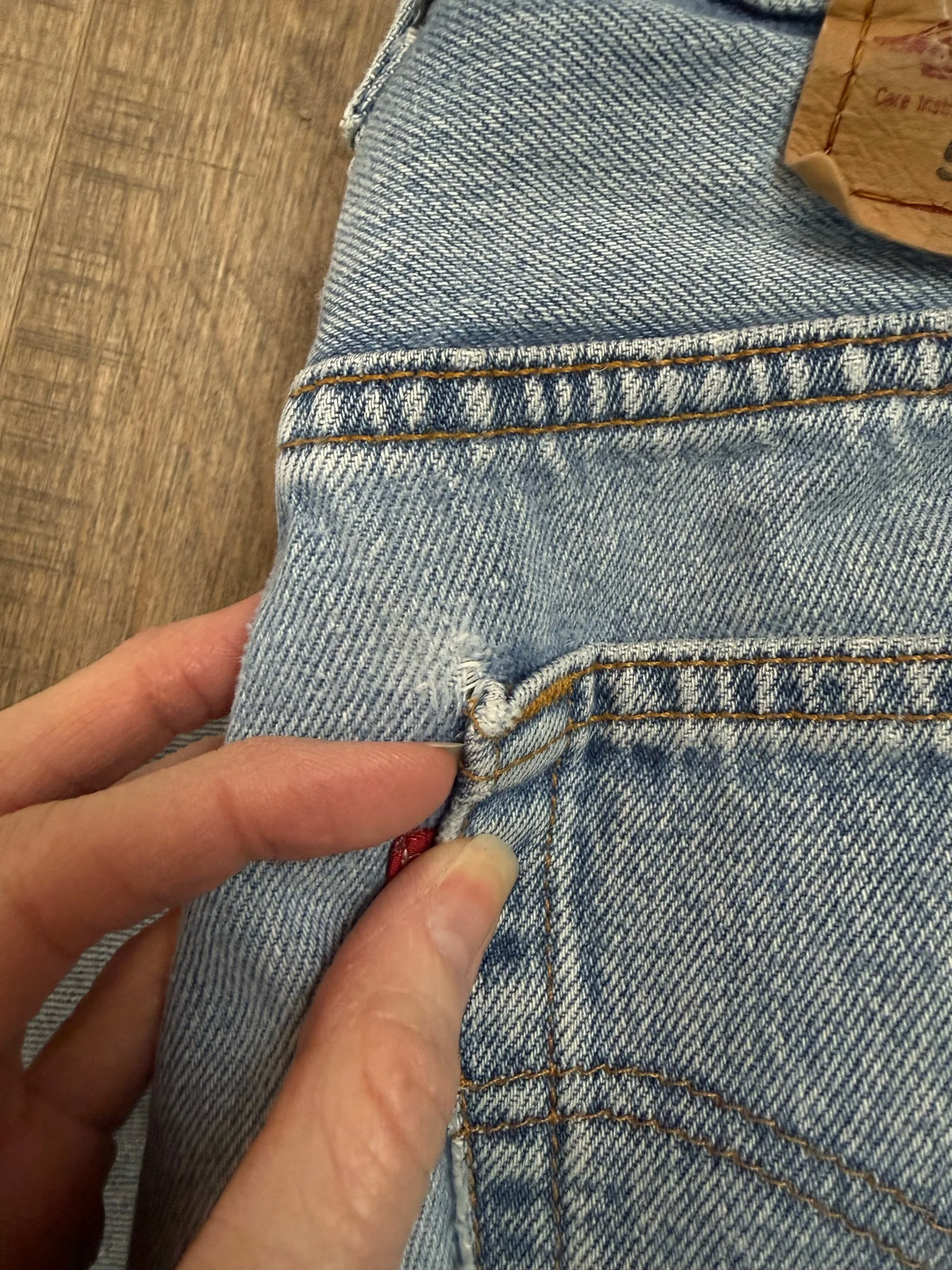 Sold as is. Keep in mind, vintage jeans are not new jeans. Every pair is at least 20 years old, most are older. This means they’ve been worn and likely have signs of wear - i.e. thinning areas, loose threads, signs of previous repair work, discolorations, faint (or not so faint stains), organic distressing, wear at the rivets, wear at the button holes. I do my best to describe these areas/signs of wear&tear, so please - before you buy - understand that you may receive your jeans and there will be signs of aging. Most buy vintage jeans wanting this, but if you want pristine new looking jeans, vintage likely isn’t for you. And that’s A-OK! Also note, the word “vintage” is not synonymous with super worn & faded. Vintage means over 20 years old. An item can be both vintage and still be new or like new condition.