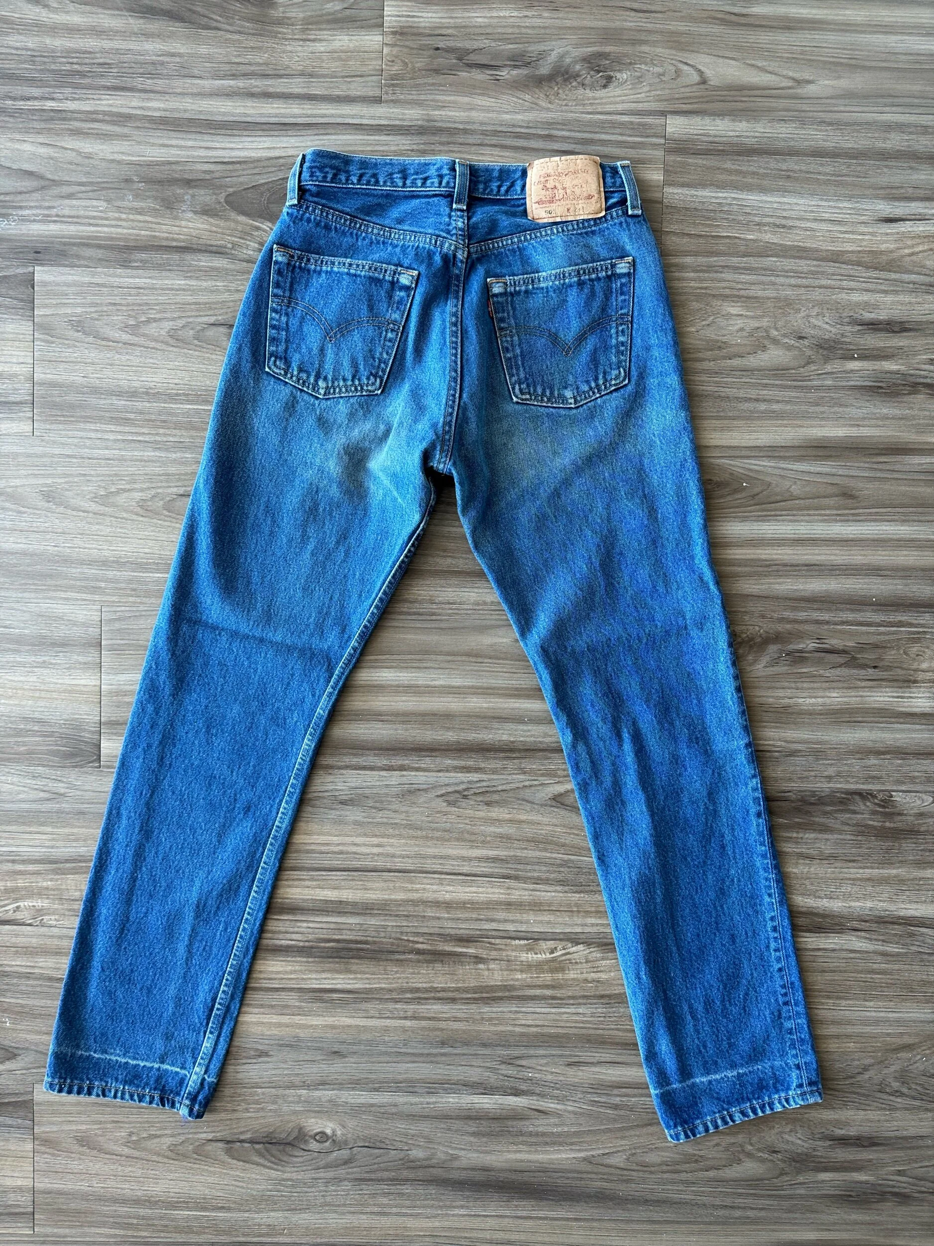 Keep in mind, vintage jeans are not new jeans. Every pair is at least 20 years old, most are older. This means they’ve been worn and likely have signs of wear - i.e. thinning areas, loose threads, signs of previous repair work, discolorations, faint (or not so faint stains), organic distressing, wear at the rivets, wear at the button holes. I do my best to describe these areas/signs of wear&tear, so please - before you buy - understand that you may receive your jeans and there will be signs of aging. Most buy vintage jeans wanting this, but if you want pristine new looking jeans, vintage likely isn’t for you. And that’s A-OK!
