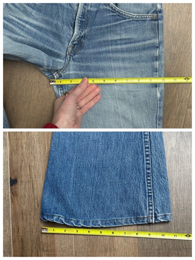 Keep in mind, vintage jeans are not new jeans. Every pair is at least 20 years old, most are older. This means they’ve been worn and likely have signs of wear - i.e. thinning areas, loose threads, signs of previous repair work, discolorations, faint (or not so faint stains), organic distressing, wear at the rivets, wear at the button holes. I do my best to describe these areas/signs of wear&tear, so please - before you buy - understand that you may receive your jeans and there will be signs of aging. Most buy vintage jeans wanting this, but if you want pristine new looking jeans, vintage likely isn’t for you. And that’s A-OK! Also note, the word “vintage” is not synonymous with super worn & faded. Vintage means over 20 years old. An item can be both vintage and still be new or like new condition.