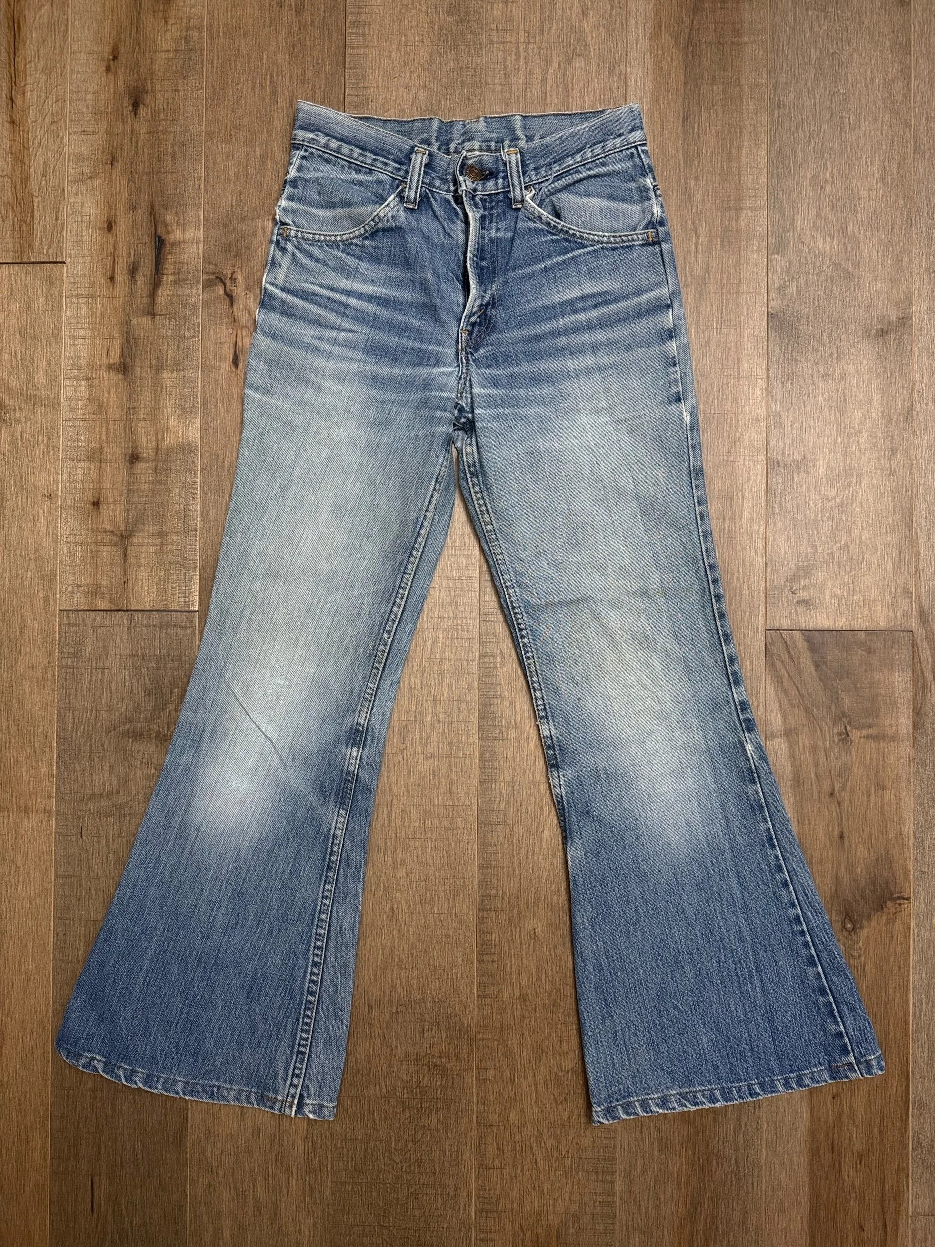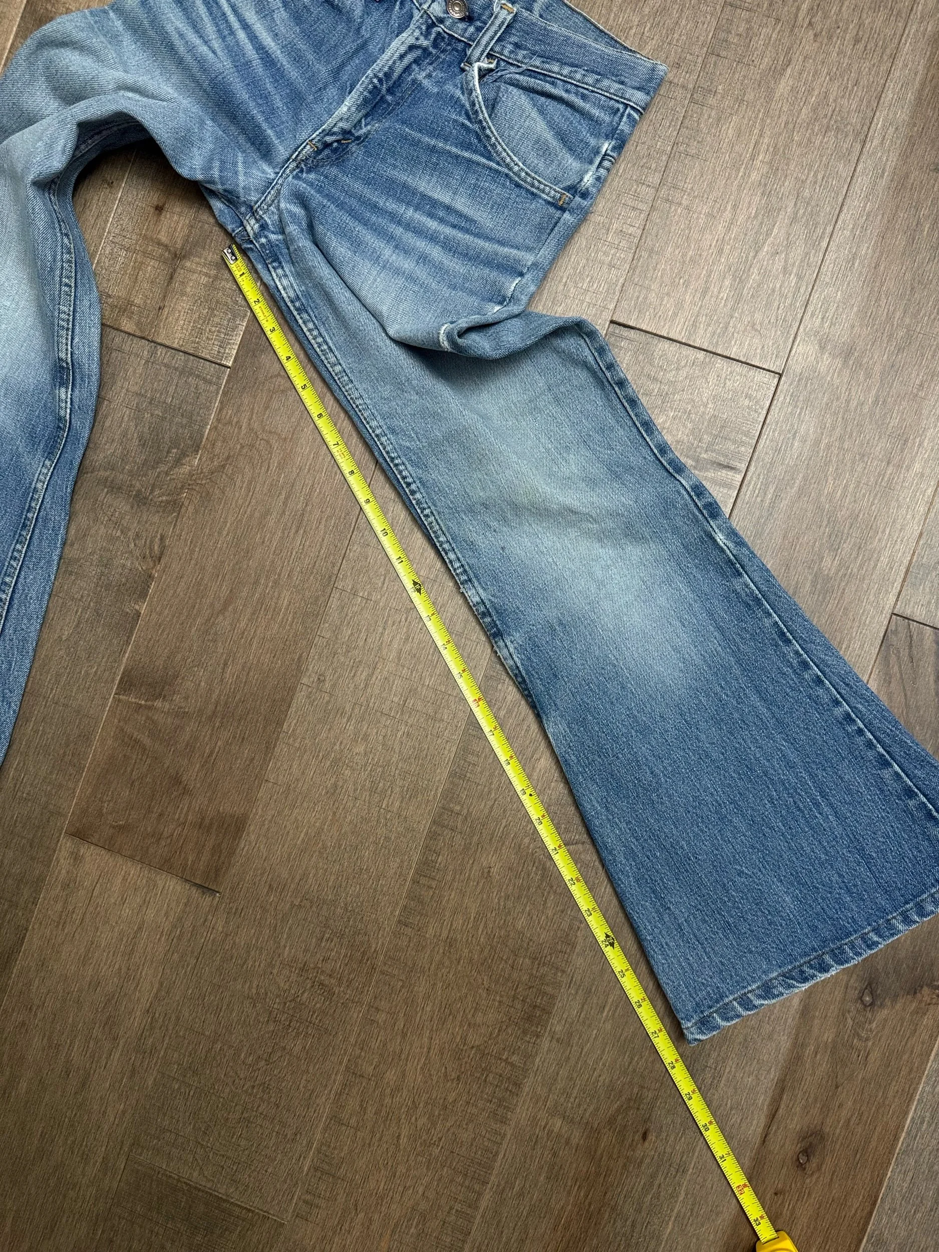 WASH: beautiful light medium blue wash with insane organic sun fades, rivet repair