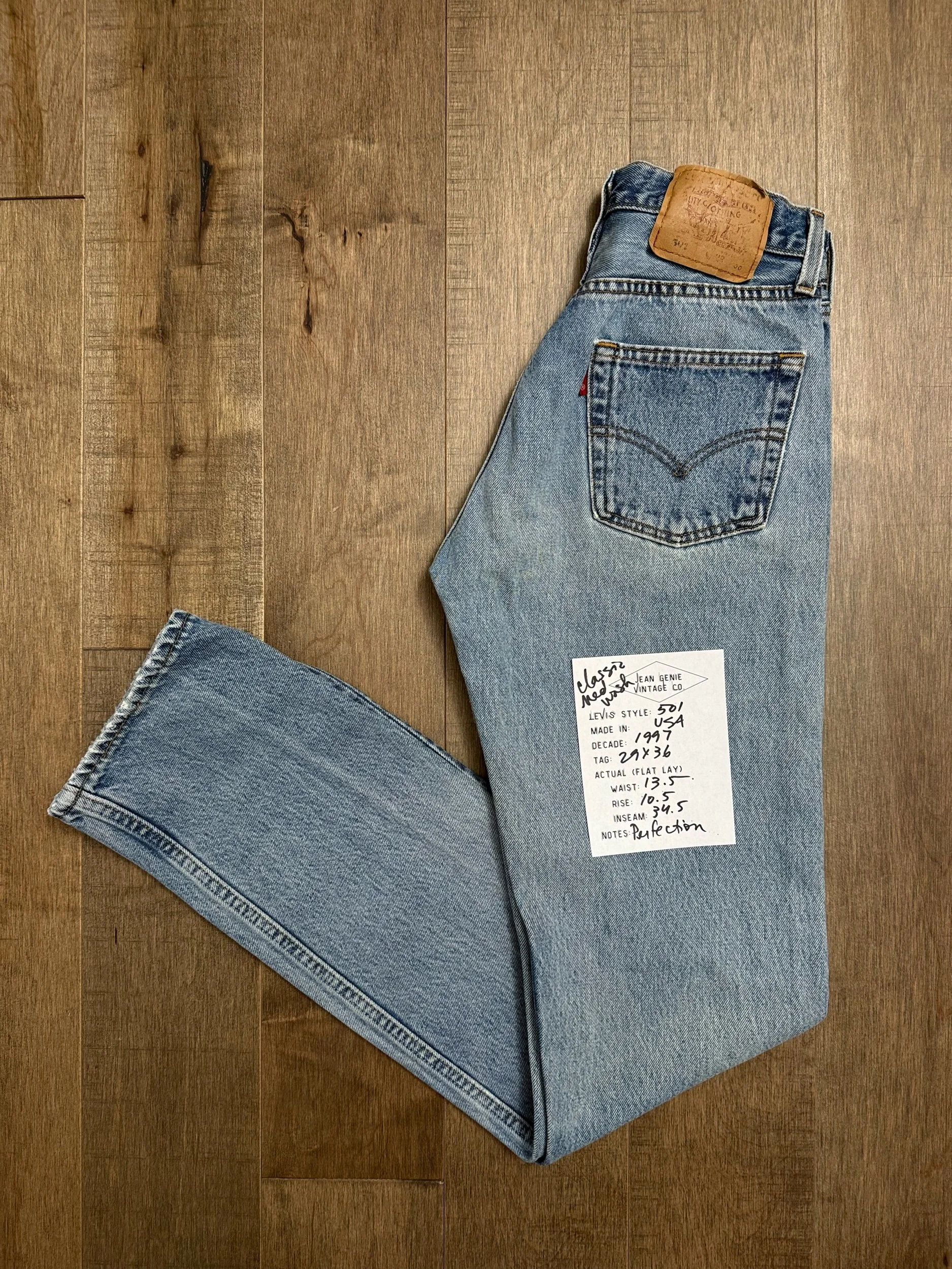 Sold as is. Keep in mind, vintage jeans are not new jeans. Every pair is at least 20 years old, most are older. This means they’ve been worn and likely have signs of wear - i.e. thinning areas, loose threads, signs of previous repair work, discolorations, faint (or not so faint stains), organic distressing, wear at the rivets, wear at the button holes. I do my best to describe these areas/signs of wear&tear, so please - before you buy - understand that you may receive your jeans and there will be signs of aging. Most buy vintage jeans wanting this, but if you want pristine new looking jeans, vintage likely isn’t for you. And that’s A-OK! Also note, the word “vintage” is not synonymous with super worn & faded. Vintage means over 20 years old. An item can be both vintage and still be new or like new condition.