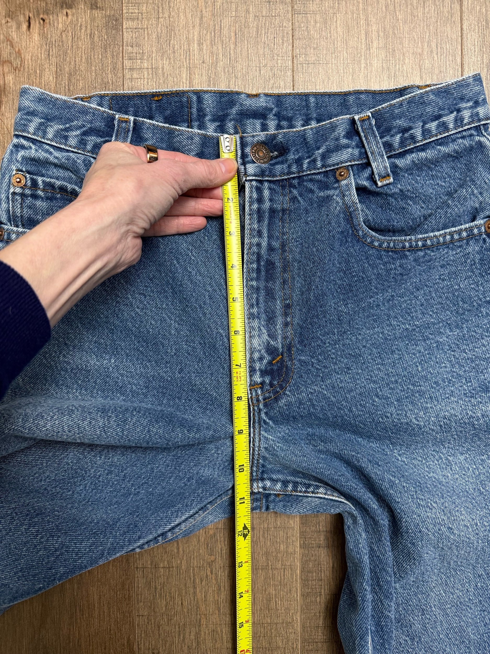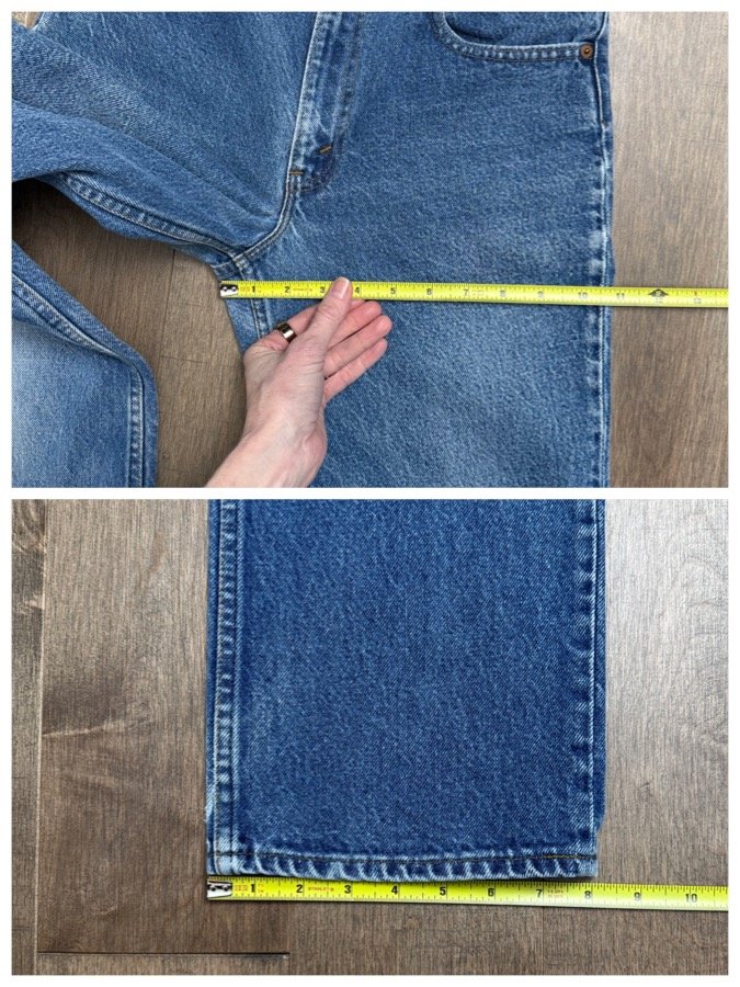 Keep in mind, vintage jeans are not new jeans. Every pair is at least 20 years old, most are older. This means they’ve been worn and likely have signs of wear - i.e. thinning areas, loose threads, signs of previous repair work, discolorations, faint (or not so faint stains), organic distressing, wear at the rivets, wear at the button holes. I do my best to describe these areas/signs of wear&tear, so please - before you buy - understand that you may receive your jeans and there will be signs of aging. Most buy vintage jeans wanting this, but if you want pristine new looking jeans, vintage likely isn’t for you. And that’s A-OK! Also note, the word “vintage” is not synonymous with super worn & faded. Vintage means over 20 years old. An item can be both vintage and still be new or like new condition.
