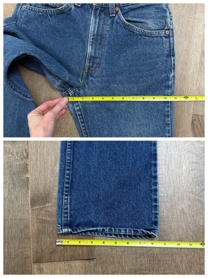 Keep in mind, vintage jeans are not new jeans. Every pair is at least 20 years old, most are older. This means they’ve been worn and likely have signs of wear - i.e. thinning areas, loose threads, signs of previous repair work, discolorations, faint (or not so faint stains), organic distressing, wear at the rivets, wear at the button holes. I do my best to describe these areas/signs of wear&tear, so please - before you buy - understand that you may receive your jeans and there will be signs of aging. Most buy vintage jeans wanting this, but if you want pristine new looking jeans, vintage likely isn’t for you. And that’s A-OK! Also note, the word “vintage” is not synonymous with super worn & faded. Vintage means over 20 years old. An item can be both vintage and still be new or like new condition.
