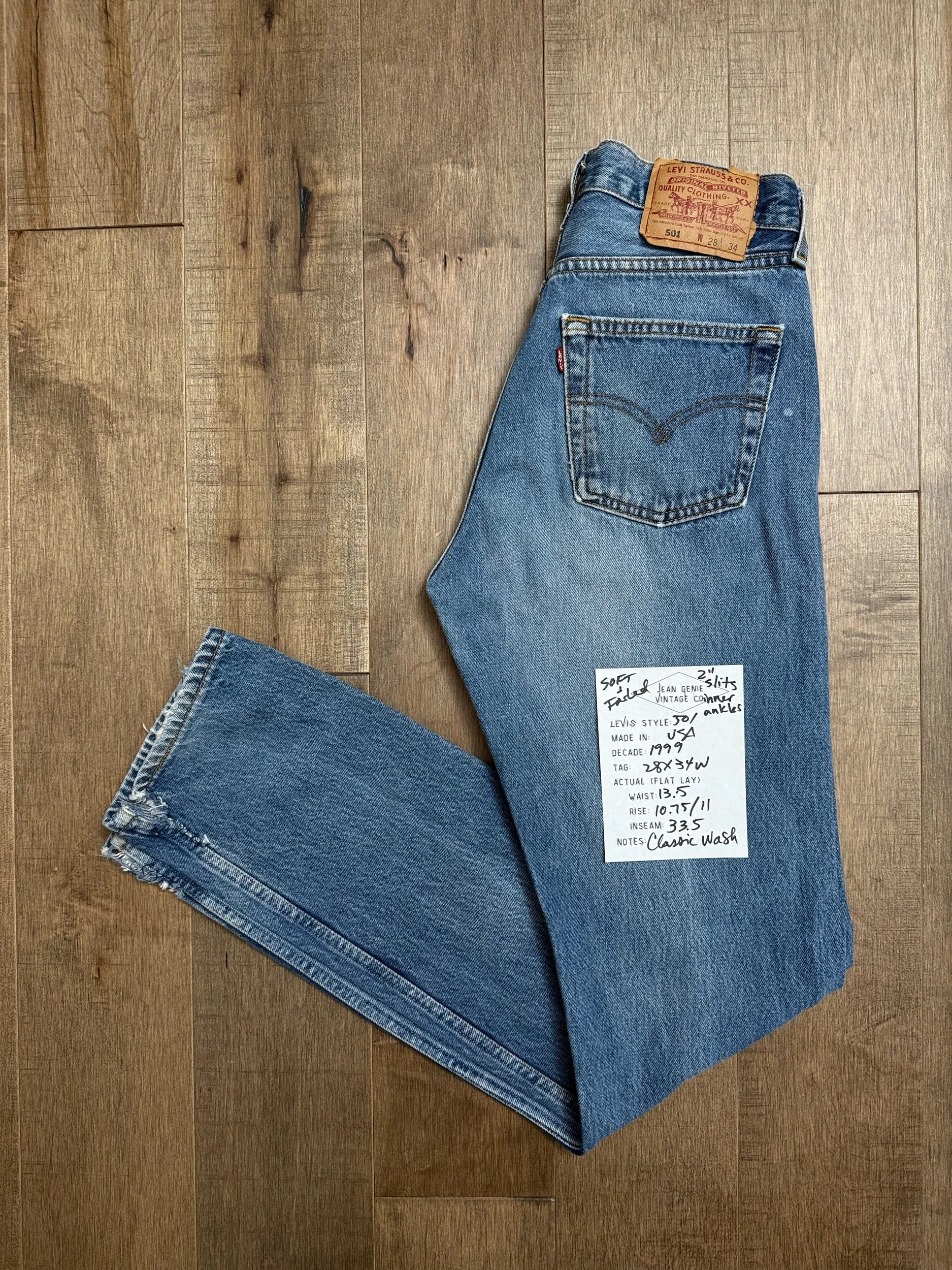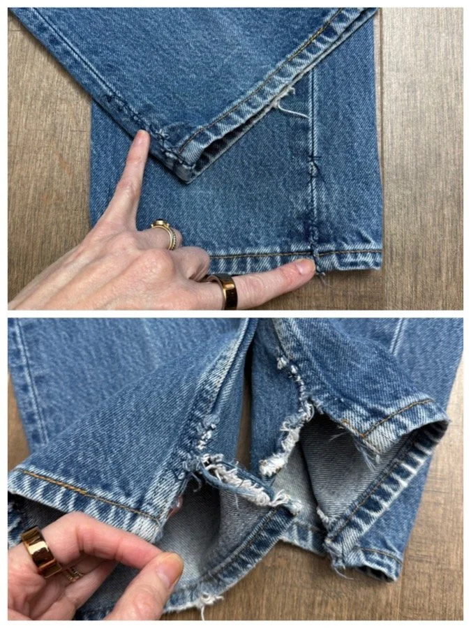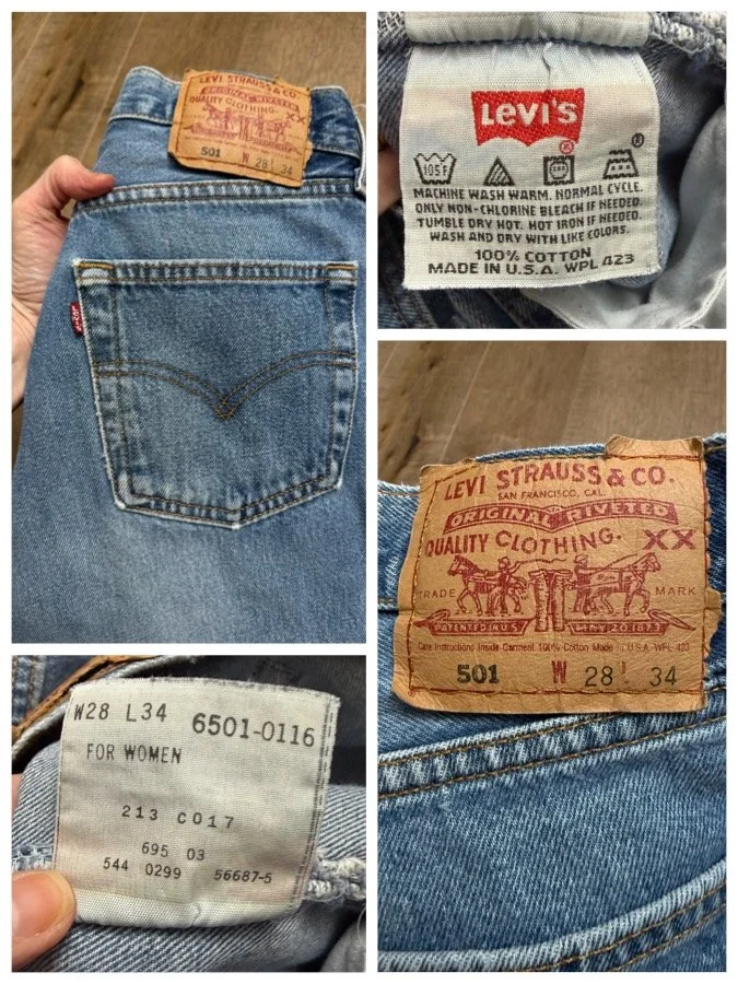 Sold as is. Keep in mind, vintage jeans are not new jeans. Every pair is at least 20 years old, most are older. This means they’ve been worn and likely have signs of wear - i.e. thinning areas, loose threads, signs of previous repair work, discolorations, faint (or not so faint stains), organic distressing, wear at the rivets, wear at the button holes. I do my best to describe these areas/signs of wear&tear, so please - before you buy - understand that you may receive your jeans and there will be signs of aging. Most buy vintage jeans wanting this, but if you want pristine new looking jeans, vintage likely isn’t for you. And that’s A-OK! Also note, the word “vintage” is not synonymous with super worn & faded. Vintage means over 20 years old. An item can be both vintage and still be new or like new condition.
