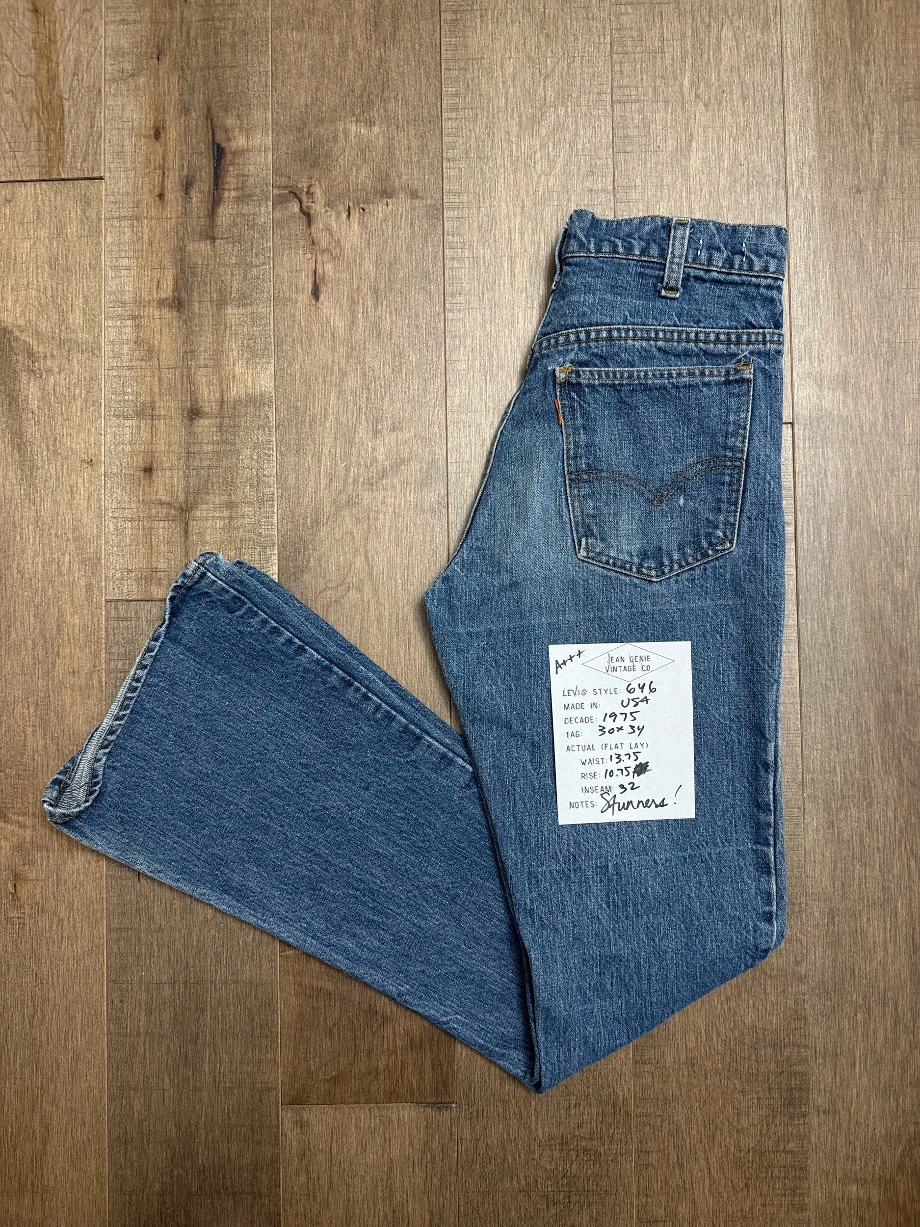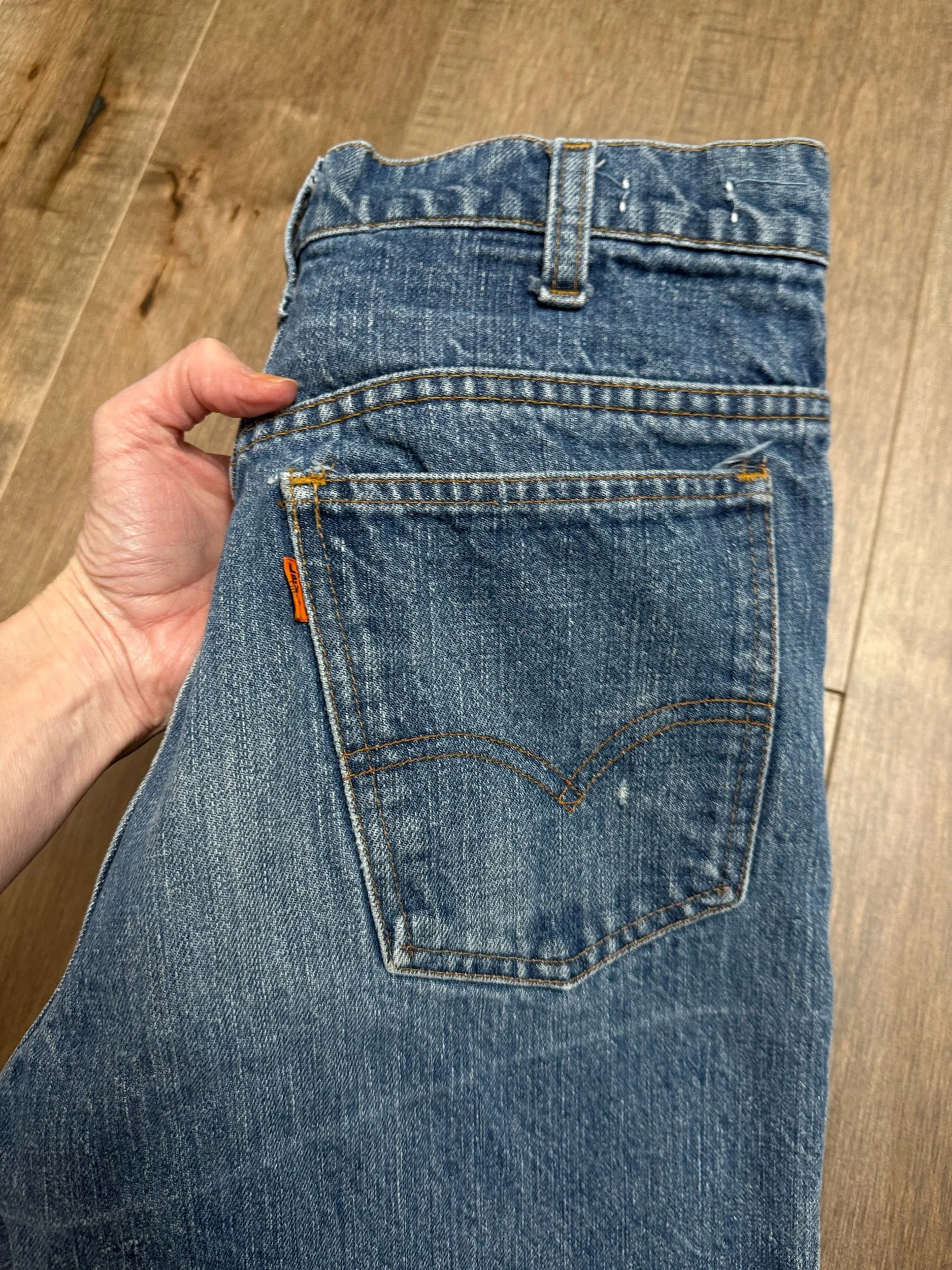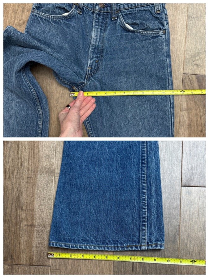 Keep in mind, vintage jeans are not new jeans. Every pair is at least 20 years old, most are older. This means they’ve been worn and likely have signs of wear - i.e. thinning areas, loose threads, signs of previous repair work, discolorations, faint (or not so faint stains), organic distressing, wear at the rivets, wear at the button holes. I do my best to describe these areas/signs of wear&tear, so please - before you buy - understand that you may receive your jeans and there will be signs of aging. Most buy vintage jeans wanting this, but if you want pristine new looking jeans, vintage likely isn’t for you. And that’s A-OK! Also note, the word “vintage” is not synonymous with super worn & faded. Vintage means over 20 years old. An item can be both vintage and still be new or like new condition.