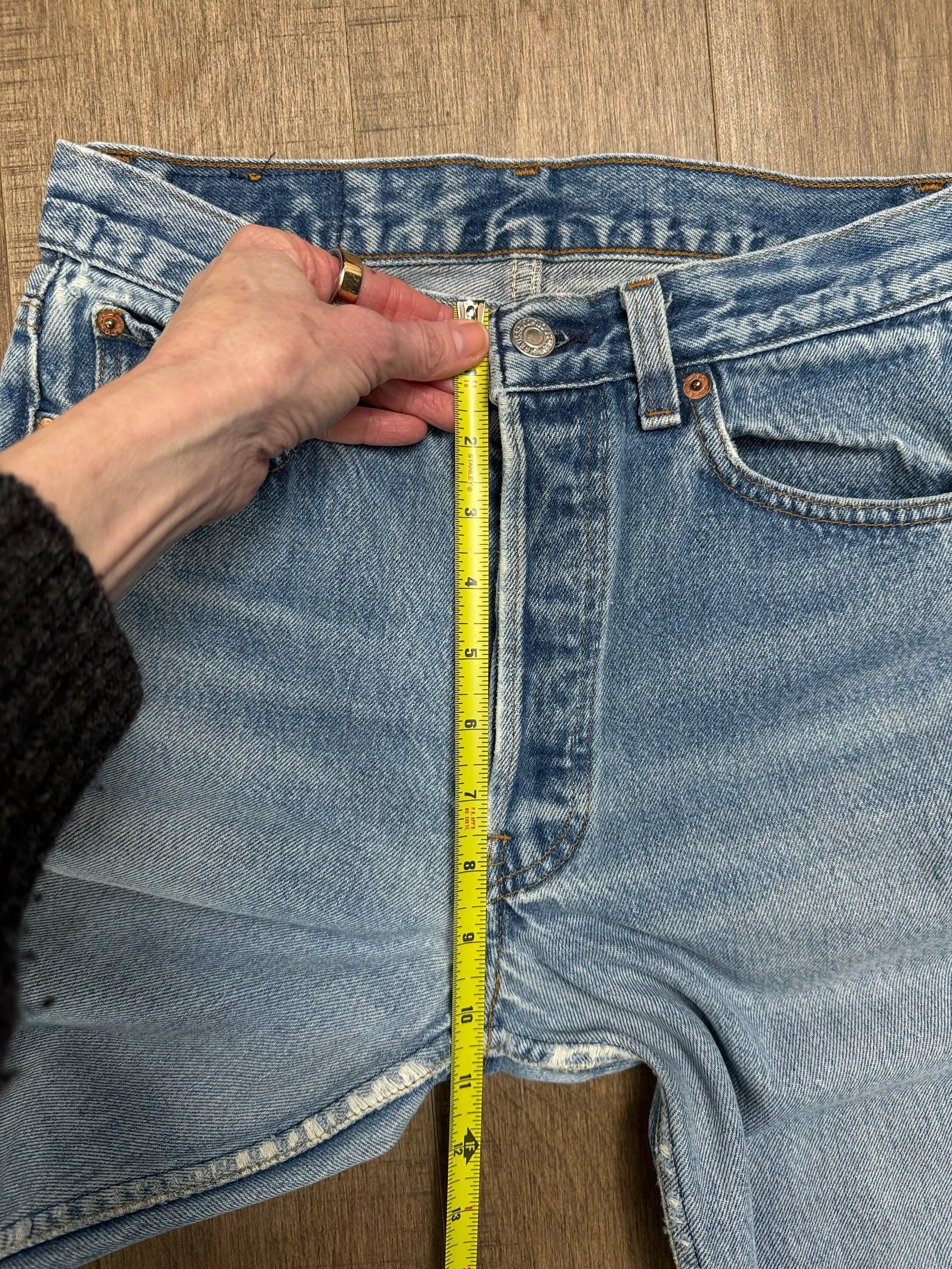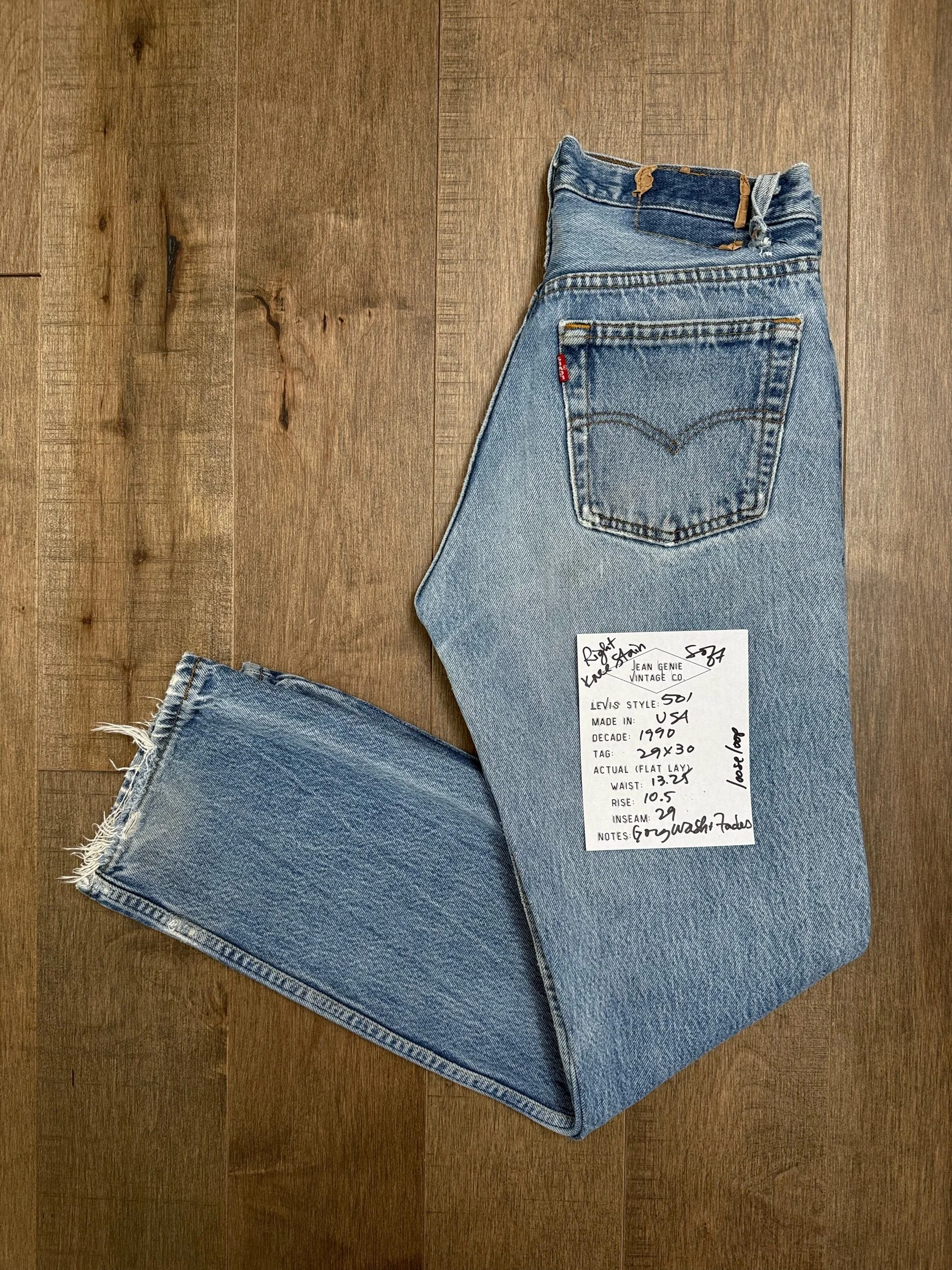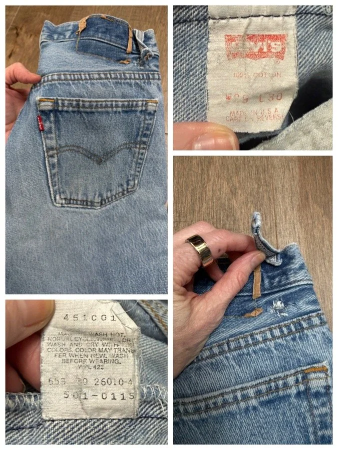 Sold as is. Keep in mind, vintage jeans are not new jeans. Every pair is at least 20 years old, most are older. This means they’ve been worn and likely have signs of wear - i.e. thinning areas, loose threads, signs of previous repair work, discolorations, faint (or not so faint stains), organic distressing, wear at the rivets, wear at the button holes. I do my best to describe these areas/signs of wear&tear, so please - before you buy - understand that you may receive your jeans and there will be signs of aging. Most buy vintage jeans wanting this, but if you want pristine new looking jeans, vintage likely isn’t for you. And that’s A-OK! Also note, the word “vintage” is not synonymous with super worn & faded. Vintage means over 20 years old. An item can be both vintage and still be new or like new condition.