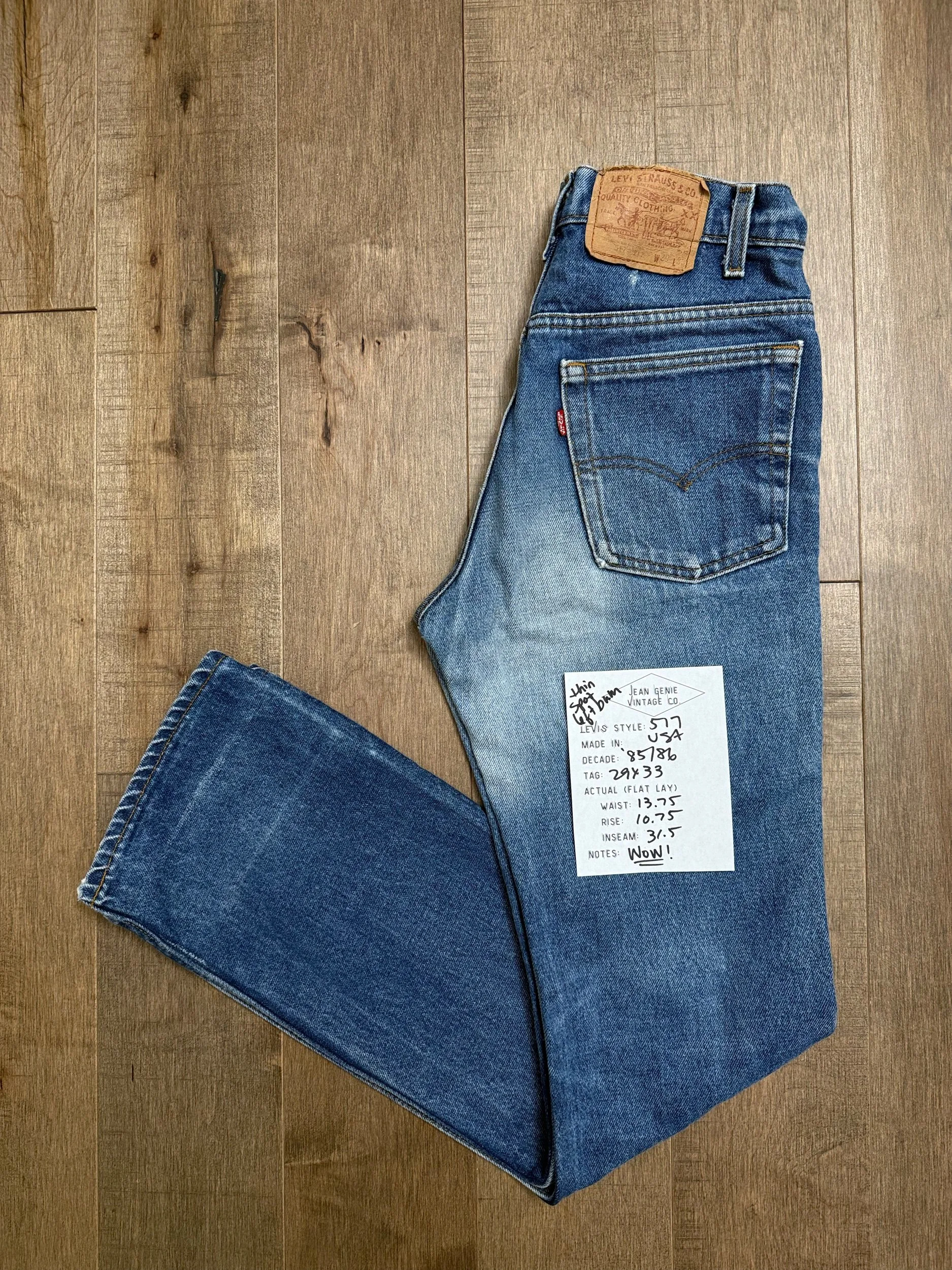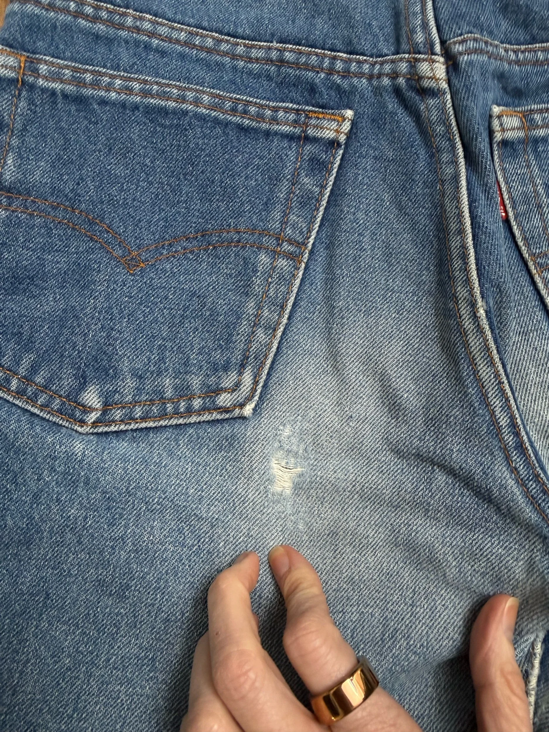 Keep in mind, vintage jeans are not new jeans. Every pair is at least 20 years old, most are older. This means they’ve been worn and likely have signs of wear - i.e. thinning areas, loose threads, signs of previous repair work, discolorations, faint (or not so faint stains), organic distressing, wear at the rivets, wear at the button holes. I do my best to describe these areas/signs of wear&tear, so please - before you buy - understand that you may receive your jeans and there will be signs of aging. Most buy vintage jeans wanting this, but if you want pristine new looking jeans, vintage likely isn’t for you. And that’s A-OK! Also note, the word “vintage” is not synonymous with super worn & faded. Vintage means over 20 years old. An item can be both vintage and still be new or like new condition.