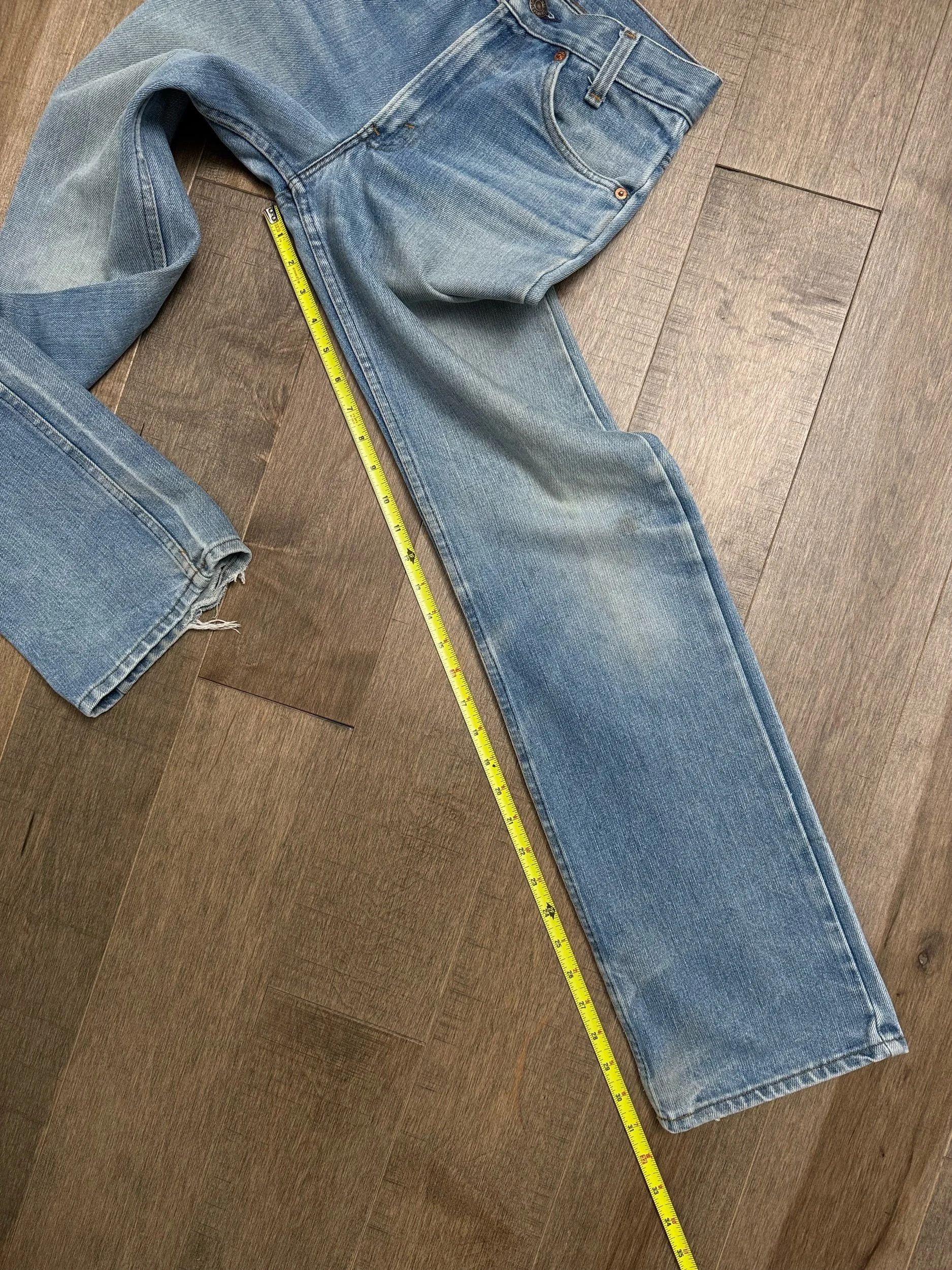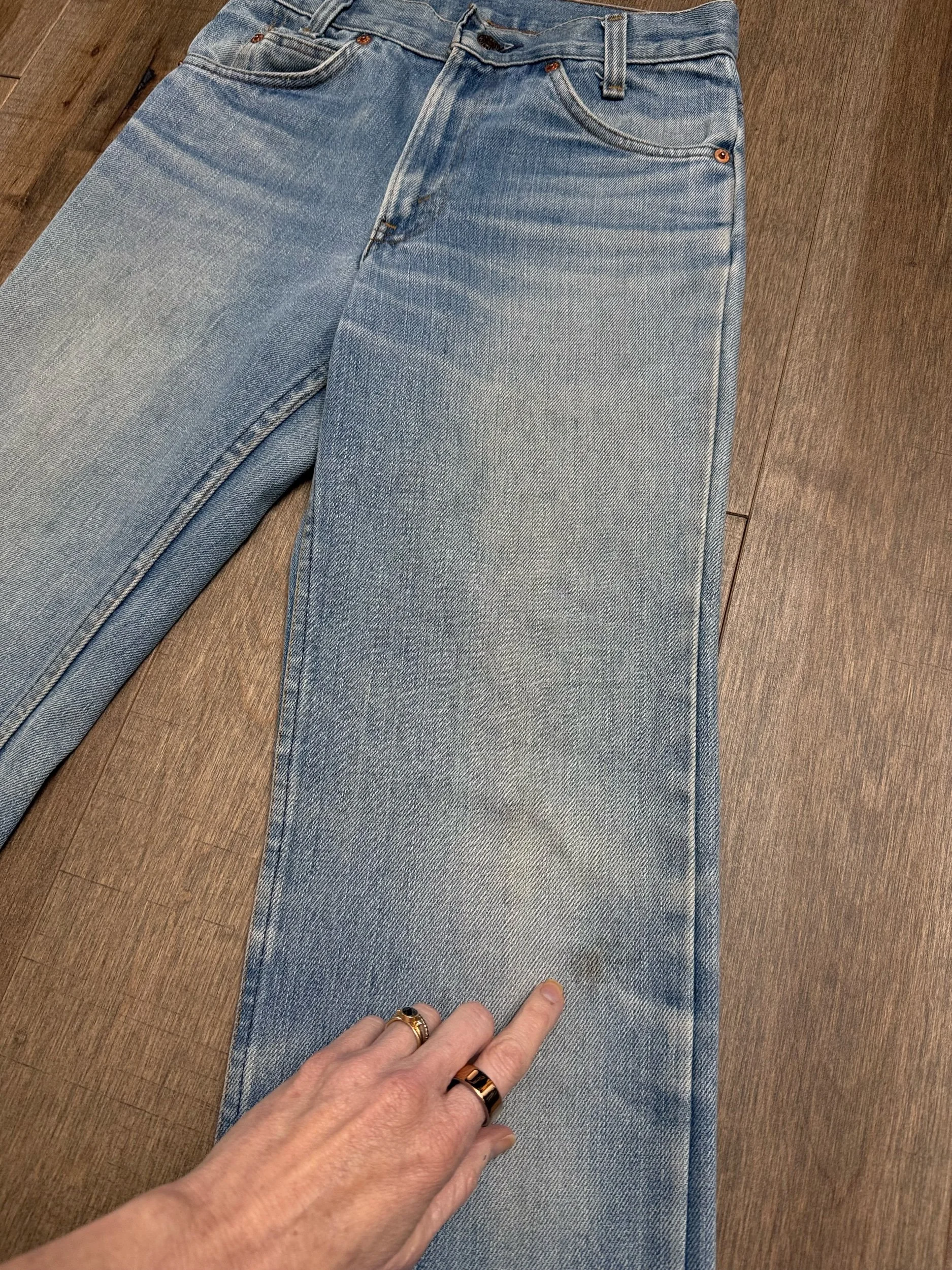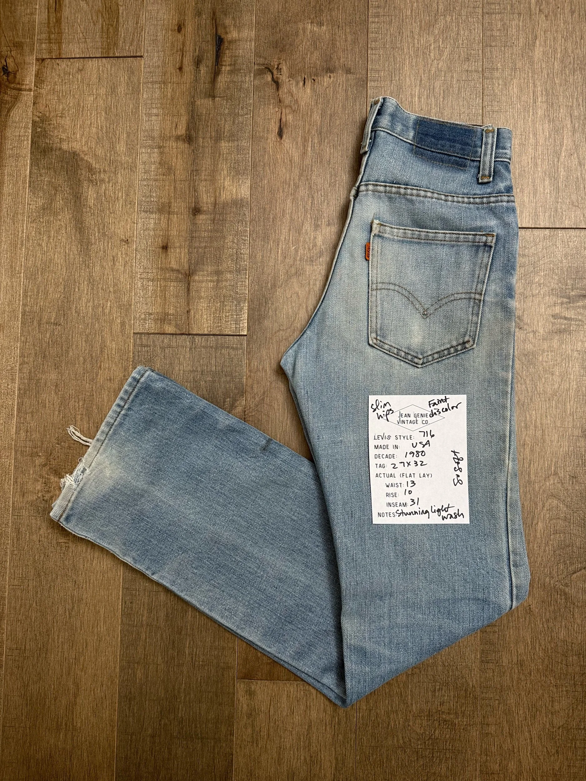 Keep in mind, vintage jeans are not new jeans. Every pair is at least 20 years old, most are older. This means they’ve been worn and likely have signs of wear - i.e. thinning areas, loose threads, signs of previous repair work, discolorations, faint (or not so faint stains), organic distressing, wear at the rivets, wear at the button holes. I do my best to describe these areas/signs of wear&tear, so please - before you buy - understand that you may receive your jeans and there will be signs of aging. Most buy vintage jeans wanting this, but if you want pristine new looking jeans, vintage likely isn’t for you. And that’s A-OK! Also note, the word “vintage” is not synonymous with super worn & faded. Vintage means over 20 years old. An item can be both vintage and still be new or like new condition.