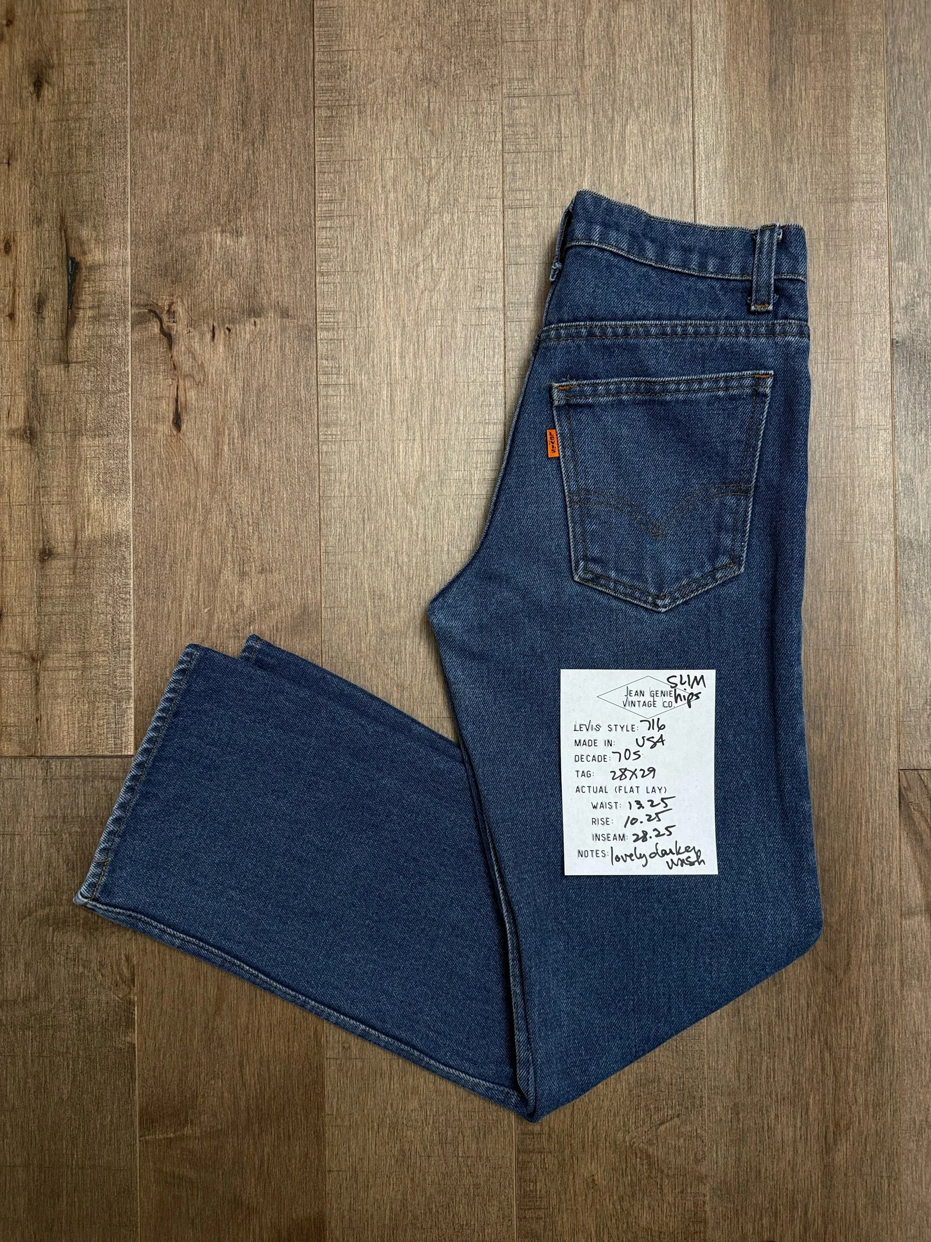 The 716: Maybe 717. Very faded on the tag. Similar to a 517, but much slimmer cut through the hips and slightly lower rise. These were known as a “student cut” back in the day.