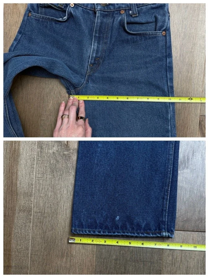 Keep in mind, vintage jeans are not new jeans. Every pair is at least 20 years old, most are older. This means they’ve been worn and likely have signs of wear - i.e. thinning areas, loose threads, signs of previous repair work, discolorations, faint (or not so faint stains), organic distressing, wear at the rivets, wear at the button holes. I do my best to describe these areas/signs of wear&tear, so please - before you buy - understand that you may receive your jeans and there will be signs of aging. Most buy vintage jeans wanting this, but if you want pristine new looking jeans, vintage likely isn’t for you. And that’s A-OK! Also note, the word “vintage” is not synonymous with super worn & faded. Vintage means over 20 years old. An item can be both vintage and still be new or like new condition.