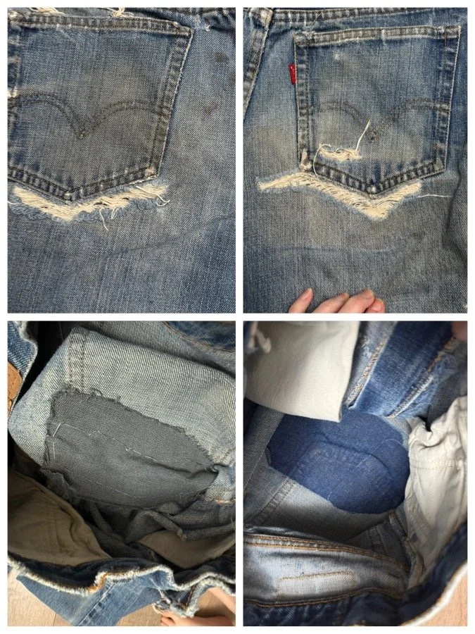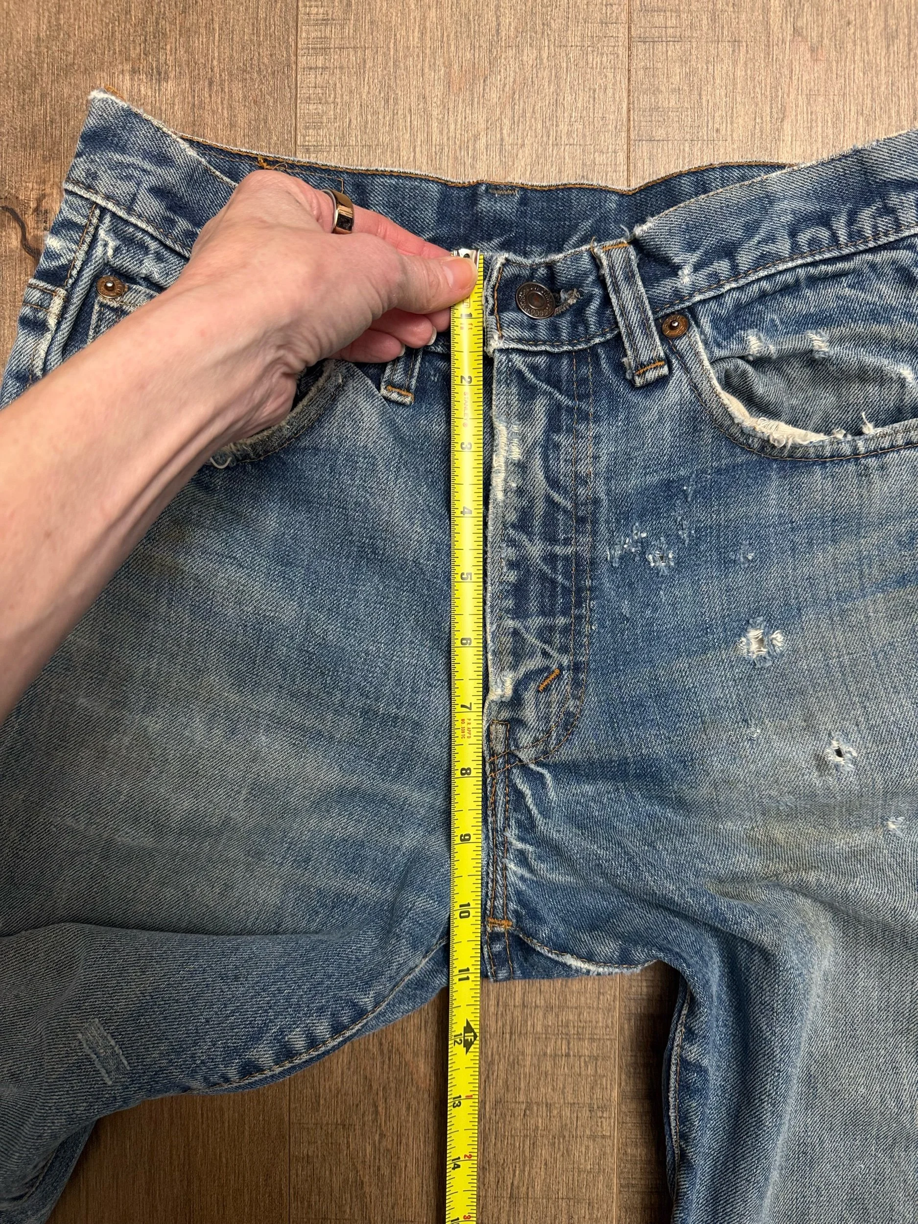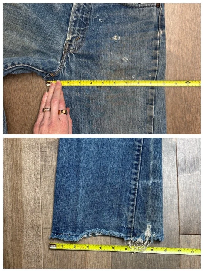Keep in mind, vintage jeans are not new jeans. Every pair is at least 20 years old, most are older. This means they’ve been worn and likely have signs of wear - i.e. thinning areas, loose threads, signs of previous repair work, discolorations, faint (or not so faint stains), organic distressing, wear at the rivets, wear at the button holes. I do my best to describe these areas/signs of wear&tear, so please - before you buy - understand that you may receive your jeans and there will be signs of aging. Most buy vintage jeans wanting this, but if you want pristine new looking jeans, vintage likely isn’t for you. And that’s A-OK! Also note, the word “vintage” is not synonymous with super worn & faded. Vintage means over 20 years old. An item can be both vintage and still be new or like new condition.