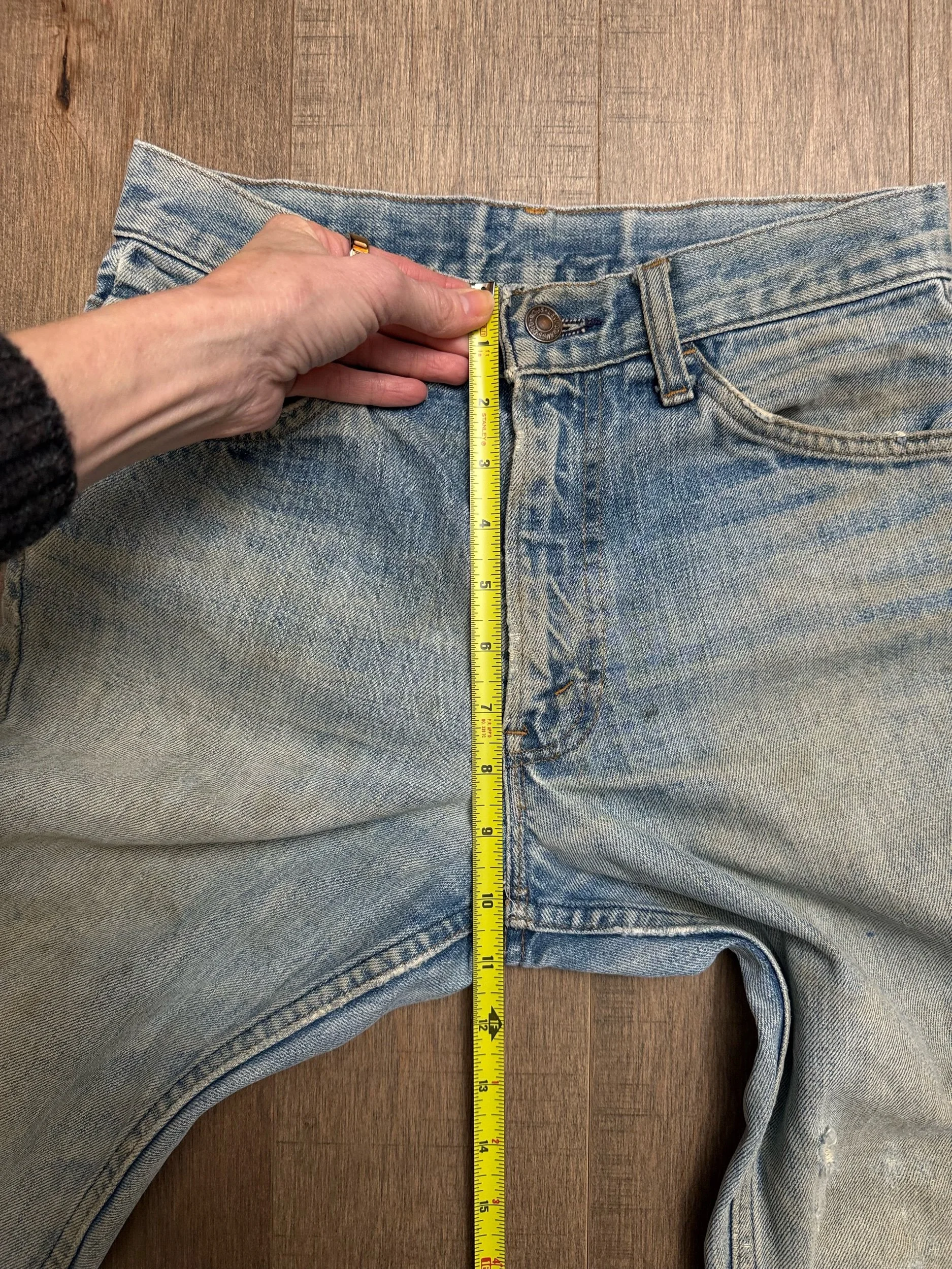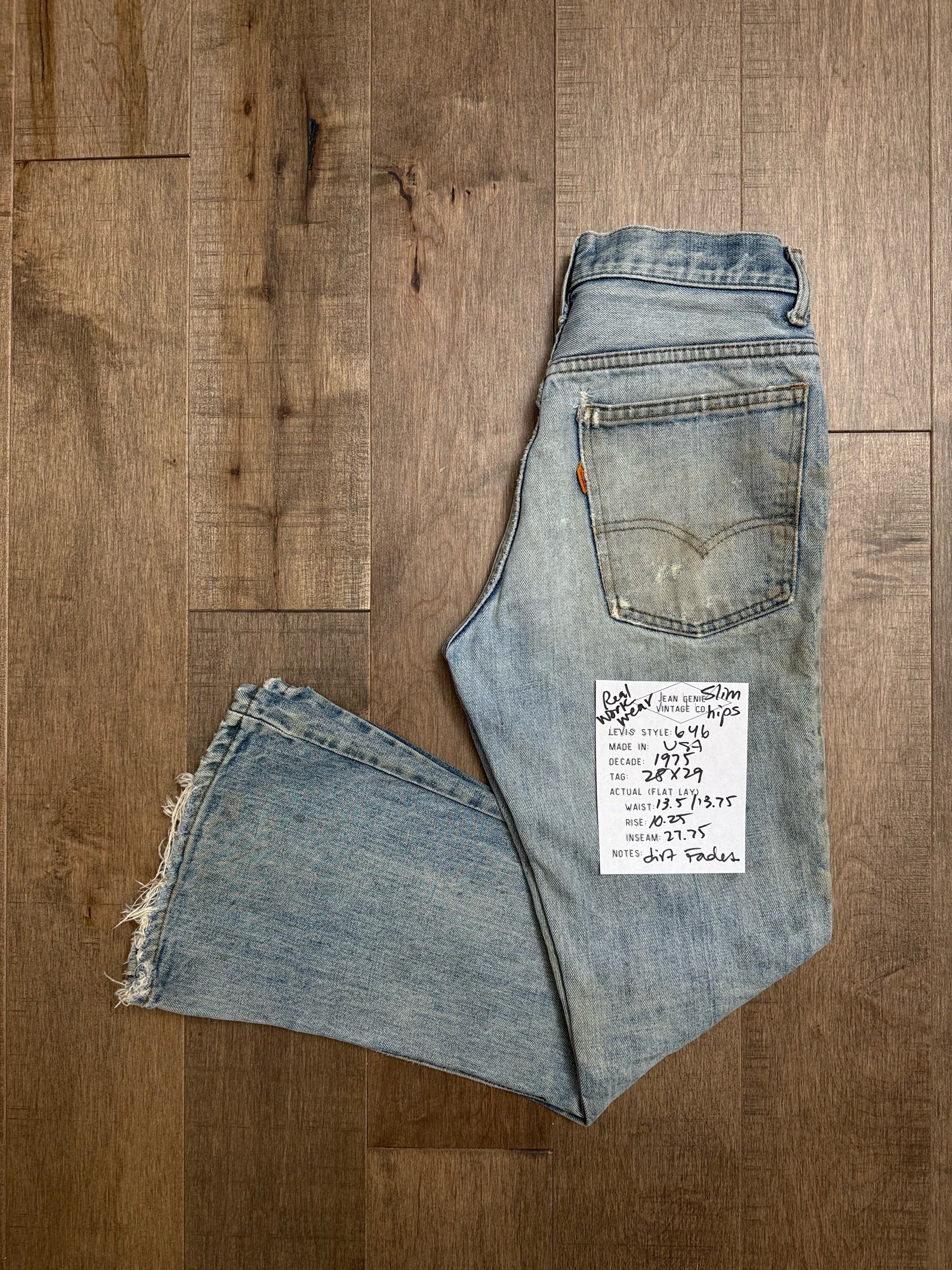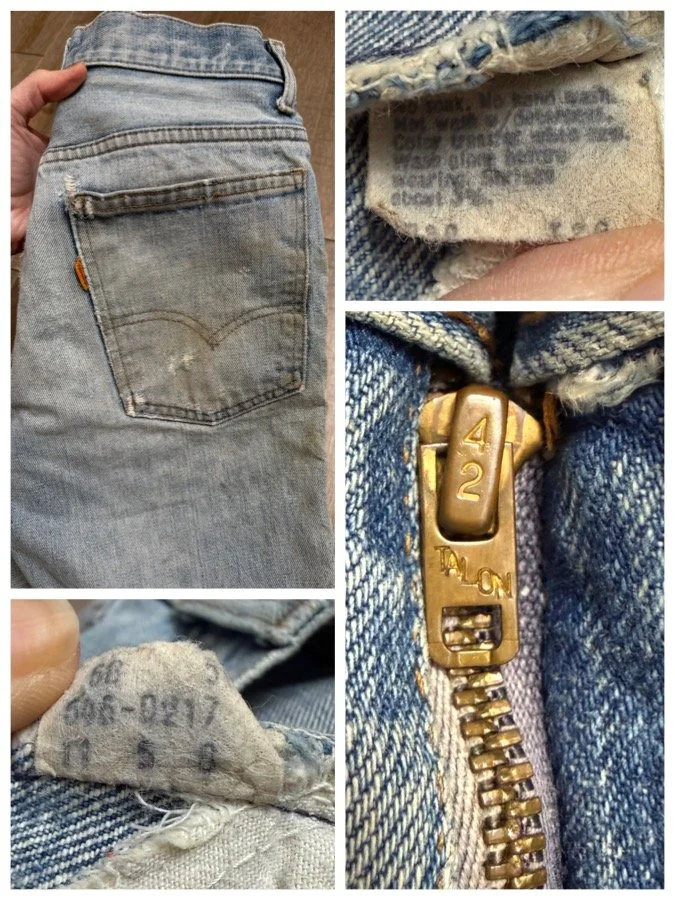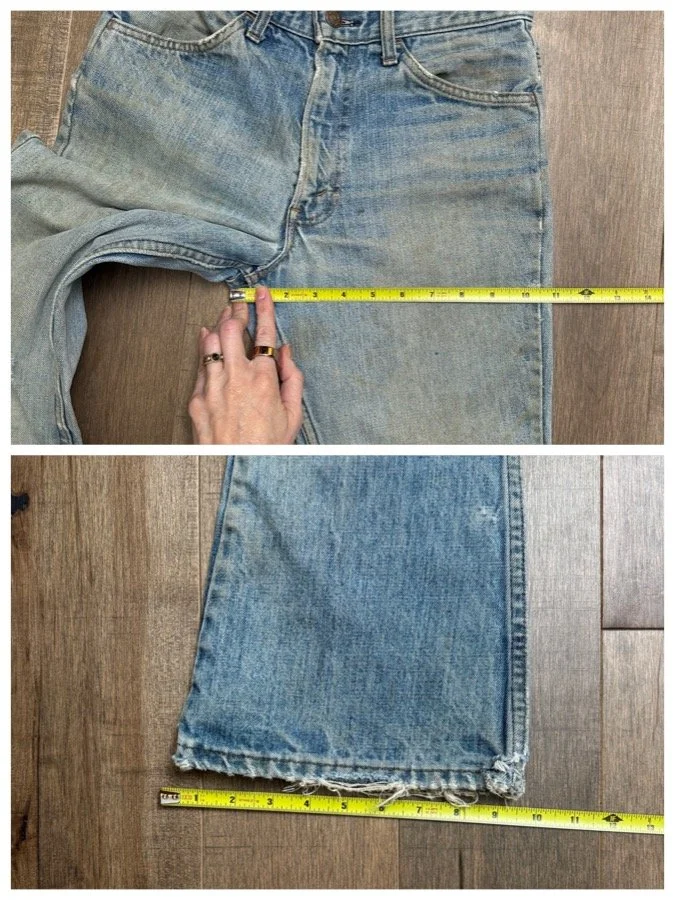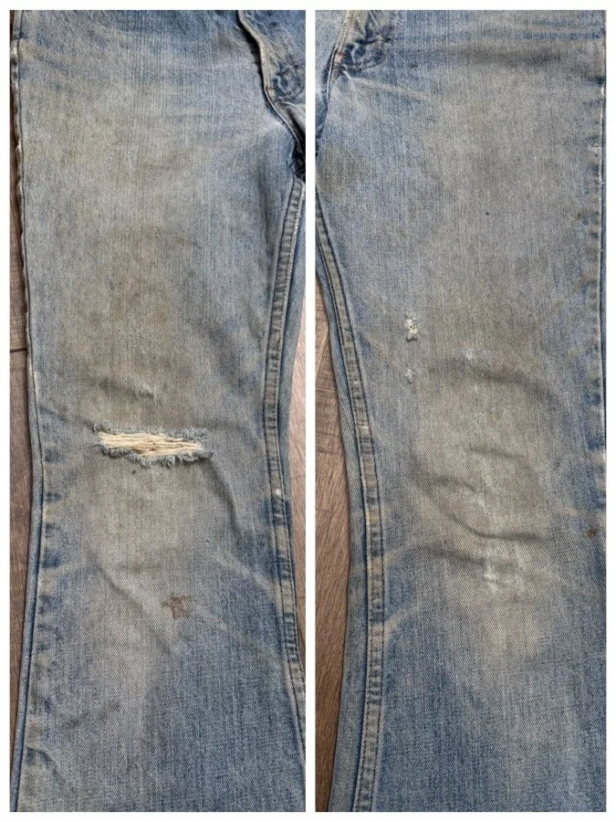 Keep in mind, vintage jeans are not new jeans. Every pair is at least 20 years old, most are older. This means they’ve been worn and likely have signs of wear - i.e. thinning areas, loose threads, signs of previous repair work, discolorations, faint (or not so faint stains), organic distressing, wear at the rivets, wear at the button holes. I do my best to describe these areas/signs of wear&tear, so please - before you buy - understand that you may receive your jeans and there will be signs of aging. Most buy vintage jeans wanting this, but if you want pristine new looking jeans, vintage likely isn’t for you. And that’s A-OK! Also note, the word “vintage” is not synonymous with super worn & faded. Vintage means over 20 years old. An item can be both vintage and still be new or like new condition.
