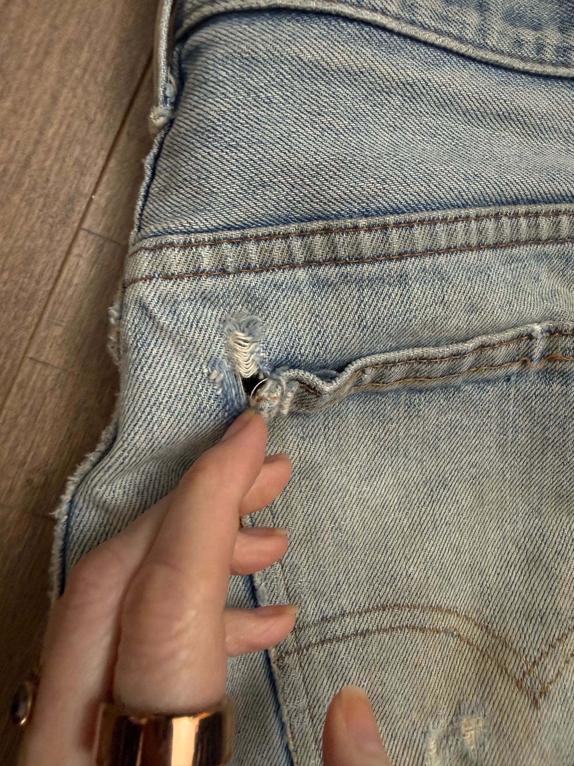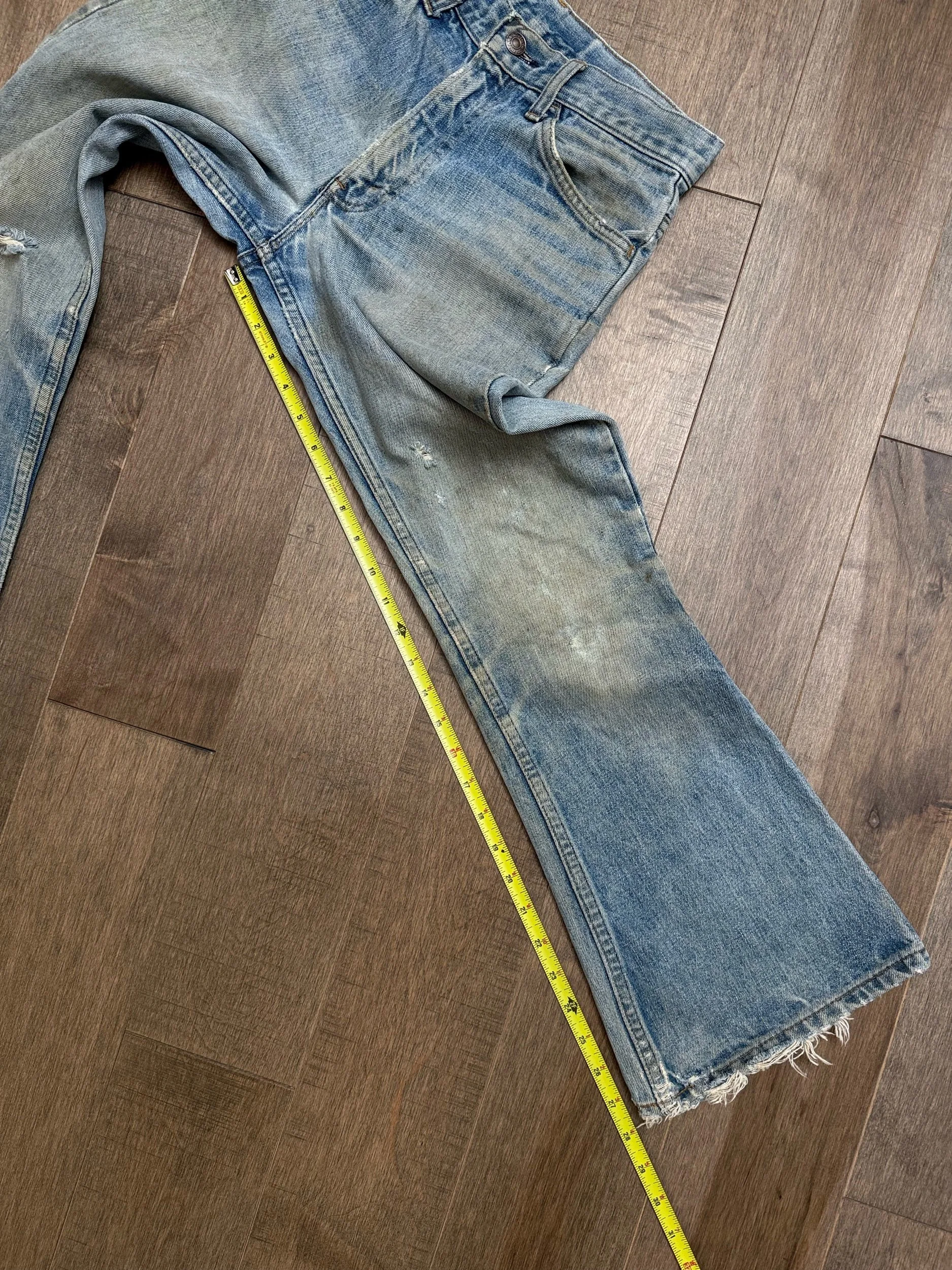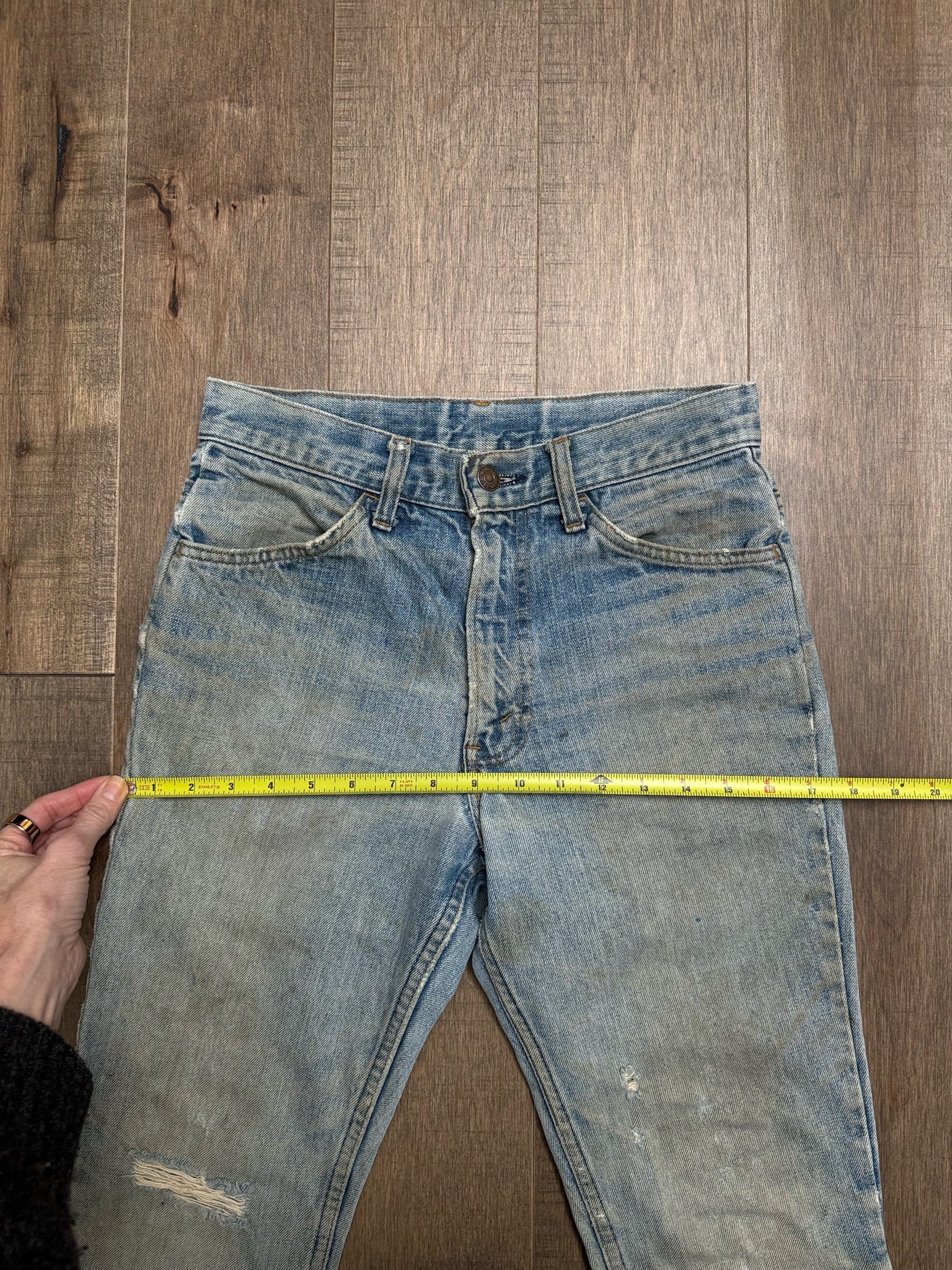 Keep in mind, vintage jeans are not new jeans. Every pair is at least 20 years old, most are older. This means they’ve been worn and likely have signs of wear - i.e. thinning areas, loose threads, signs of previous repair work, discolorations, faint (or not so faint stains), organic distressing, wear at the rivets, wear at the button holes. I do my best to describe these areas/signs of wear&tear, so please - before you buy - understand that you may receive your jeans and there will be signs of aging. Most buy vintage jeans wanting this, but if you want pristine new looking jeans, vintage likely isn’t for you. And that’s A-OK! Also note, the word “vintage” is not synonymous with super worn & faded. Vintage means over 20 years old. An item can be both vintage and still be new or like new condition.