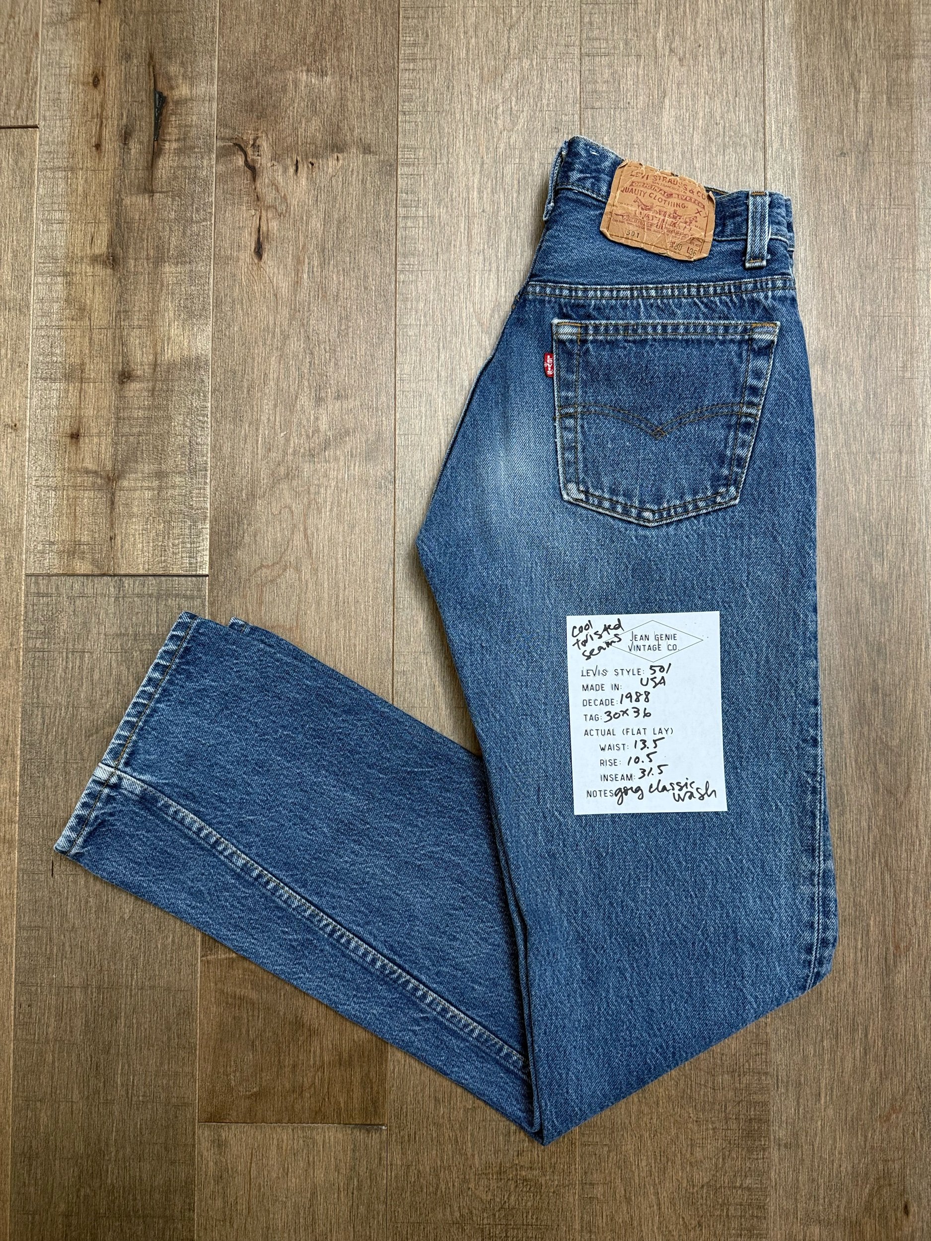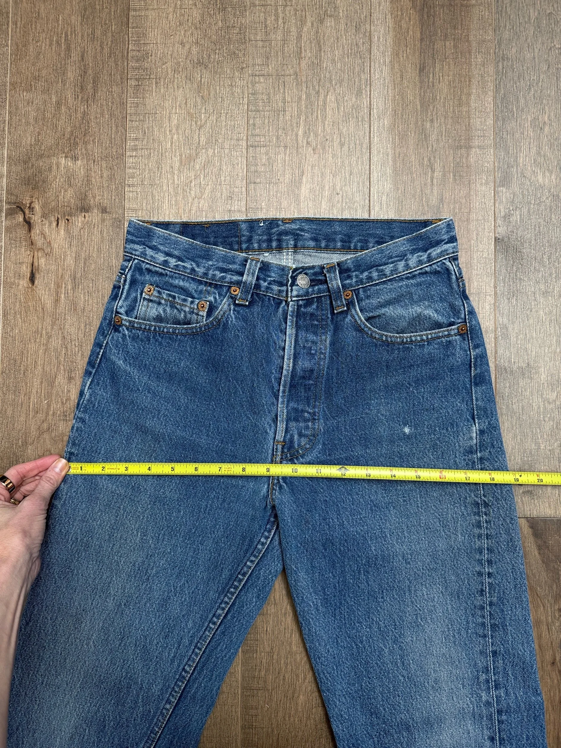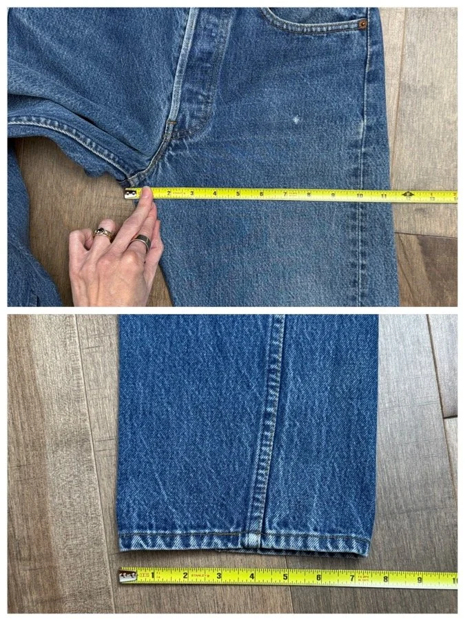 Sold as is. Keep in mind, vintage jeans are not new jeans. Every pair is at least 20 years old, most are older. This means they’ve been worn and likely have signs of wear - i.e. thinning areas, loose threads, signs of previous repair work, discolorations, faint (or not so faint stains), organic distressing, wear at the rivets, wear at the button holes. I do my best to describe these areas/signs of wear&tear, so please - before you buy - understand that you may receive your jeans and there will be signs of aging. Most buy vintage jeans wanting this, but if you want pristine new looking jeans, vintage likely isn’t for you. And that’s A-OK! Also note, the word “vintage” is not synonymous with super worn & faded. Vintage means over 20 years old. An item can be both vintage and still be new or like new condition.