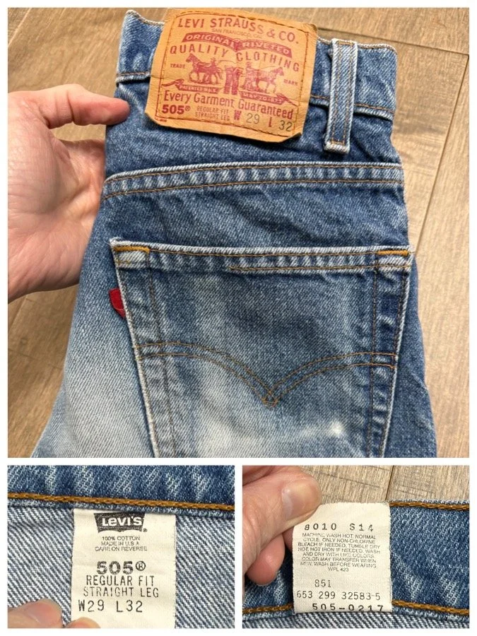 sizes 28-29 1998 Levi’s USA 501 Tag 31x32 Actual 29x31 $265.00 1994 Levi’s USA 501 Tag 30x33 Actual 29x32 $265.00 Sold Out 1995 Levi’s USA 501 Tag 30x32 Actual 28x30.75 $275.00 Sold Out 1984 Levi’s USA 706 Tag 29x31 Actual 27/28x29.75 $255.00 1999 Levi’s USA 501 Tag 32x36 Actual 29x32 $275.00 Sold Out 1990 Levi’s USA 501 Tag 32x30 Actual 29x29 $285.00 Sold Out 1980s Levi’s USA 501 Tag n/a Actual 28x27 $275.00 Sold Out 1976 Levi’s USA 517 Tag 30x30 Actual 28x28.75 $295.00 Sold Out 1980 Levi’s USA 505 Tag 30x30 Actual 28x29 $295.00 Sold Out 1985 Levi’s USA 501 Tag 32x36 Actual 29x26.75 $265.00 1995 Levi’s USA 501 Tag 31x30 Actual 29x29 $285.00 Sold Out 1984 Levi’s USA 517 Tag 31x31 Actual 28x29.75 $255.00 Sold Out 1984 Levi’s USA 501 Tag n/a Actual 28x35.5 $295.00 Sold Out 1980s Levi’s USA 501 Tag 32x31 Actual 29x27.5 $295.00 Sold Out 1996 Levi’s USA 501 Tag 32x32 Actual 29x31.5 $255.00 Sold Out 1980s Levi’s USA 501 Tag n/a Actual 29x29 $275.00 Sold Out 1990s Levi’s USA 501 Tag 31x34 Actual 28x30 $275.00 Sold Out 1960s Lee USA Sanforized Bells Tag n/a Actual 29x31.5 $395.00 Sold Out 1981 Levi’s USA 646 Tag n/a Actual 29x34 $315.00 Sold Out 1960s Levi’s USA “Big E” 646 Tag n/a Actual 27/28x29 $545.00 Sold Out 1990s (early) Levi’s USA 517 Tag 29x30 Actual 28x30.5 $285.00 Sold Out 1980s Levi’s USA 517 Tag 30x30 Actual 28x28.5 $285.00 Sold Out 1987 Levi’s USA 517 Tag 31x33 Actual 29x31 $285.00 Sold Out 1982 Levi’s USA 517 Tag 31x35 Actual 29x35 $275.00 1990s Levi’s USA 517 Tag 30x32 Actual 29x31.5 $255.00 1992 Levi’s USA 517 Tag 31x30 Actual 29x28 $285.00 Sold Out 1992 Levi’s USA 517 Tag 30x30 Actual 28x29 $285.00 Sold Out 2002 Levi’s USA 505 tag 30x32 Actual 28x31 $195.00 1997 Levi’s USA 505 Tag 31x30 Actual 28x30 $245.00 1999 Levi’s USA 501 Tag 31x32 Actual 28x29.5 $245.00 1999 Levi’s USA 501 Tag 31x32 Actual 29x29 $245.00 Sold Out 1979 Levi’s USA 505 Tag 29x32 Actual 28x31 $295.00 Sold Out 1987 Levi’s USA 505 Tag 30x32 Actual 28x30 $265.00 Sold Out 1986 Levi’s USA 505 Tag 31x31 Actual 29x29 $255.00 1993 Levi’s USA 501 Tag 31x36 Actual 28x31.75 $255.00 Sold Out 1995 Levi’s USA 501 Tag 32x32 Actual 29/30x31 $255.00 Sold Out 1992 Levi’s USA 501 Tag 29x30 Actual 28x30 $235.00 Sold Out 1985 Levi’s USA 501 Tag 32x33 Actual 28x29 $275.00 Sold Out 1982 Levi’s USA 501 Tag 31x34 Actual 28x30 $255.00 Sold Out 1996 Levi’s USA 501 Tag 32x34 Actual 29x31 $265.00 Sold Out 1983 Levi’s USA 501 Tag 32x34 Actual 29x30 $295.00 Sold Out 1991 Levi’s USA 501 Tag 30x32 Actual 28x27 $265.00 Sold Out 1980s Levi’s USA 517 Tag 31x29 Actual 29x26.5 $275.00 Sold Out 1994 Levi’s USA 517 Tag 29x30 Actual 28x29 $285.00 Sold Out 1984 Levi’s USA 517 Tag 30x29 Actual 28x27.5 $275.00 Sold Out 1990s Levi’s USA 505 Tag 31x30 Actual 29x29 $265.00 Sold Out 1984 Levi’s USA 517 Tag 31x31 Actual 28x30 $265.00 Sold Out 1984 Levi’s USA 509 Tag 31x32 Actual 28x31 $265.00 Sold Out 1984 Levi’s USA 517 Tag 32x31 Actual 29x30 $235.00 Sold Out 1990 Levi’s USA 517 Tag 32x29 Actual 29x28 $275.00 Sold Out 1992 Levi’s USA 509 Tag 31x32 Actual 29x31 $235.00 Sold Out 1985 Levi’s USA 501 Tag 32x34 Actual 29x29 $285.00 Sold Out 1990 Levi’s USA 501 Tag 32x36 Actual 29x32.5 $265.00 Sold Out 1989 Levi’s USA 517 Tag 30x30 Actual 28x27.5 $255.00 Sold Out 1992 Levi’s USA 517 Tag 29x30 Actual 28x29 SLIM $275.00 Sold Out 1984 Levi’s USA 517 Tag 30x36 Actual 28x32.5 $245.00 Sold Out 1998 Levi’s USA 501 Tag 31x32 W Actual 28x31 $255.00 Sold Out 1992 Levi’s USA 517 Tag 32x31 Actual 29x29.75 $275.00 Sold Out 1992 Levi’s USA 505 Tag 31x34 Actual 29x34 $265.00 Sold Out 1987 Levi’s USA 505 Tag 32x30 Actual 29x29 $265.00 Sold Out 1989 Levi’s USA 501 Tag 31x30 Actual 28x26 $275.00 Sold Out 2001 Levi’s USA 501 Tag 30x30 Actual 28x29.5 $225.00 Sold Out 1994 Levi’s USA 517 Tag 29x30 Actual 27/28x29 $285.00 Sold Out 1994 Levi’s USA 501 Tag 33x34 Actual 29x29.5 $265.00 Sold Out 1970s Levi’s USA 501 Tag 30x36 Actual 28x33 $325.00 Sold Out 1993 Levi’s USA 501 Tag 32x34 Actual 29x29 $265.00 Sold Out 1999 Levi’s USA 501 Tag 30x30 Actual 28x29.5 $285.00 Sold Out 1990s Levi’s USA 505 Tag n/a Actual 28x30 $255.00 Sold Out 1998 Levi’s USA 501 Tag 30x34 actual 28x33 $295.00 Sold Out 1990 Levi’s USA 501 Tag 31x31 Actual 28x27 $295.00 Sold Out 1978 Levi’s USA 646 Tag 31x32 Actual 29x30 $315.00 Sold Out 2002 Levi’s USA 501 Tag 30x30 W Actual 28x30 $265.00 Sold Out 2000 Levi’s USA 501 Tag 32x30 Actual 29x29 $265.00 Sold Out 1993 Levi’s USA 501 Tag 31x34 Actual 28x30 $285.00 Sold Out 1970s Levi’s USA 505 Tag 29x32 Actual 28x32 $285.00 Sold Out 1989 Levi’s USA 501 Tag 31x30 Actual 28x28 $295.00 Sold Out 1984 Levi’s USA 517 Tag 30x31 Actual 28x30 $265.00 Sold Out 1978 Levi’s USA 646 Tag 30x30 Actual 28x30 $315.00 Sold Out 1976 Levi’s USA 684 Tag n/a Actual 28/29x33.75 $335.00 Sold Out 1991 Levi’s USA 501 Tag 30x32 Actual 29x31 $255.00 Sold Out 1970s Levi’s USA 509 Tag n/a Actual 29x28 $245.00 Sold Out 1984 Levi’s USA 517 Tag 30x32 Actual 28x31 $265.00 Sold Out 1996 Levi’s USA 501 Tag 31x30 Actual 29x30 $245.00 Sold Out 1979 Levi’s USA 517 Tag 30x34 Actual 28x33 $285.00 Sold Out 1997 Levi’s USA 517 Tag 30x36 Actual 28x34 $255.00 Sold Out 1990 Levi’s USA 517 Tag 31x33 Actual 29x32 $265.00 Sold Out 1980s Levi’s USA 505 Tag 31x31 Actual 28x30 $255.00 Sold Out 1985 Levi’s USA 505 Tag 30x34 Actual 28x32.5 $245.00 Sold Out 1982 Levi’s USA 505 Tag 29x31 Actual 28x30 $275.00 Sold Out 1983 Levi’s USA 505 Tag 30x31 Actual 28x30 $295.00 Sold Out 1990 Levi’s USA 505 Tag 30x32 Actual 28x31 $255.00 Sold Out 1998 Levi’s USA 505 Tag 29x30 Actual 28x29 $255.00 Sold Out 1983 Levi’s USA 505 Tag 30x34 Actual 28x32.5 $275.00 Sold Out 1987 Levi’s USA 684 Tag 31x29 Actual 27/28x27.5 $275.00 Sold Out 1970s Levi’s USA 684 Tag ?x30 Actual 28/29x28.5 $335.00 Sold Out Early 70s Levi’s USA 646 Tag n/a Actual 29x34 $335.00 Sol
