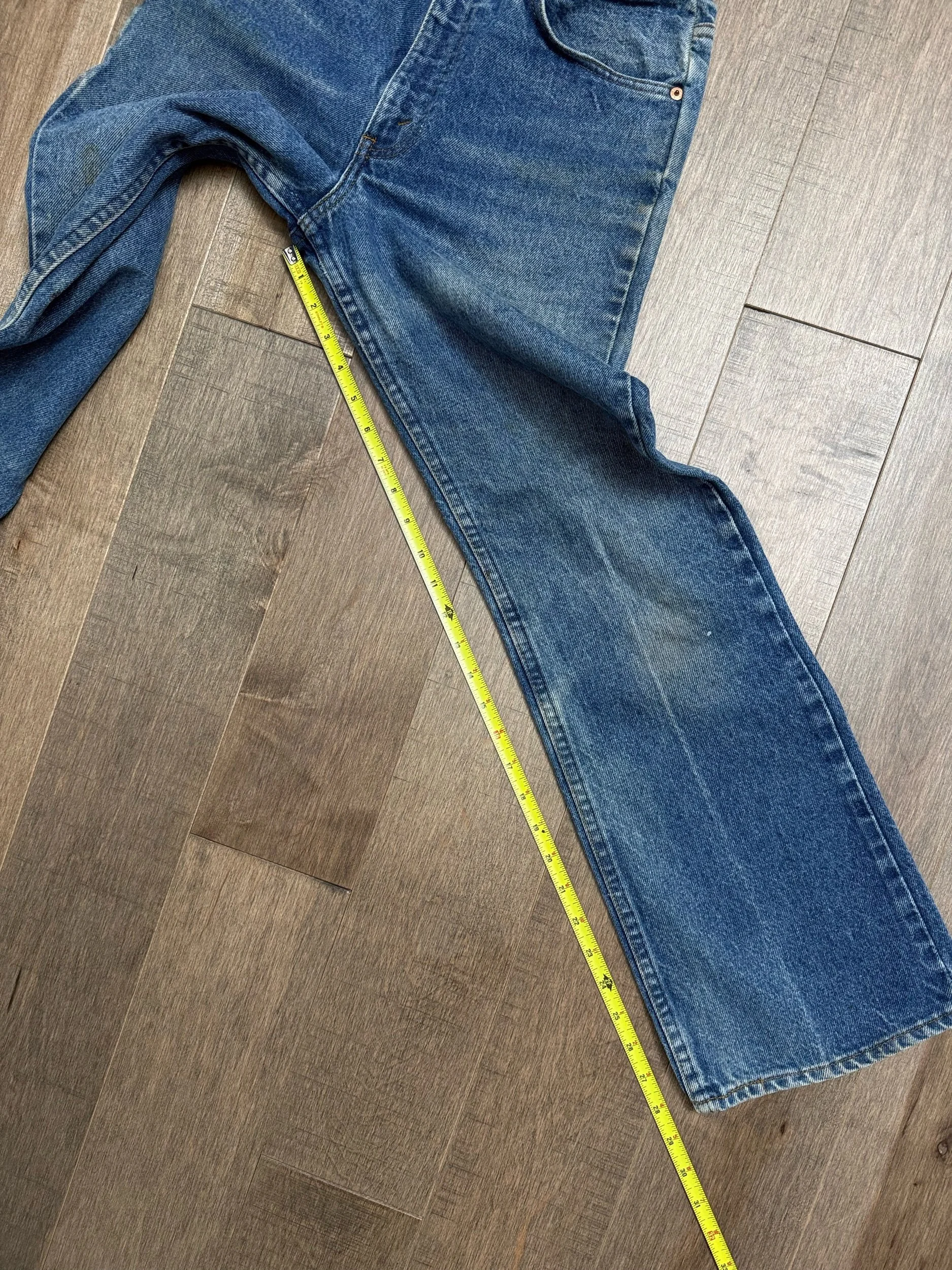 Keep in mind, vintage jeans are not new jeans. Every pair is at least 20 years old, most are older. This means they’ve been worn and likely have signs of wear - i.e. thinning areas, loose threads, signs of previous repair work, discolorations, faint (or not so faint stains), organic distressing, wear at the rivets, wear at the button holes. I do my best to describe these areas/signs of wear&tear, so please - before you buy - understand that you may receive your jeans and there will be signs of aging. Most buy vintage jeans wanting this, but if you want pristine new looking jeans, vintage likely isn’t for you. And that’s A-OK! Also note, the word “vintage” is not synonymous with super worn & faded. Vintage means over 20 years old. An item can be both vintage and still be new or like new condition.
