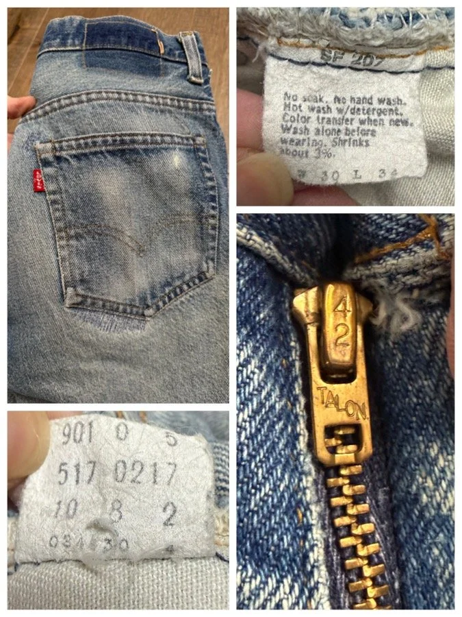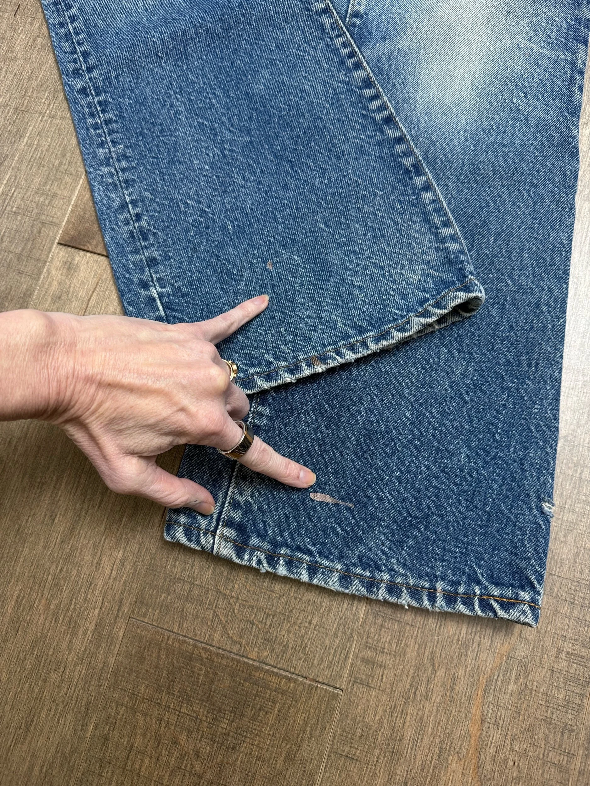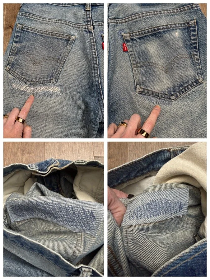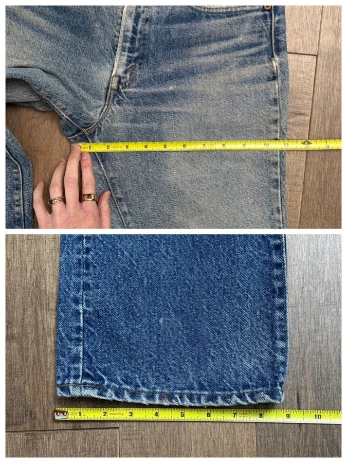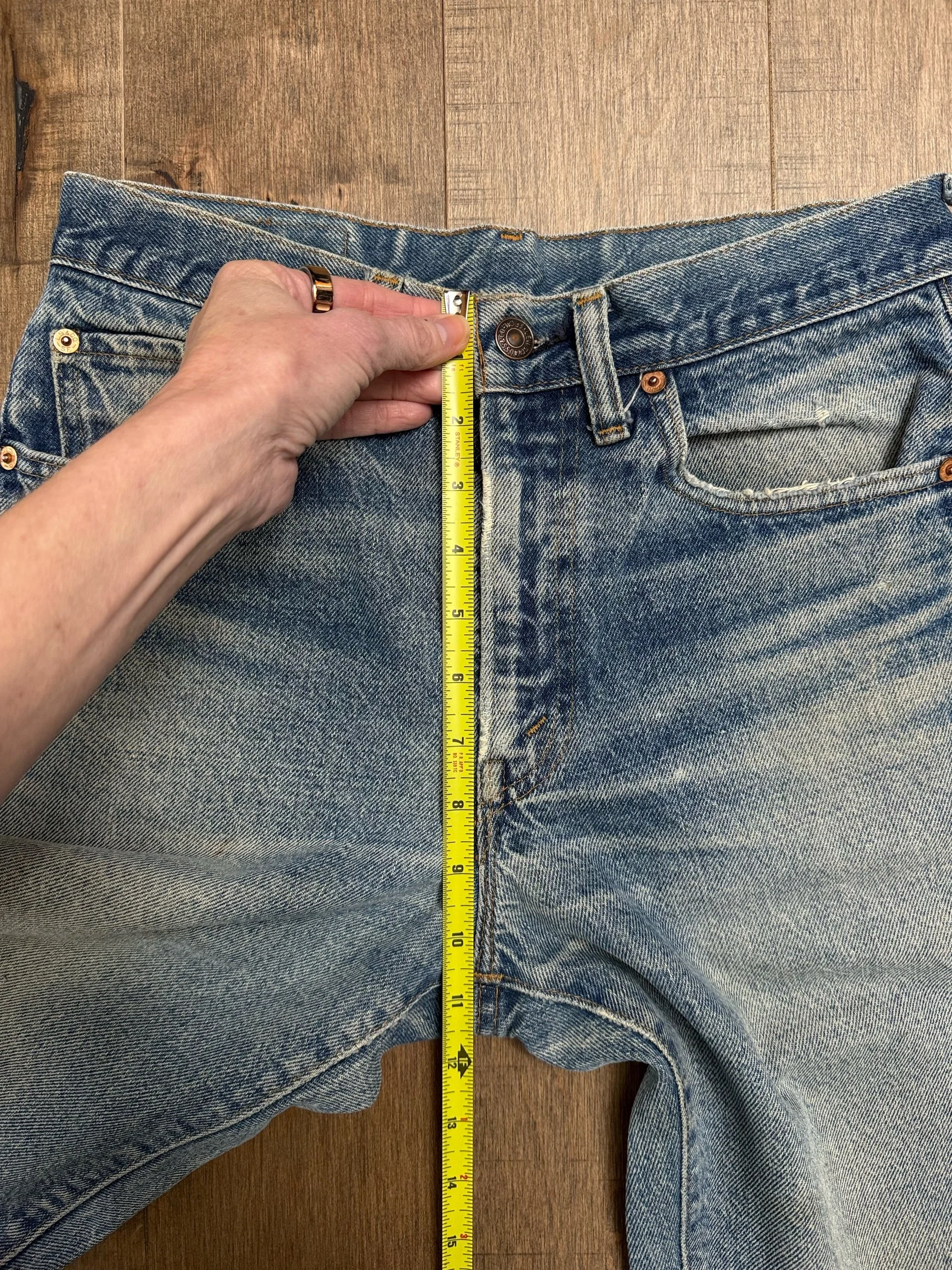 Keep in mind, vintage jeans are not new jeans. Every pair is at least 20 years old, most are older. This means they’ve been worn and likely have signs of wear - i.e. thinning areas, loose threads, signs of previous repair work, discolorations, faint (or not so faint stains), organic distressing, wear at the rivets, wear at the button holes. I do my best to describe these areas/signs of wear&tear, so please - before you buy - understand that you may receive your jeans and there will be signs of aging. Most buy vintage jeans wanting this, but if you want pristine new looking jeans, vintage likely isn’t for you. And that’s A-OK! Also note, the word “vintage” is not synonymous with super worn & faded. Vintage means over 20 years old. An item can be both vintage and still be new or like new condition.