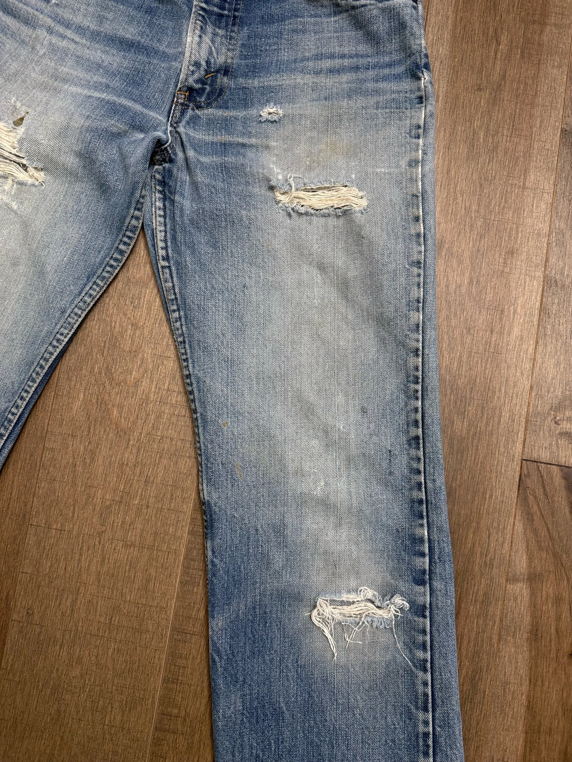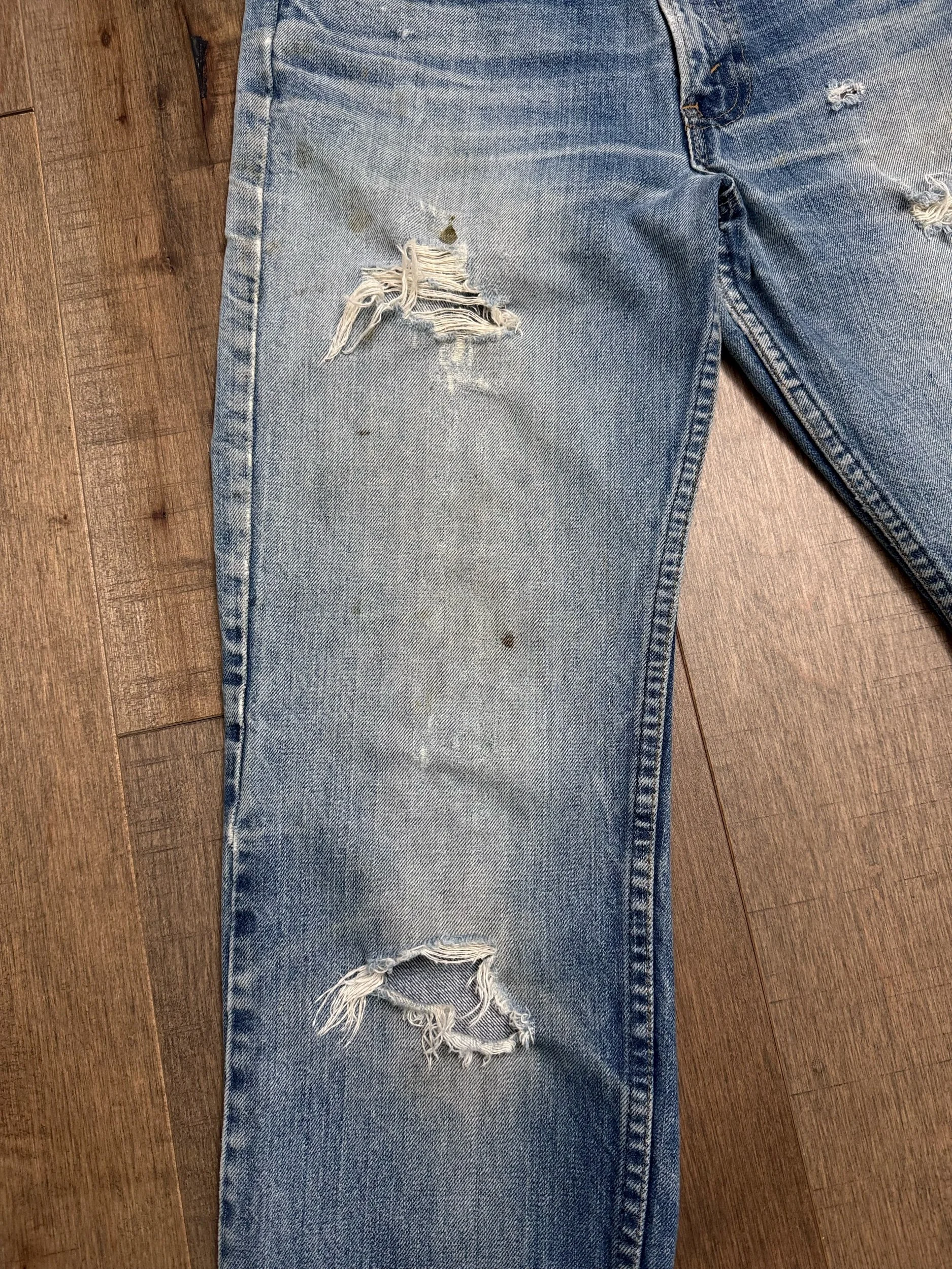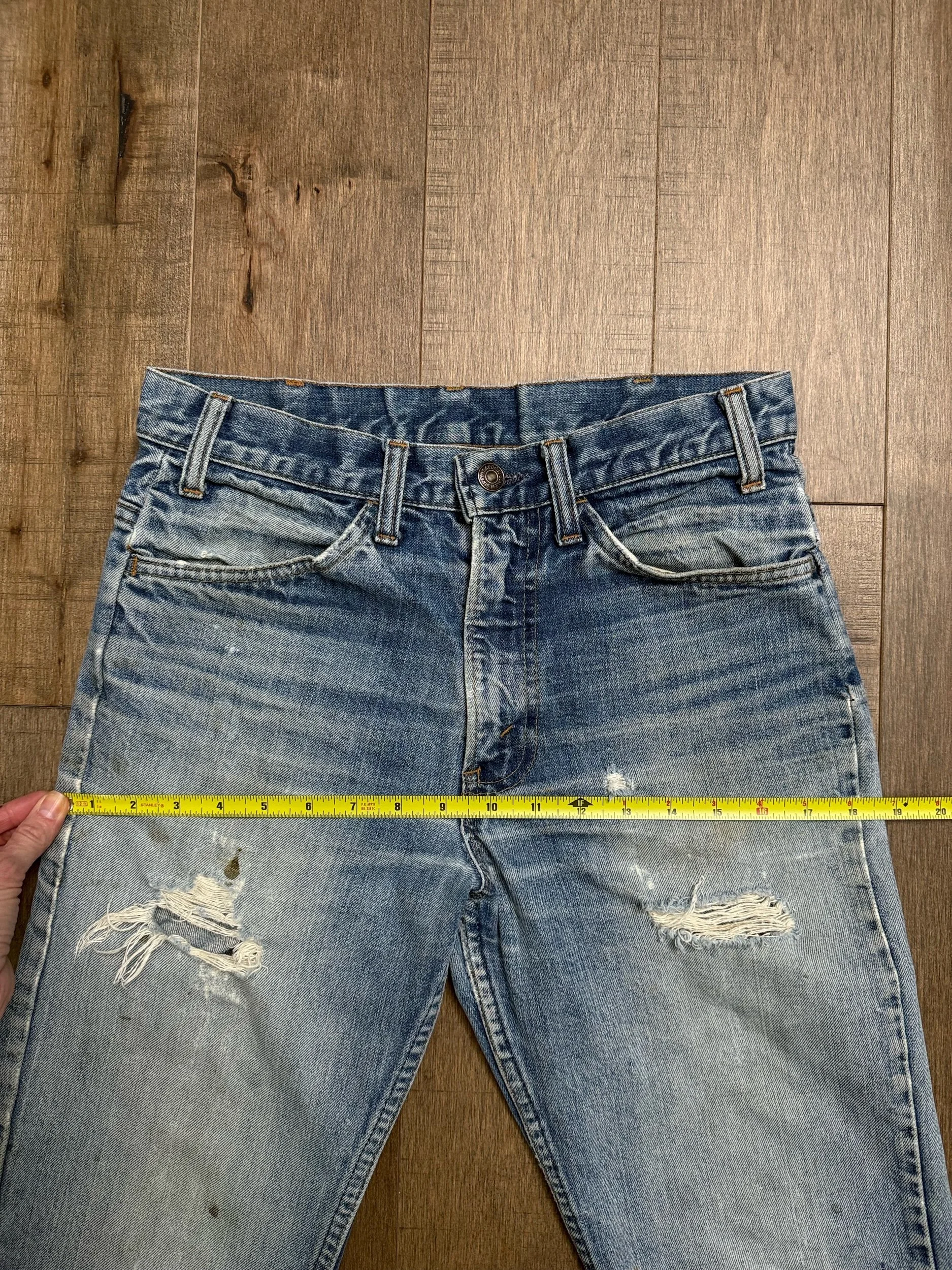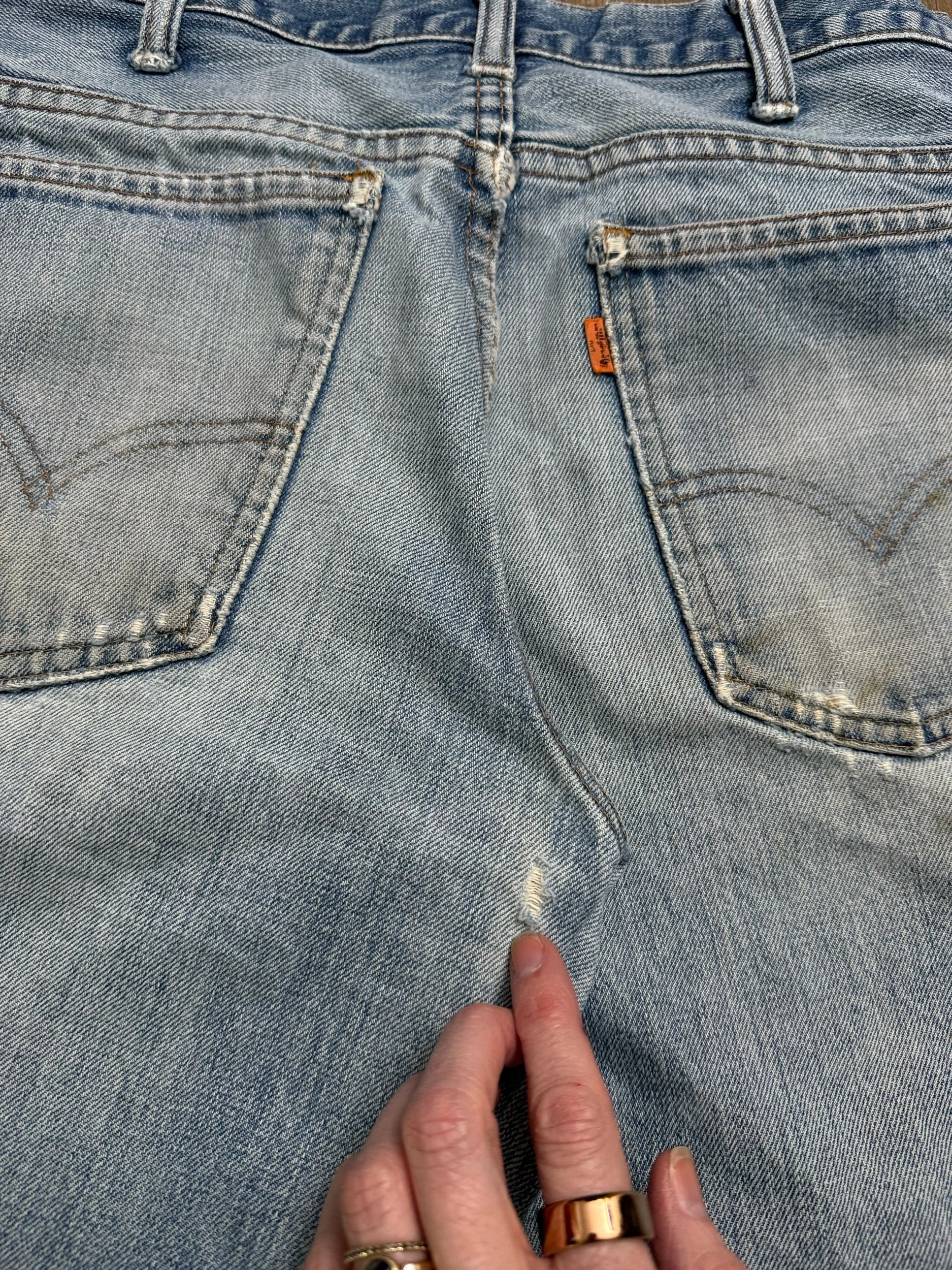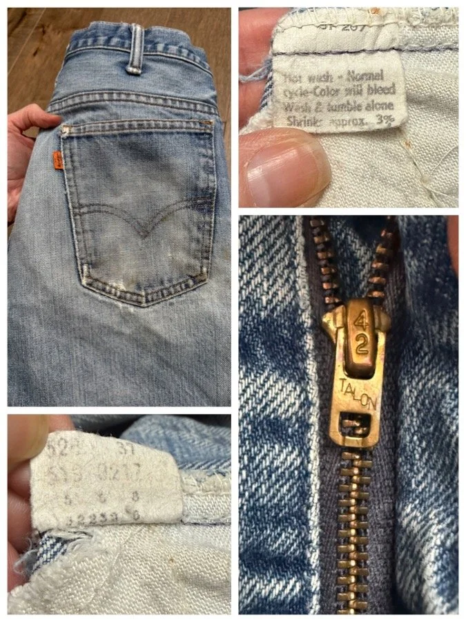 Keep in mind, vintage jeans are not new jeans. Every pair is at least 20 years old, most are older. This means they’ve been worn and likely have signs of wear - i.e. thinning areas, loose threads, signs of previous repair work, discolorations, faint (or not so faint stains), organic distressing, wear at the rivets, wear at the button holes. I do my best to describe these areas/signs of wear&tear, so please - before you buy - understand that you may receive your jeans and there will be signs of aging. Most buy vintage jeans wanting this, but if you want pristine new looking jeans, vintage likely isn’t for you. And that’s A-OK! Also note, the word “vintage” is not synonymous with super worn & faded. Vintage means over 20 years old. An item can be both vintage and still be new or like new condition.