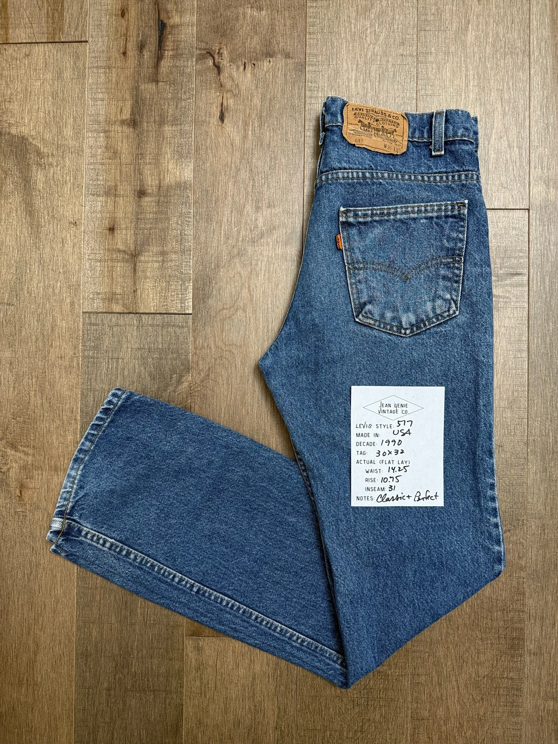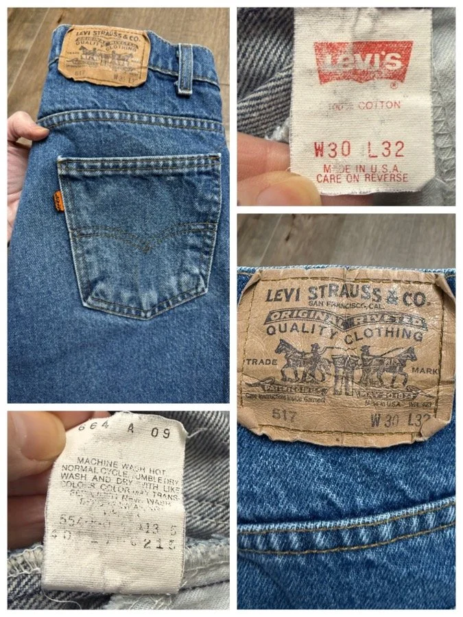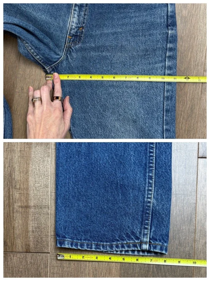 Keep in mind, vintage jeans are not new jeans. Every pair is at least 20 years old, most are older. This means they’ve been worn and likely have signs of wear - i.e. thinning areas, loose threads, signs of previous repair work, discolorations, faint (or not so faint stains), organic distressing, wear at the rivets, wear at the button holes. I do my best to describe these areas/signs of wear&tear, so please - before you buy - understand that you may receive your jeans and there will be signs of aging. Most buy vintage jeans wanting this, but if you want pristine new looking jeans, vintage likely isn’t for you. And that’s A-OK! Also note, the word “vintage” is not synonymous with super worn & faded. Vintage means over 20 years old. An item can be both vintage and still be new or like new condition.