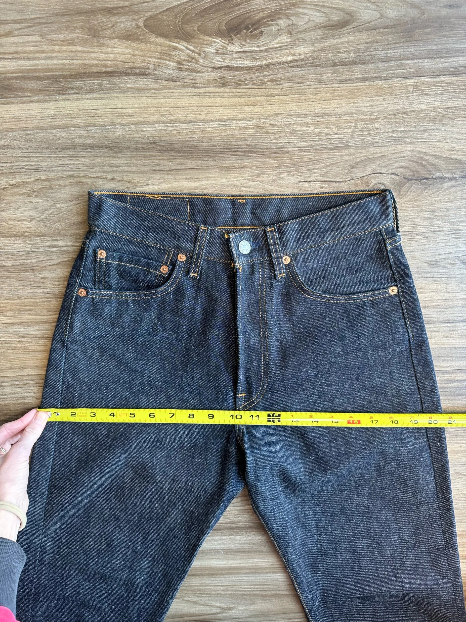 WASH: gorgeous dark (raw denim vibes) blue. Never washed. Deadstock.
