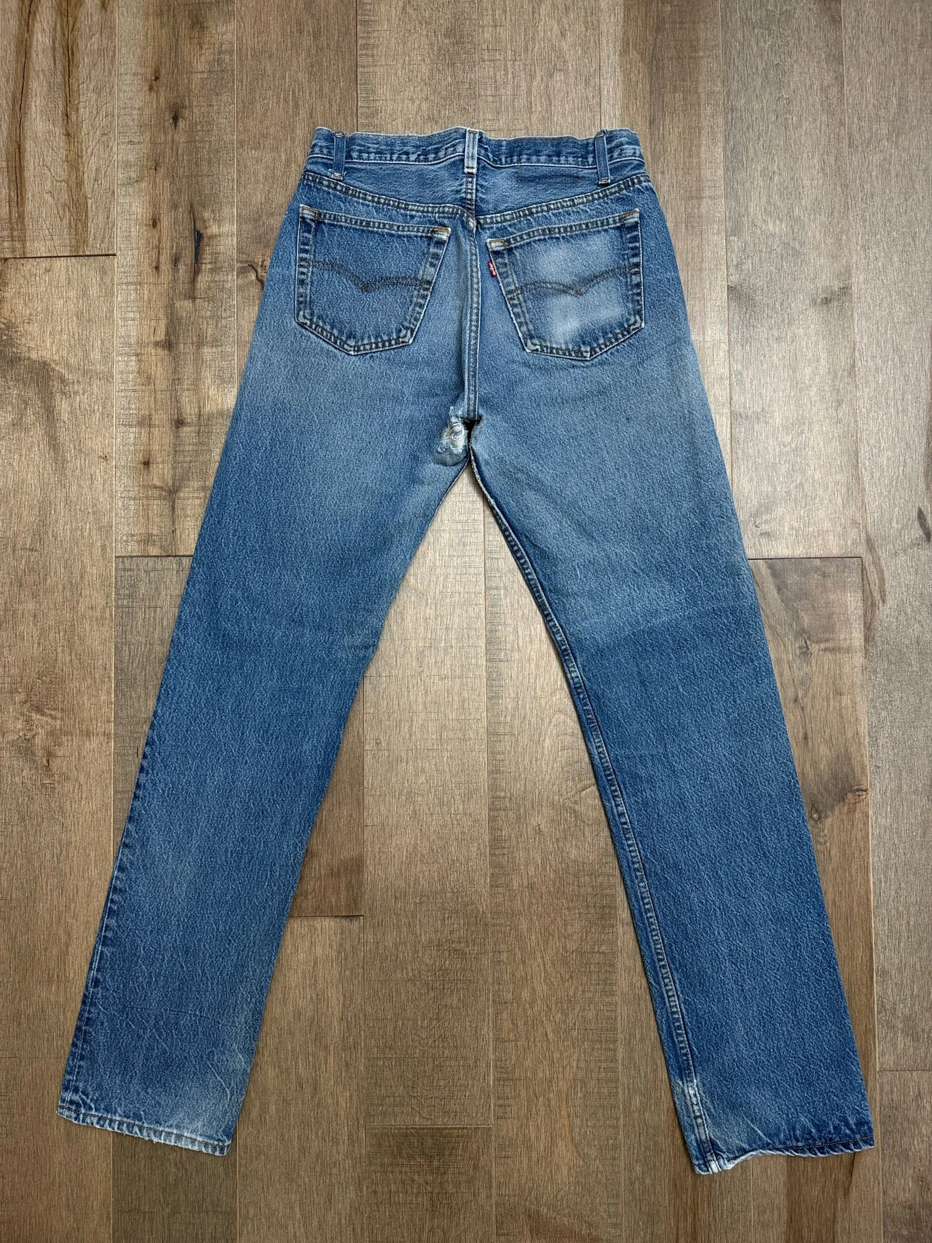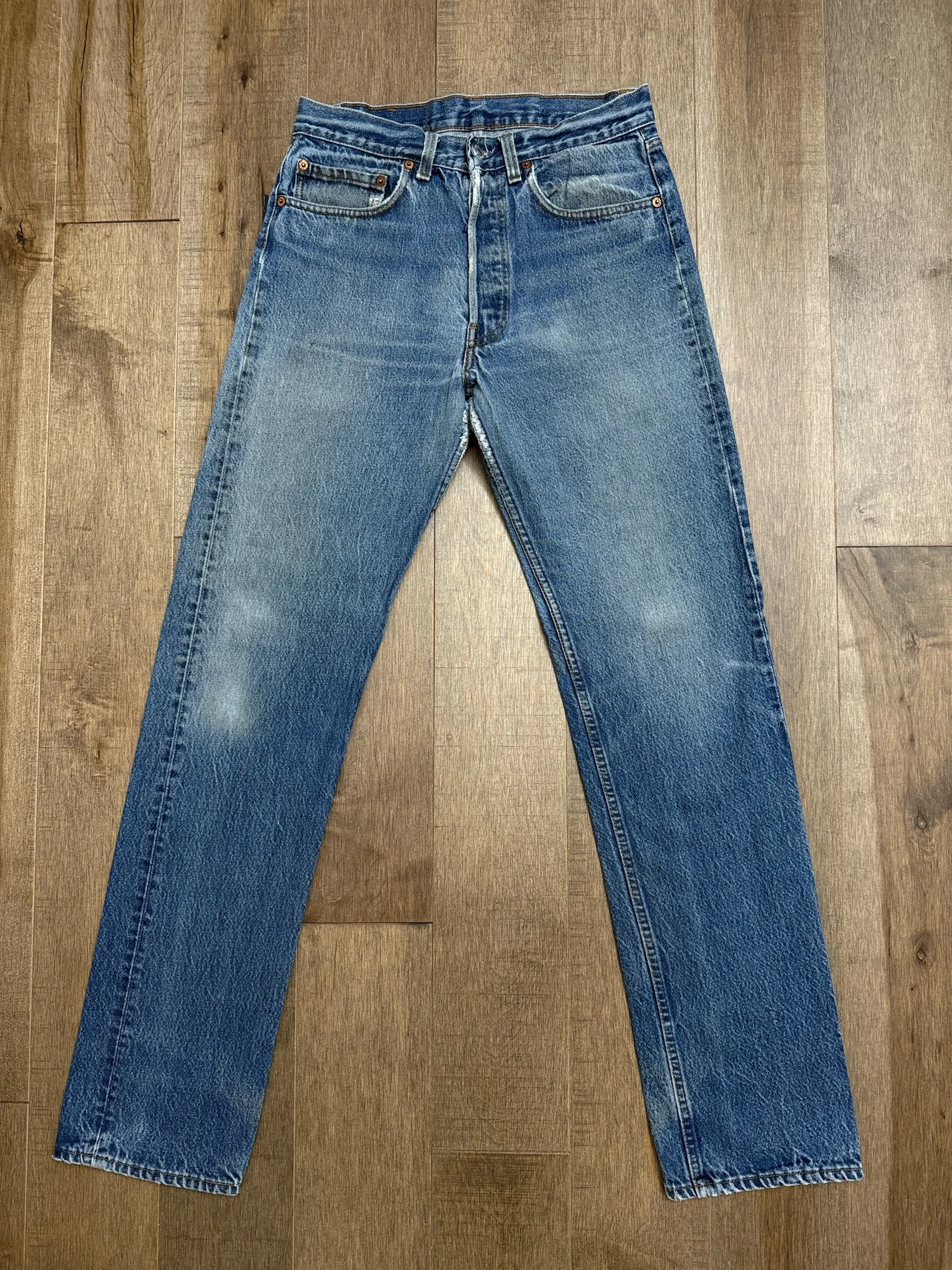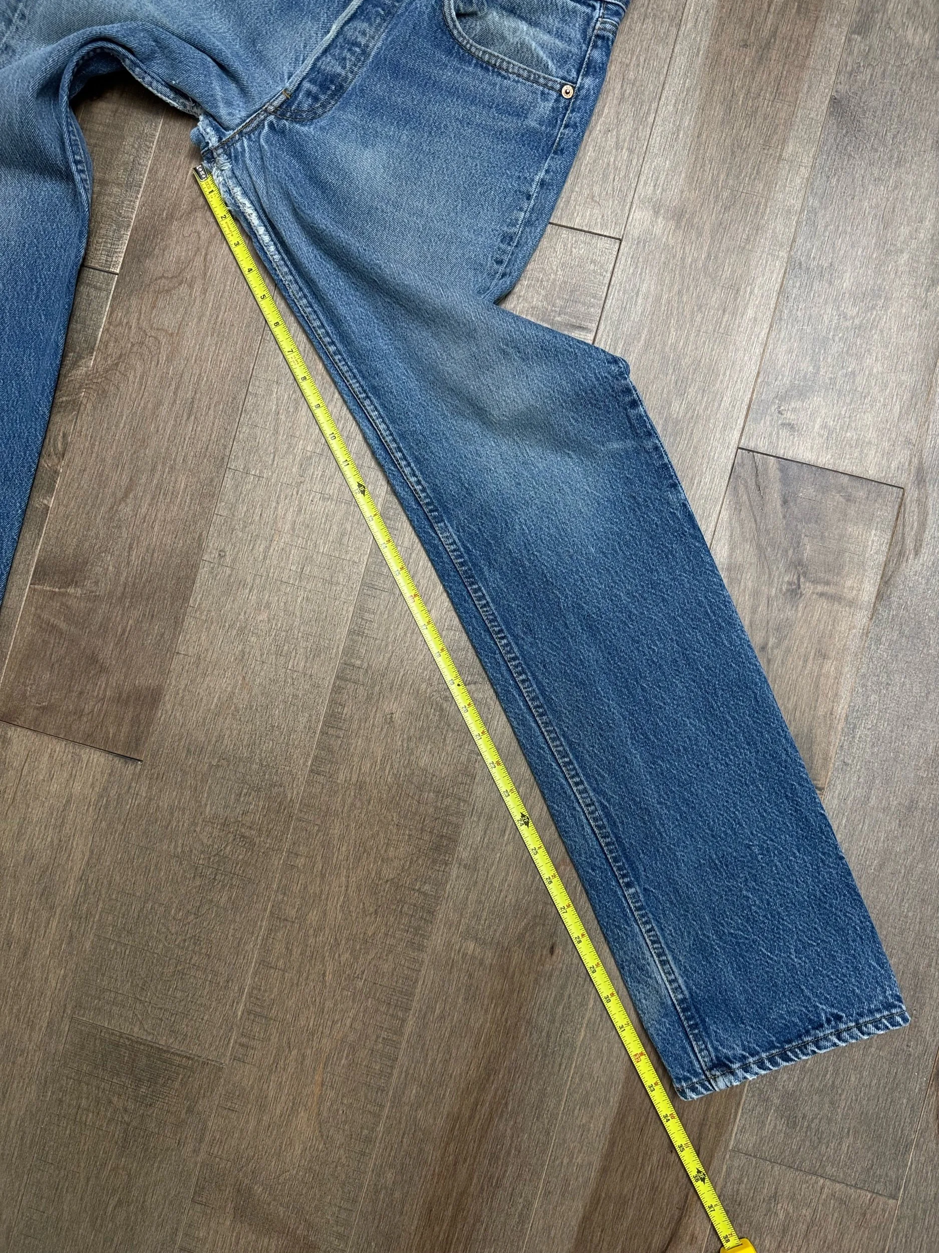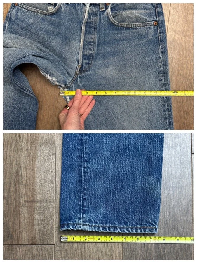 Sold as is. Keep in mind, vintage jeans are not new jeans. Every pair is at least 20 years old, most are older. This means they’ve been worn and likely have signs of wear - i.e. thinning areas, loose threads, signs of previous repair work, discolorations, faint (or not so faint stains), organic distressing, wear at the rivets, wear at the button holes. I do my best to describe these areas/signs of wear&tear, so please - before you buy - understand that you may receive your jeans and there will be signs of aging. Most buy vintage jeans wanting this, but if you want pristine new looking jeans, vintage likely isn’t for you. And that’s A-OK! Also note, the word “vintage” is not synonymous with super worn & faded. Vintage means over 20 years old. An item can be both vintage and still be new or like new condition.