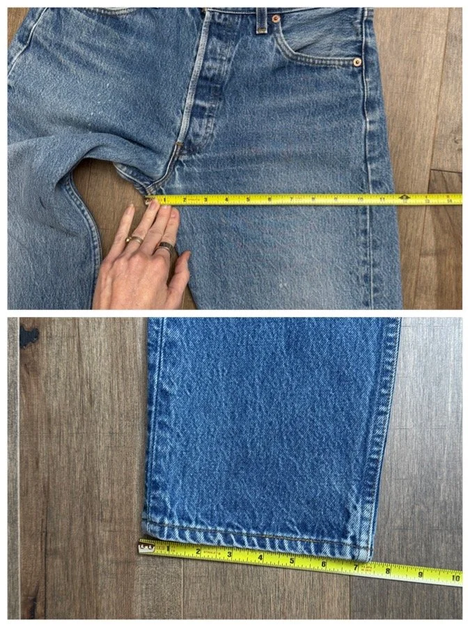 Sold as is. Keep in mind, vintage jeans are not new jeans. Every pair is at least 20 years old, most are older. This means they’ve been worn and likely have signs of wear - i.e. thinning areas, loose threads, signs of previous repair work, discolorations, faint (or not so faint stains), organic distressing, wear at the rivets, wear at the button holes. I do my best to describe these areas/signs of wear&tear, so please - before you buy - understand that you may receive your jeans and there will be signs of aging. Most buy vintage jeans wanting this, but if you want pristine new looking jeans, vintage likely isn’t for you. And that’s A-OK! Also note, the word “vintage” is not synonymous with super worn & faded. Vintage means over 20 years old. An item can be both vintage and still be new or like new condition.