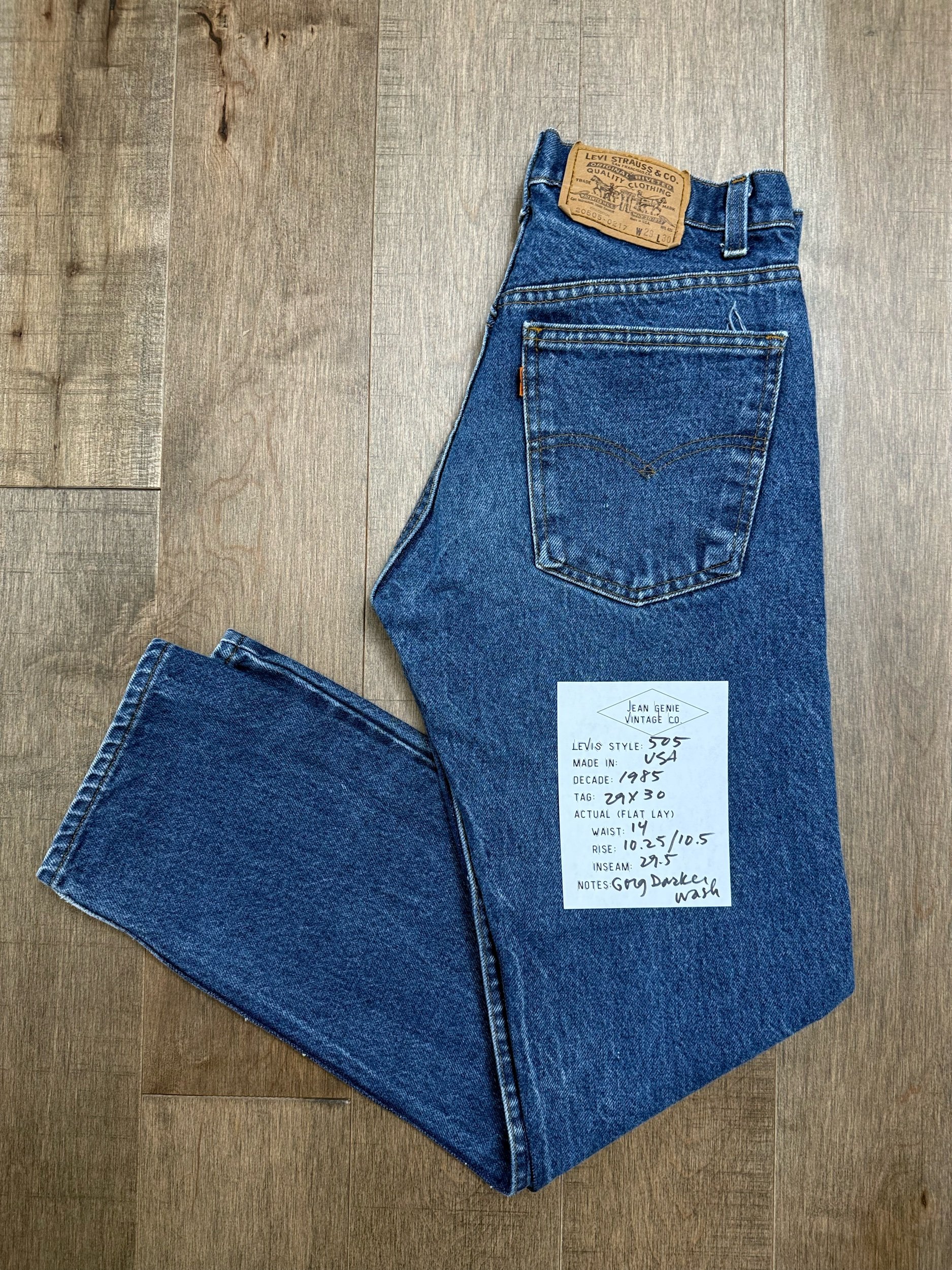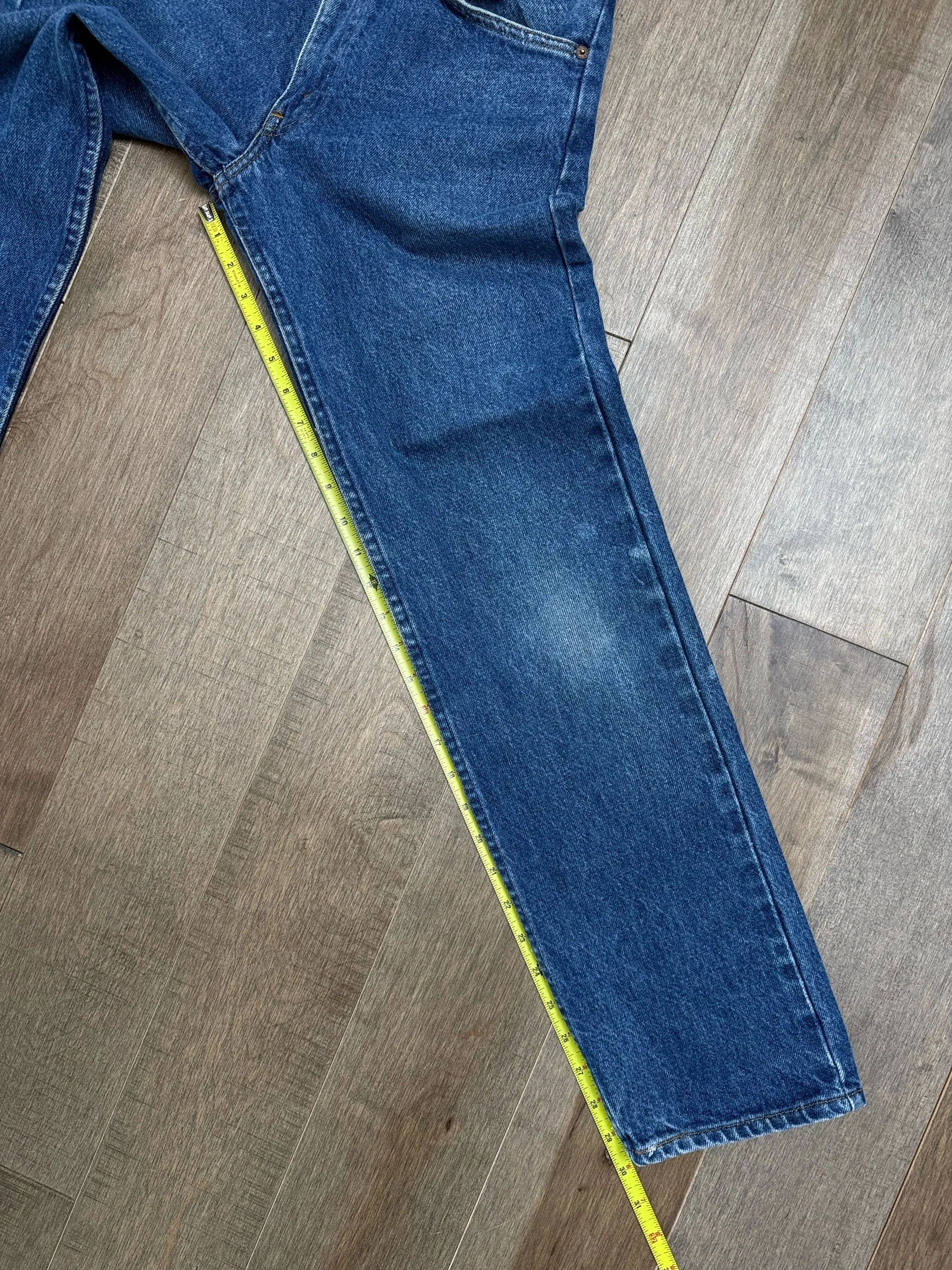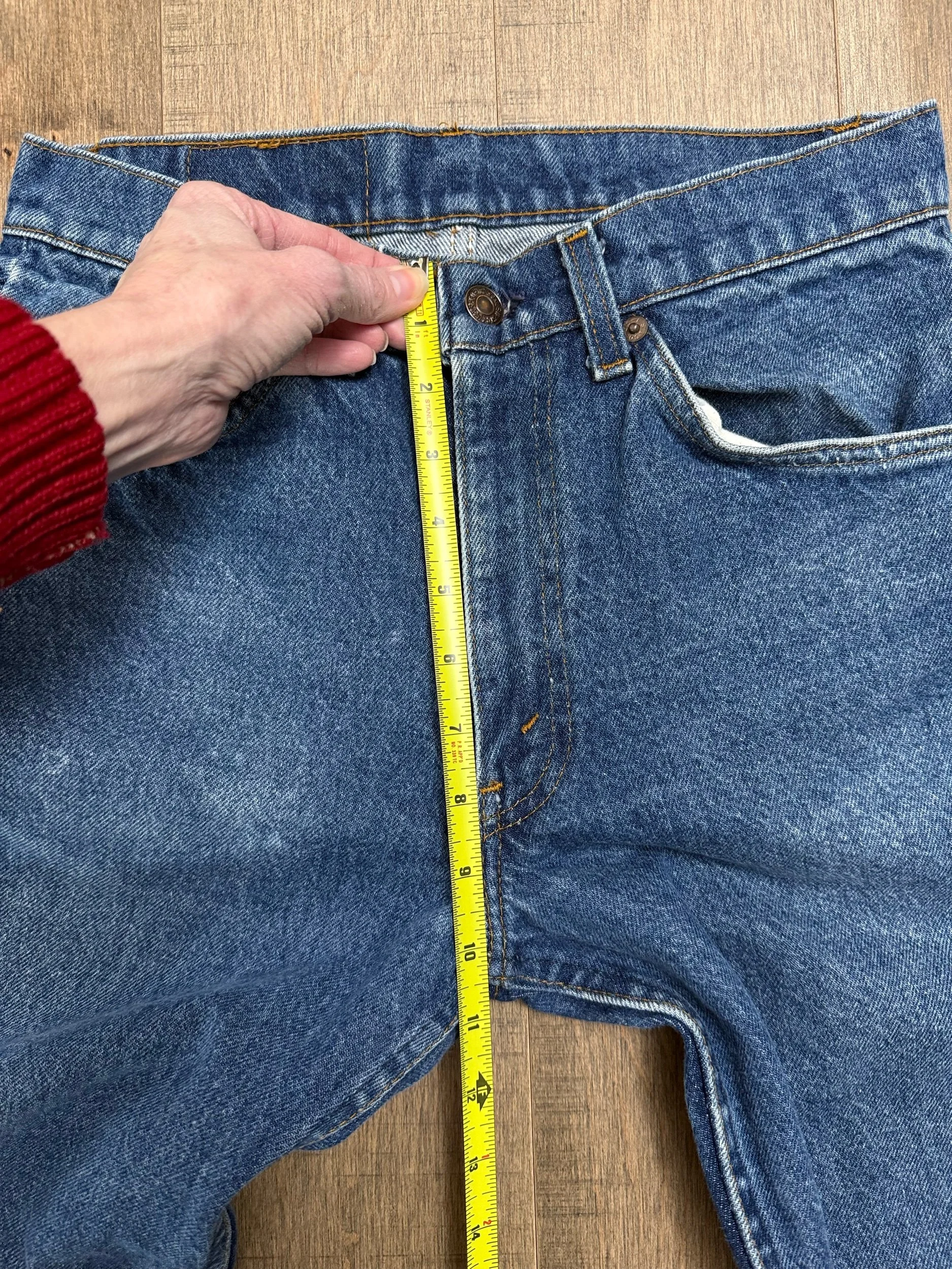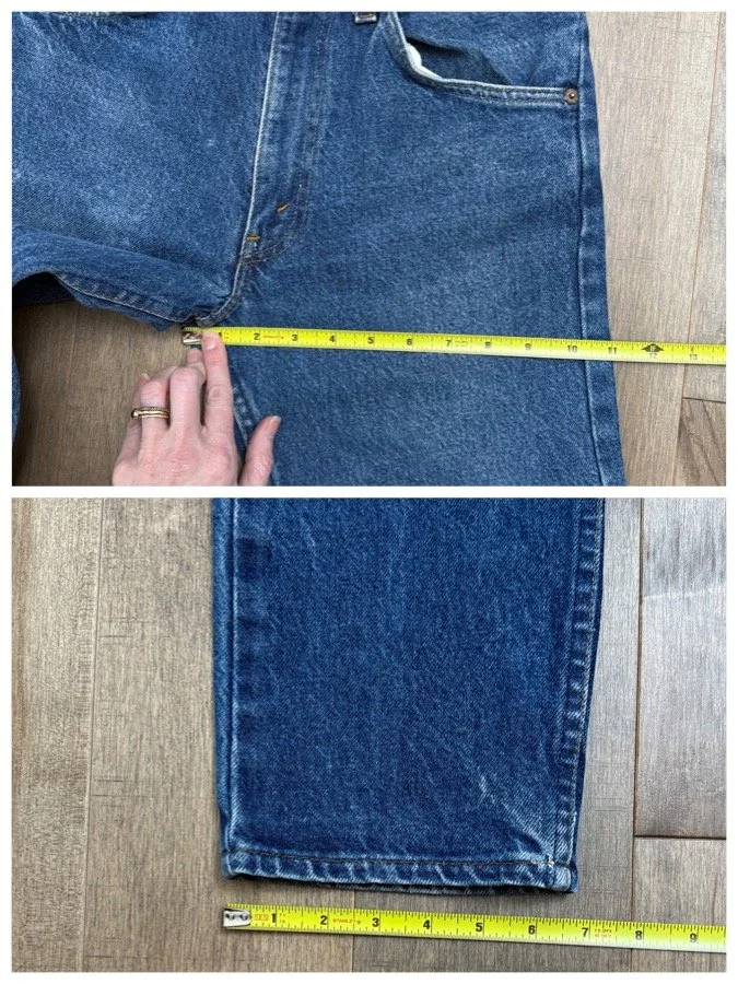Keep in mind, vintage jeans are not new jeans. Every pair is at least 20 years old, most are older. This means they’ve been worn and likely have signs of wear - i.e. thinning areas, loose threads, signs of previous repair work, discolorations, faint (or not so faint stains), organic distressing, wear at the rivets, wear at the button holes. I do my best to describe these areas/signs of wear&tear, so please - before you buy - understand that you may receive your jeans and there will be signs of aging. Most buy vintage jeans wanting this, but if you want pristine new looking jeans, vintage likely isn’t for you. And that’s A-OK! Also note, the word “vintage” is not synonymous with super worn & faded. Vintage means over 20 years old. An item can be both vintage and still be new or like new condition.