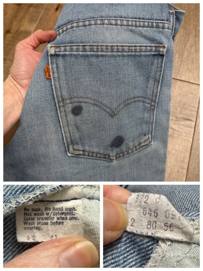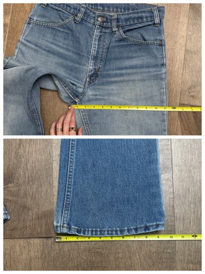Keep in mind, vintage jeans are not new jeans. Every pair is at least 20 years old, most are older. This means they’ve been worn and likely have signs of wear - i.e. thinning areas, loose threads, signs of previous repair work, discolorations, faint (or not so faint stains), organic distressing, wear at the rivets, wear at the button holes. I do my best to describe these areas/signs of wear&tear, so please - before you buy - understand that you may receive your jeans and there will be signs of aging. Most buy vintage jeans wanting this, but if you want pristine new looking jeans, vintage likely isn’t for you. And that’s A-OK! Also note, the word “vintage” is not synonymous with super worn & faded. Vintage means over 20 years old. An item can be both vintage and still be new or like new condition.
