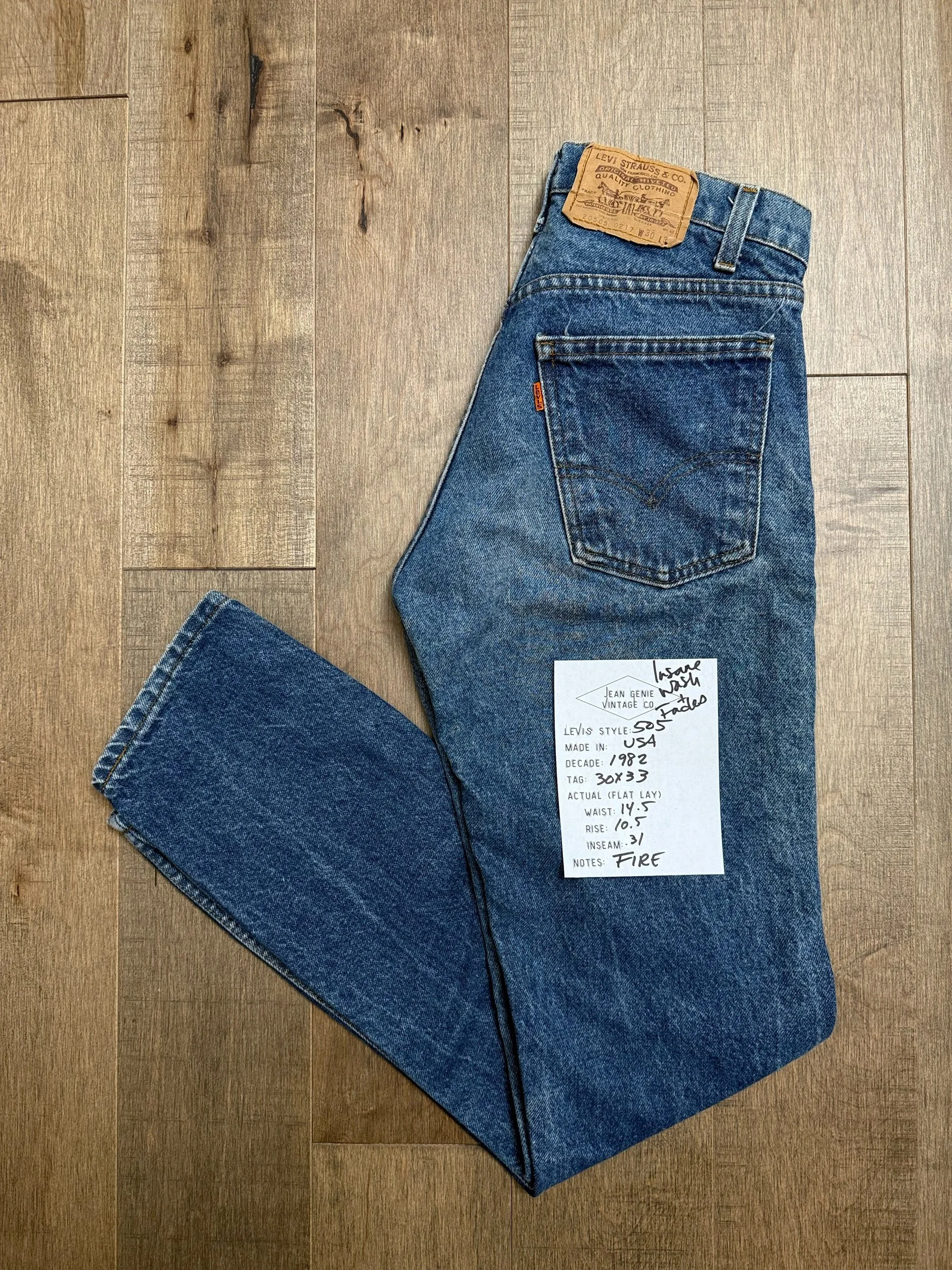 Keep in mind, vintage jeans are not new jeans. Every pair is at least 20 years old, most are older. This means they’ve been worn and likely have signs of wear - i.e. thinning areas, loose threads, signs of previous repair work, discolorations, faint (or not so faint stains), organic distressing, wear at the rivets, wear at the button holes. I do my best to describe these areas/signs of wear&tear, so please - before you buy - understand that you may receive your jeans and there will be signs of aging. Most buy vintage jeans wanting this, but if you want pristine new looking jeans, vintage likely isn’t for you. And that’s A-OK! Also note, the word “vintage” is not synonymous with super worn & faded. Vintage means over 20 years old. An item can be both vintage and still be new or like new condition.