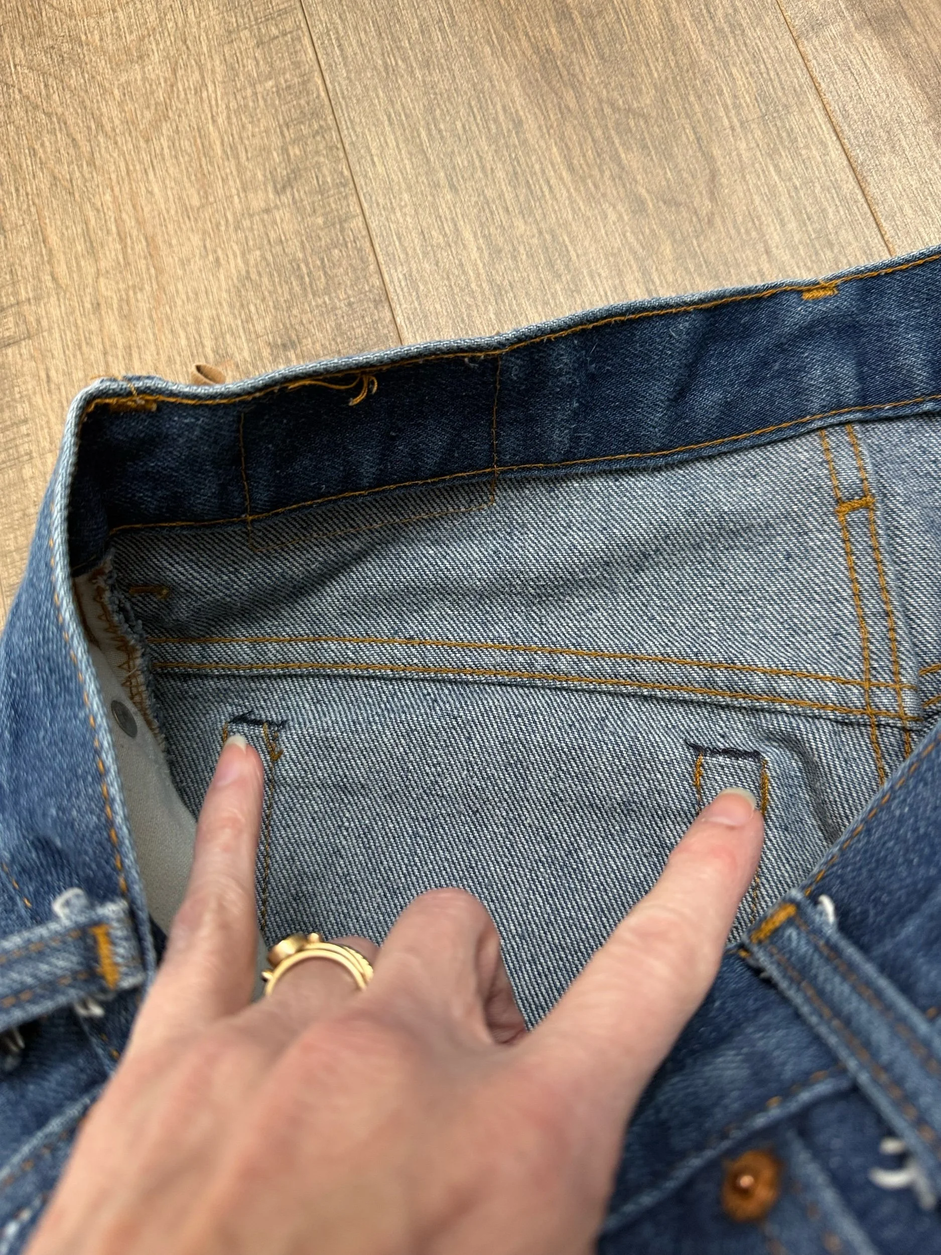 Keep in mind, vintage jeans are not new jeans. Every pair is at least 20 years old, most are older. This means they’ve been worn and likely have signs of wear - i.e. thinning areas, loose threads, signs of previous repair work, discolorations, faint (or not so faint stains), organic distressing, wear at the rivets, wear at the button holes. I do my best to describe these areas/signs of wear&tear, so please - before you buy - understand that you may receive your jeans and there will be signs of aging. Most buy vintage jeans wanting this, but if you want pristine new looking jeans, vintage likely isn’t for you. And that’s A-OK! Also note, the word “vintage” is not synonymous with super worn & faded. Vintage means over 20 years old. An item can be both vintage and still be new or like new condition.