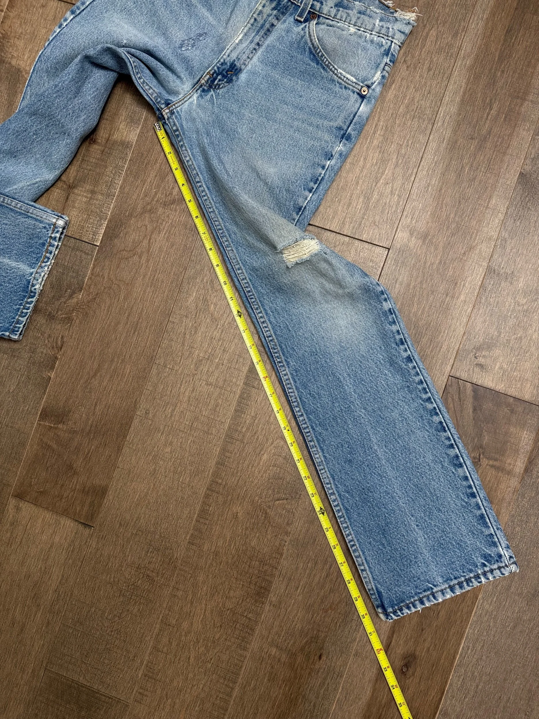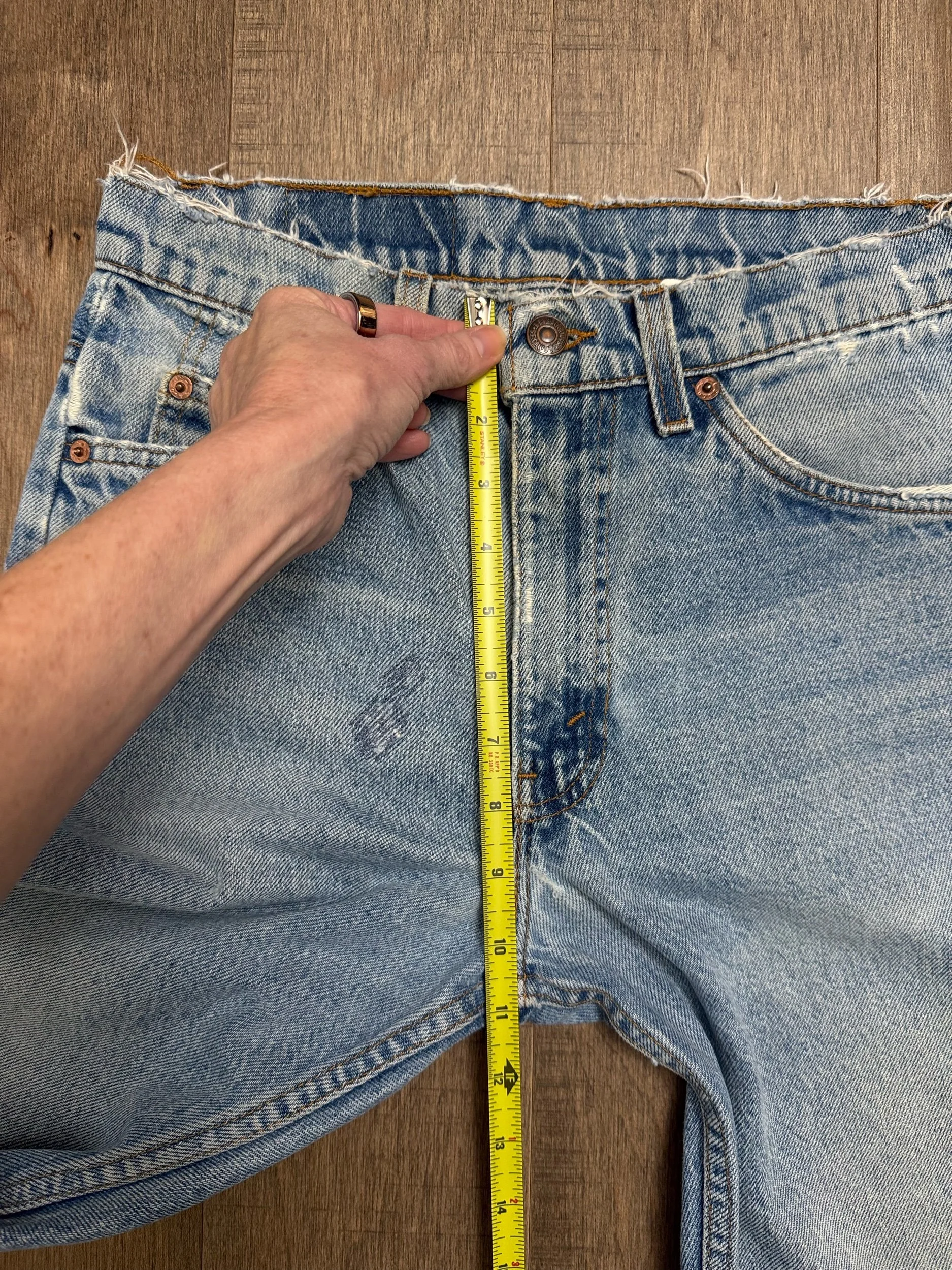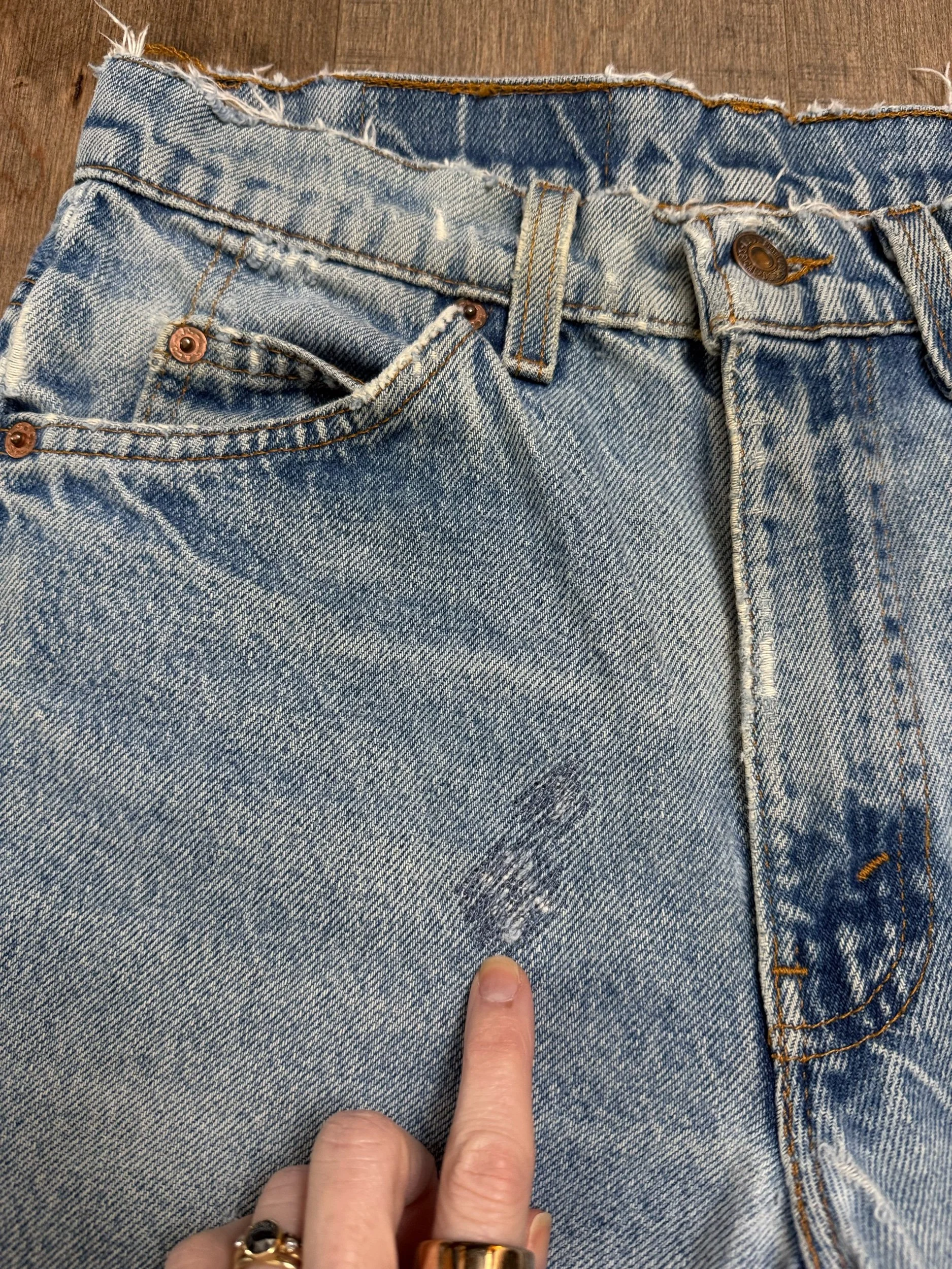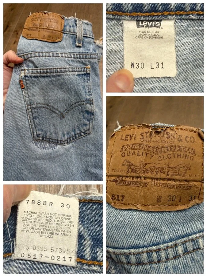 Keep in mind, vintage jeans are not new jeans. Every pair is at least 20 years old, most are older. This means they’ve been worn and likely have signs of wear - i.e. thinning areas, loose threads, signs of previous repair work, discolorations, faint (or not so faint stains), organic distressing, wear at the rivets, wear at the button holes. I do my best to describe these areas/signs of wear&tear, so please - before you buy - understand that you may receive your jeans and there will be signs of aging. Most buy vintage jeans wanting this, but if you want pristine new looking jeans, vintage likely isn’t for you. And that’s A-OK! Also note, the word “vintage” is not synonymous with super worn & faded. Vintage means over 20 years old. An item can be both vintage and still be new or like new condition.