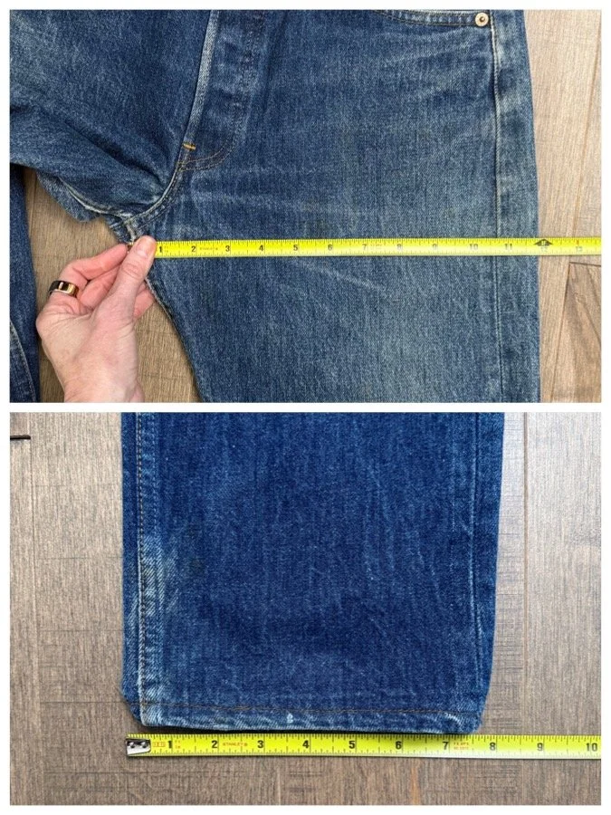 Sold as is. Keep in mind, vintage jeans are not new jeans. Every pair is at least 20 years old, most are older. This means they’ve been worn and likely have signs of wear - i.e. thinning areas, loose threads, signs of previous repair work, discolorations, faint (or not so faint stains), organic distressing, wear at the rivets, wear at the button holes. I do my best to describe these areas/signs of wear&tear, so please - before you buy - understand that you may receive your jeans and there will be signs of aging. Most buy vintage jeans wanting this, but if you want pristine new looking jeans, vintage likely isn’t for you. And that’s A-OK! Also note, the word “vintage” is not synonymous with super worn & faded. Vintage means over 20 years old. An item can be both vintage and still be new or like new condition.