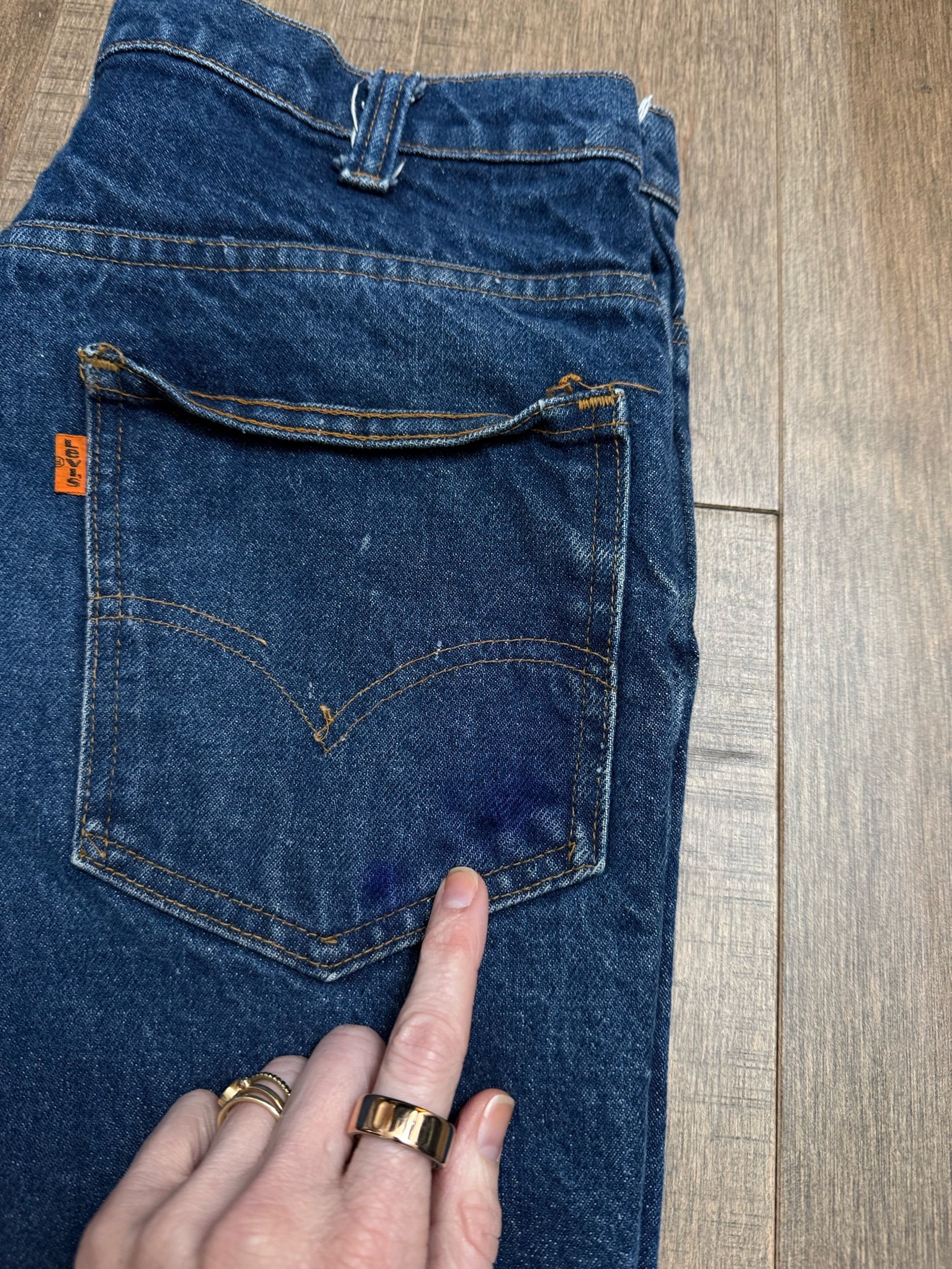 Keep in mind, vintage jeans are not new jeans. Every pair is at least 20 years old, most are older. This means they’ve been worn and likely have signs of wear - i.e. thinning areas, loose threads, signs of previous repair work, discolorations, faint (or not so faint stains), organic distressing, wear at the rivets, wear at the button holes. I do my best to describe these areas/signs of wear&tear, so please - before you buy - understand that you may receive your jeans and there will be signs of aging. Most buy vintage jeans wanting this, but if you want pristine new looking jeans, vintage likely isn’t for you. And that’s A-OK! Also note, the word “vintage” is not synonymous with super worn & faded. Vintage means over 20 years old. An item can be both vintage and still be new or like new condition.
