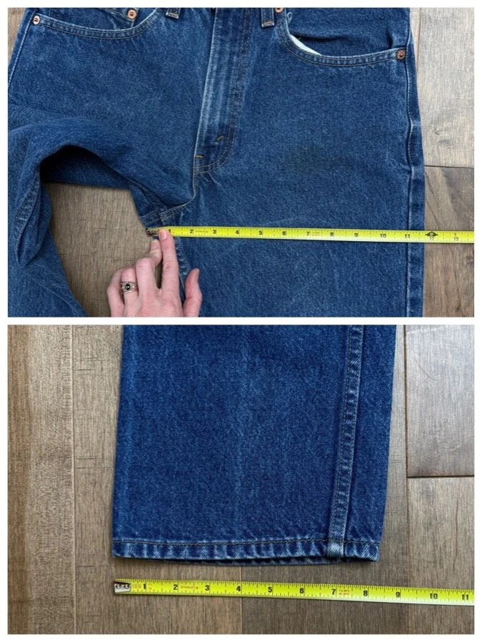 Keep in mind, vintage jeans are not new jeans. Every pair is at least 20 years old, most are older. This means they’ve been worn and likely have signs of wear - i.e. thinning areas, loose threads, signs of previous repair work, discolorations, faint (or not so faint stains), organic distressing, wear at the rivets, wear at the button holes. I do my best to describe these areas/signs of wear&tear, so please - before you buy - understand that you may receive your jeans and there will be signs of aging. Most buy vintage jeans wanting this, but if you want pristine new looking jeans, vintage likely isn’t for you. And that’s A-OK! Also note, the word “vintage” is not synonymous with super worn & faded. Vintage means over 20 years old. An item can be both vintage and still be new or like new condition.