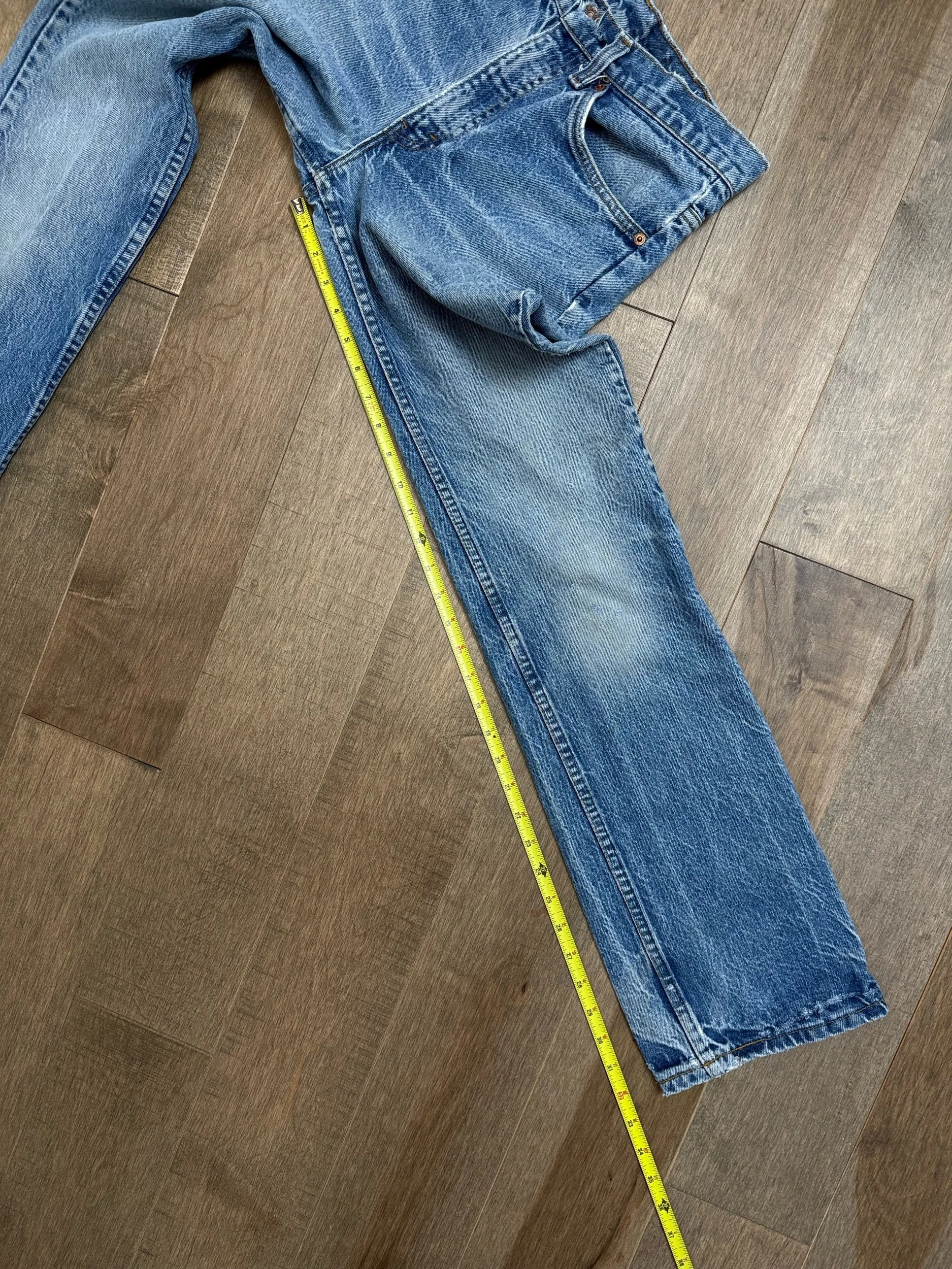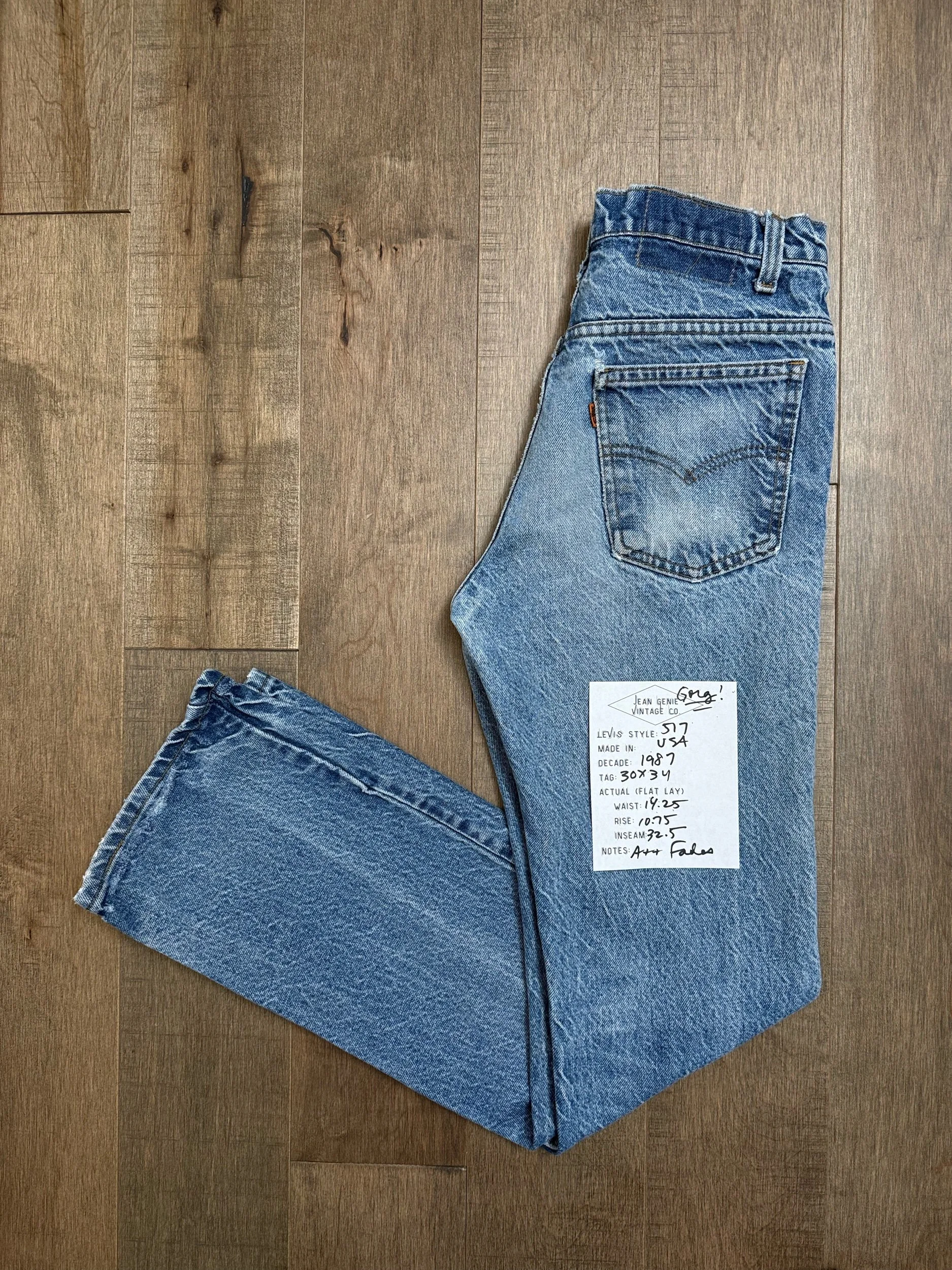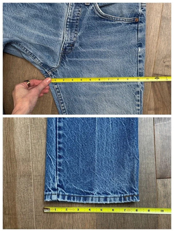 Keep in mind, vintage jeans are not new jeans. Every pair is at least 20 years old, most are older. This means they’ve been worn and likely have signs of wear - i.e. thinning areas, loose threads, signs of previous repair work, discolorations, faint (or not so faint stains), organic distressing, wear at the rivets, wear at the button holes. I do my best to describe these areas/signs of wear&tear, so please - before you buy - understand that you may receive your jeans and there will be signs of aging. Most buy vintage jeans wanting this, but if you want pristine new looking jeans, vintage likely isn’t for you. And that’s A-OK! Also note, the word “vintage” is not synonymous with super worn & faded. Vintage means over 20 years old. An item can be both vintage and still be new or like new condition.