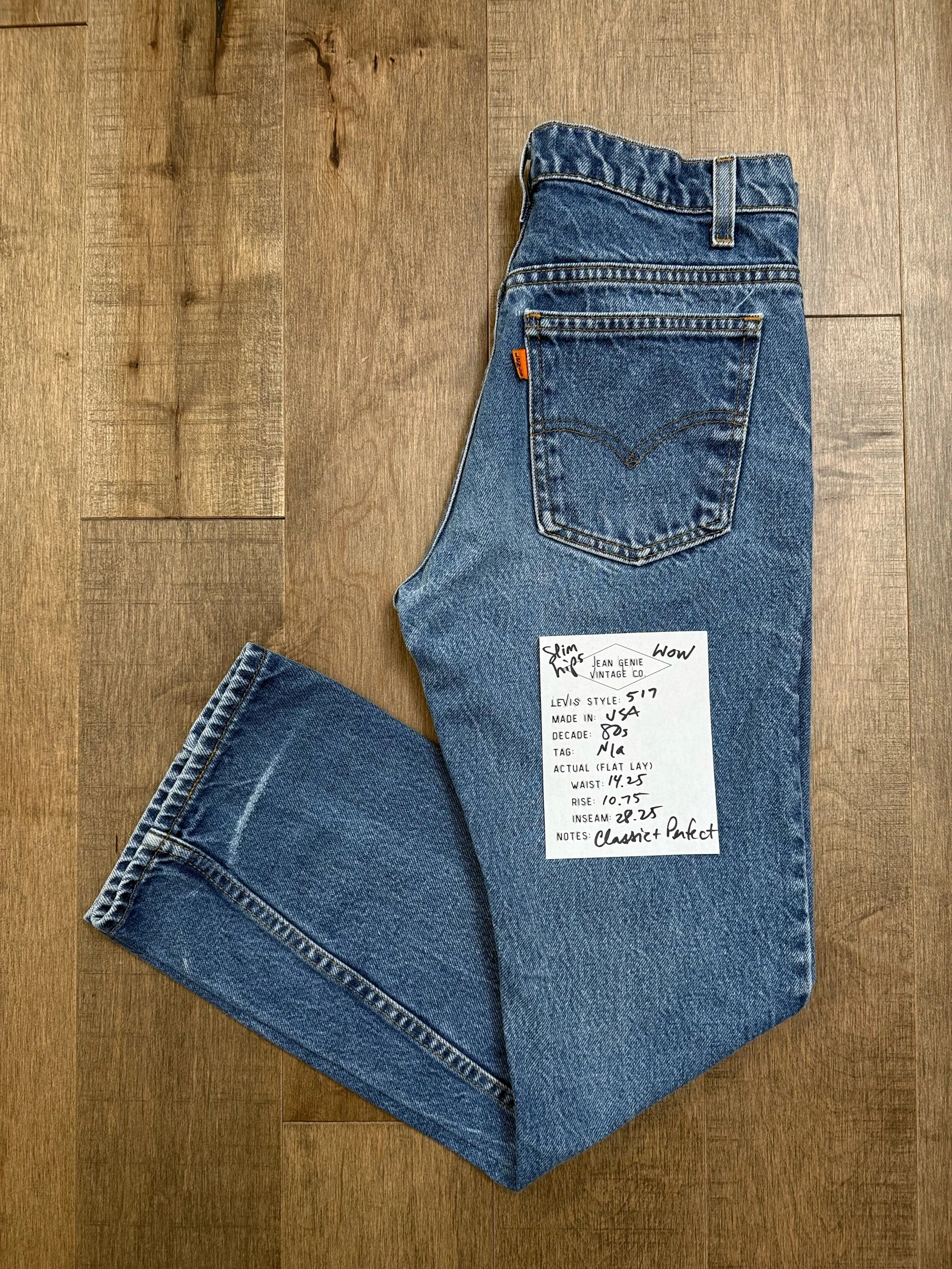 Keep in mind, vintage jeans are not new jeans. Every pair is at least 20 years old, most are older. This means they’ve been worn and likely have signs of wear - i.e. thinning areas, loose threads, signs of previous repair work, discolorations, faint (or not so faint stains), organic distressing, wear at the rivets, wear at the button holes. I do my best to describe these areas/signs of wear&tear, so please - before you buy - understand that you may receive your jeans and there will be signs of aging. Most buy vintage jeans wanting this, but if you want pristine new looking jeans, vintage likely isn’t for you. And that’s A-OK! Also note, the word “vintage” is not synonymous with super worn & faded. Vintage means over 20 years old. An item can be both vintage and still be new or like new condition.
