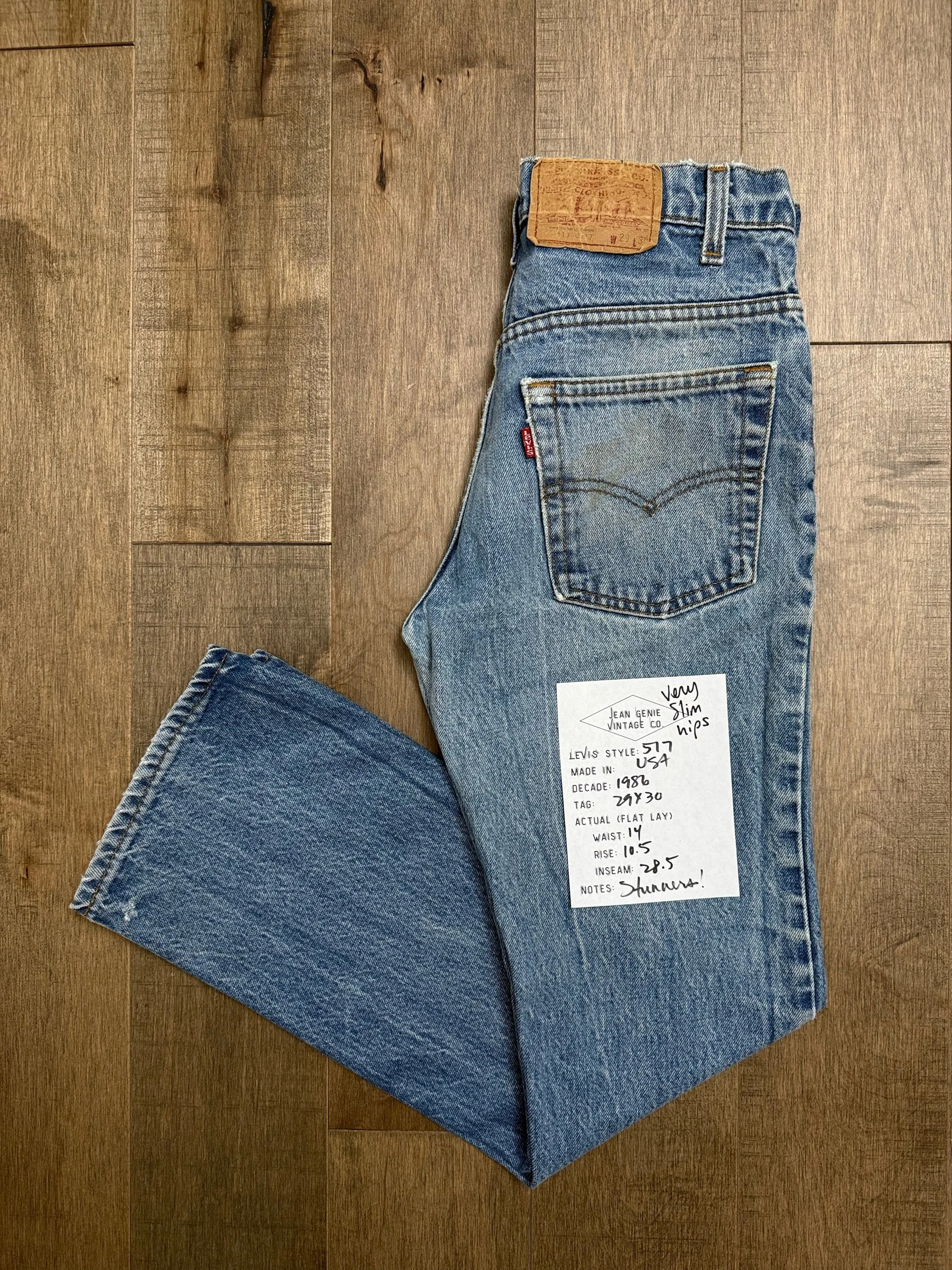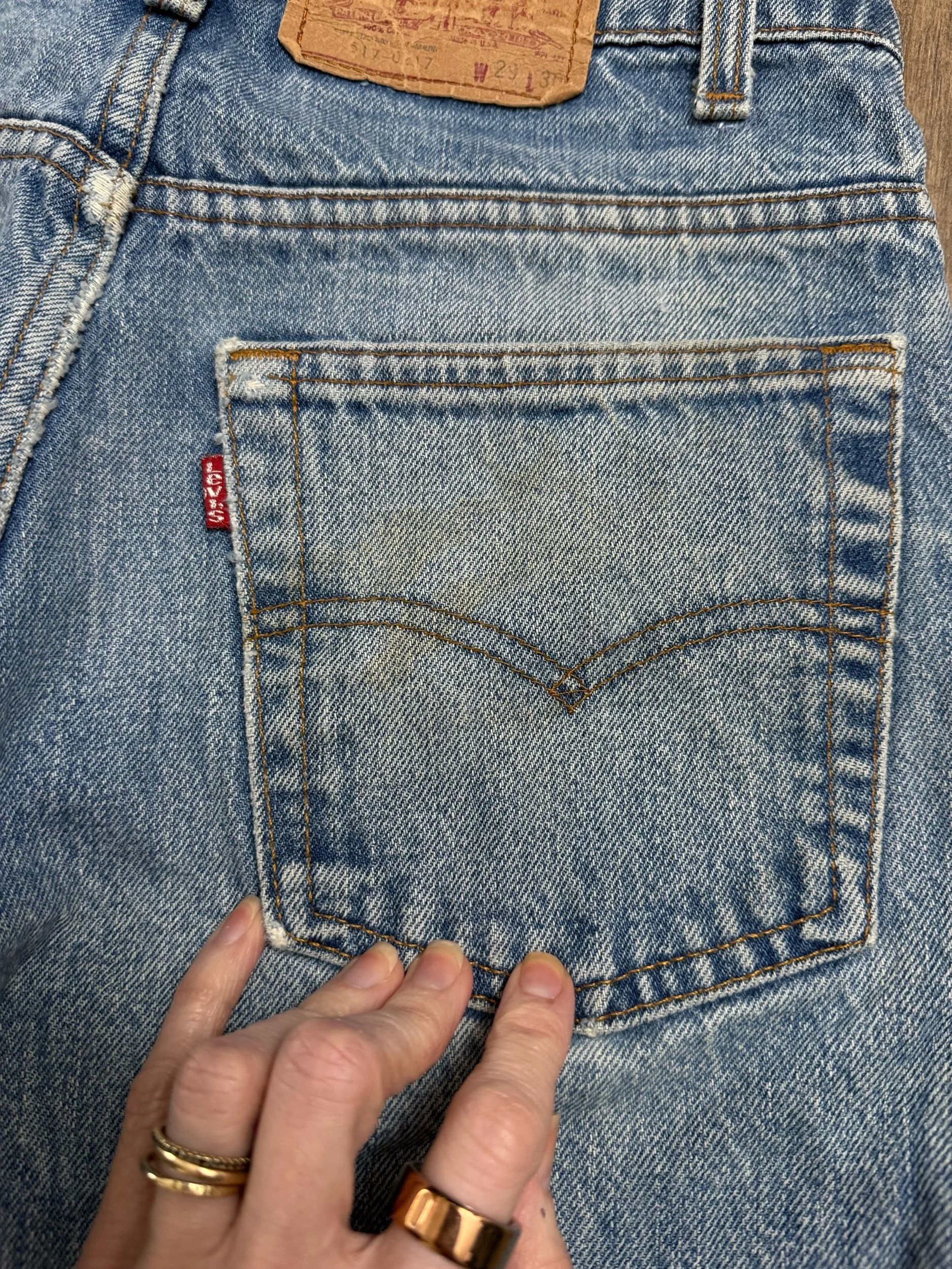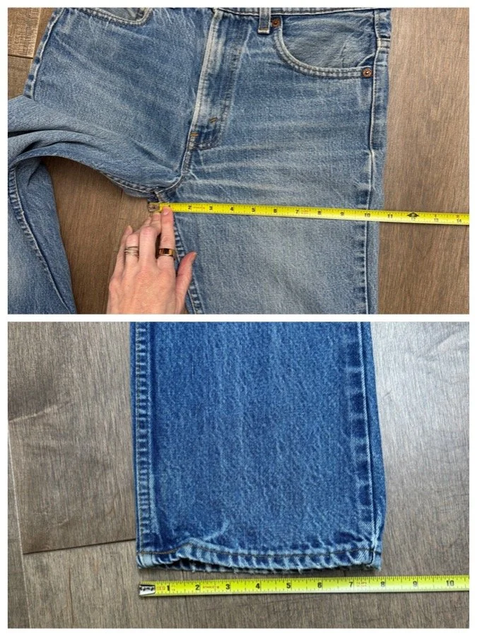 Keep in mind, vintage jeans are not new jeans. Every pair is at least 20 years old, most are older. This means they’ve been worn and likely have signs of wear - i.e. thinning areas, loose threads, signs of previous repair work, discolorations, faint (or not so faint stains), organic distressing, wear at the rivets, wear at the button holes. I do my best to describe these areas/signs of wear&tear, so please - before you buy - understand that you may receive your jeans and there will be signs of aging. Most buy vintage jeans wanting this, but if you want pristine new looking jeans, vintage likely isn’t for you. And that’s A-OK! Also note, the word “vintage” is not synonymous with super worn & faded. Vintage means over 20 years old. An item can be both vintage and still be new or like new condition.
