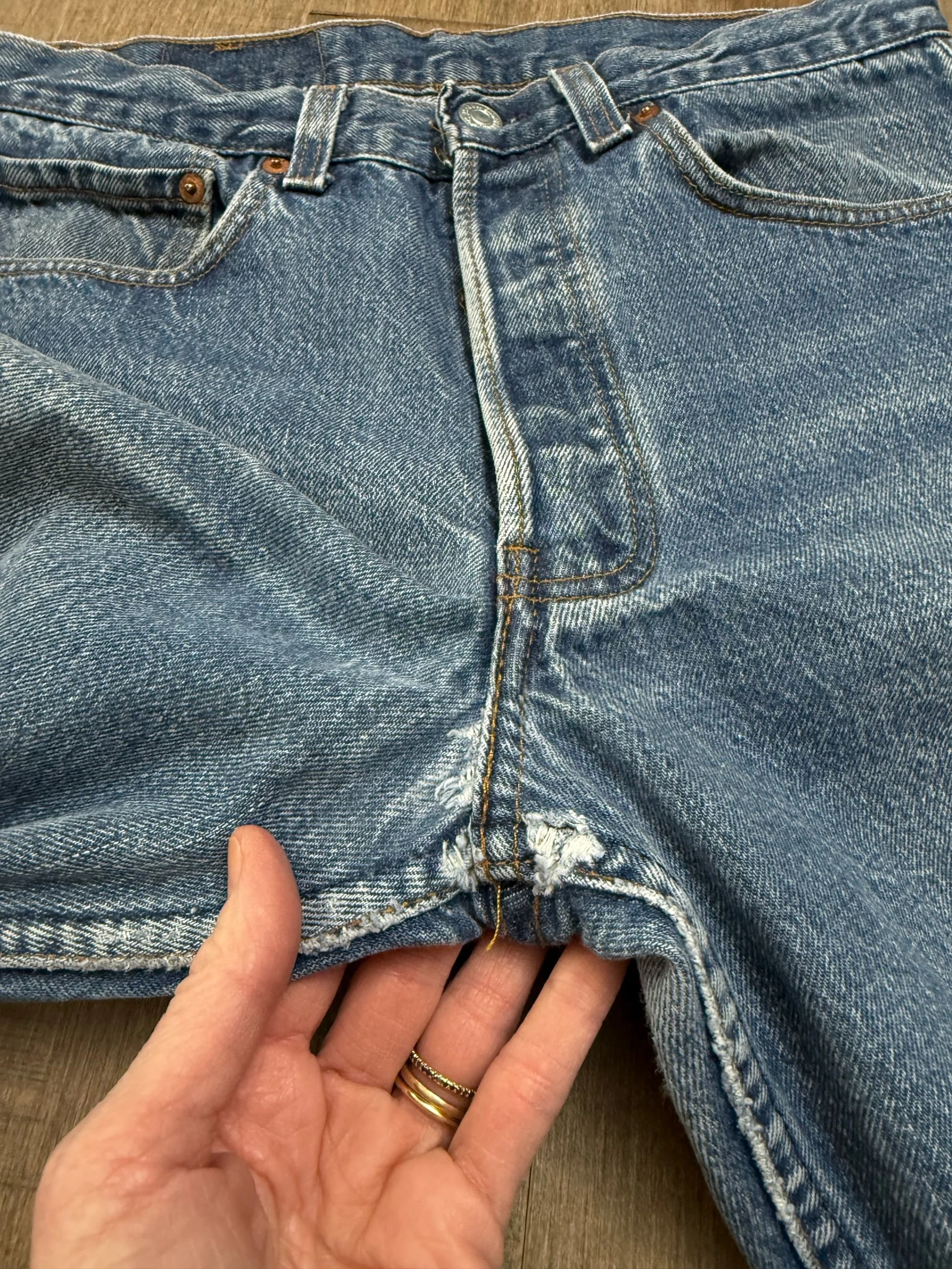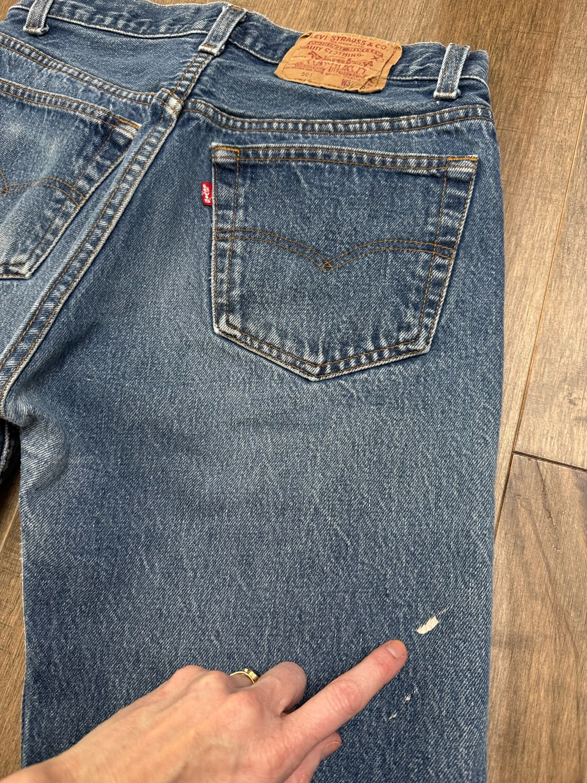 Sold as is. Keep in mind, vintage jeans are not new jeans. Every pair is at least 20 years old, most are older. This means they’ve been worn and likely have signs of wear - i.e. thinning areas, loose threads, signs of previous repair work, discolorations, faint (or not so faint stains), organic distressing, wear at the rivets, wear at the button holes. I do my best to describe these areas/signs of wear&tear, so please - before you buy - understand that you may receive your jeans and there will be signs of aging. Most buy vintage jeans wanting this, but if you want pristine new looking jeans, vintage likely isn’t for you. And that’s A-OK! Also note, the word “vintage” is not synonymous with super worn & faded. Vintage means over 20 years old. An item can be both vintage and still be new or like new condition.