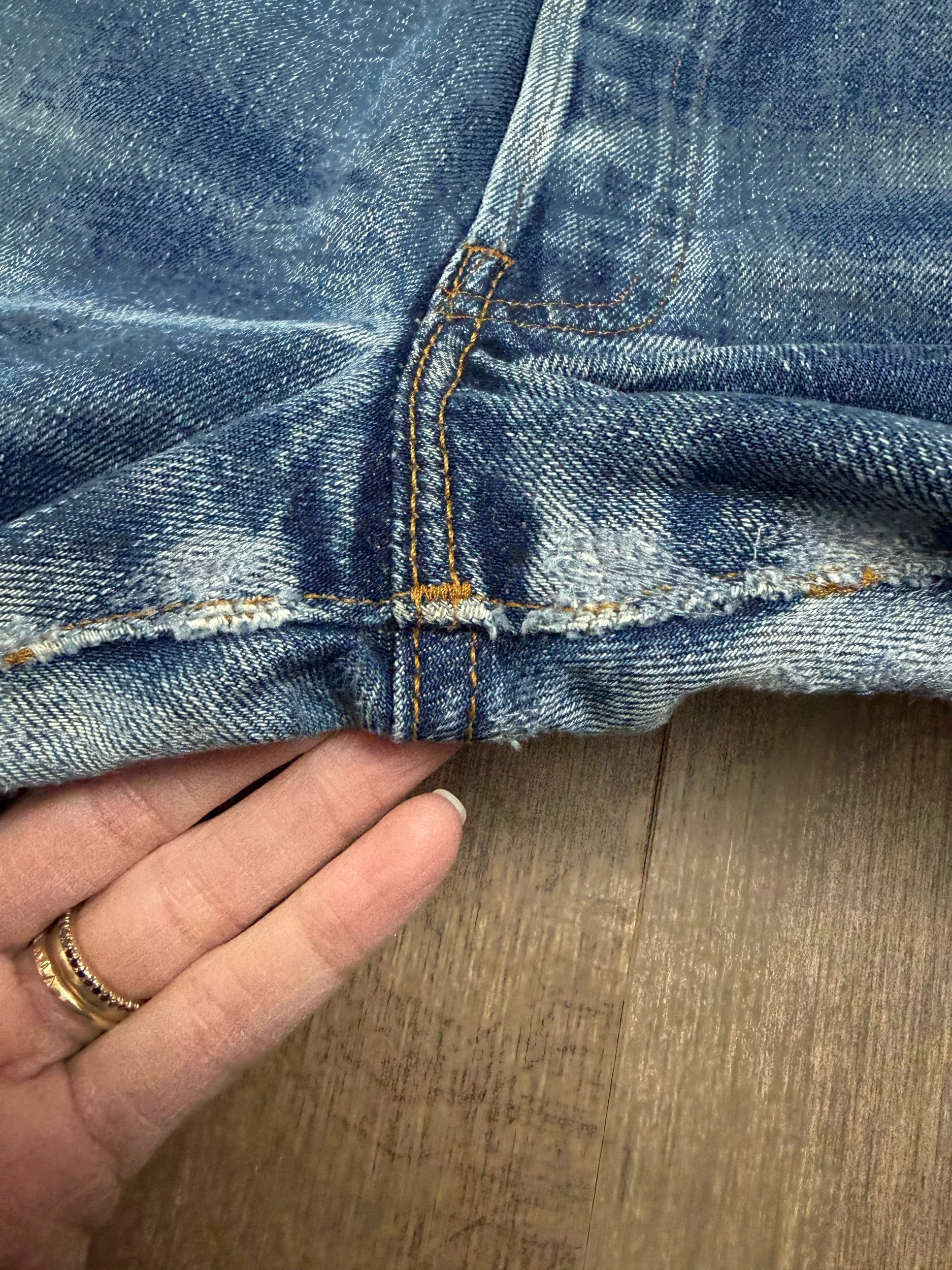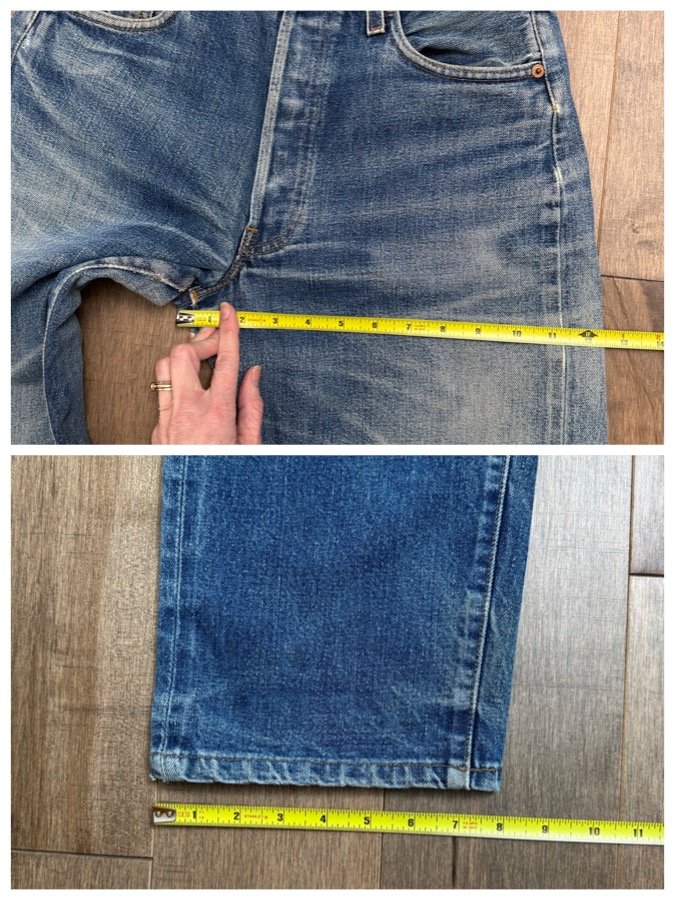 Keep in mind, vintage jeans are not new jeans. Every pair is at least 20 years old, most are older. This means they’ve been worn and likely have signs of wear - i.e. thinning areas, loose threads, signs of previous repair work, discolorations, faint (or not so faint stains), organic distressing, wear at the rivets, wear at the button holes. I do my best to describe these areas/signs of wear&tear, so please - before you buy - understand that you may receive your jeans and there will be signs of aging. Most buy vintage jeans wanting this, but if you want pristine new looking jeans, vintage likely isn’t for you. And that’s A-OK!