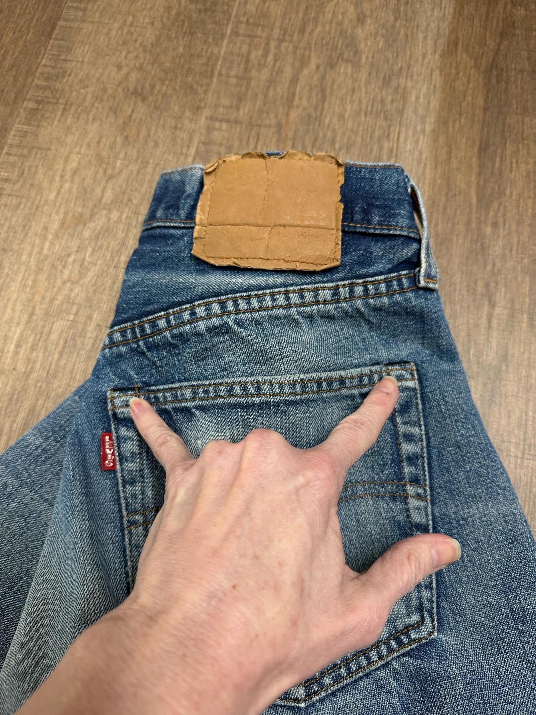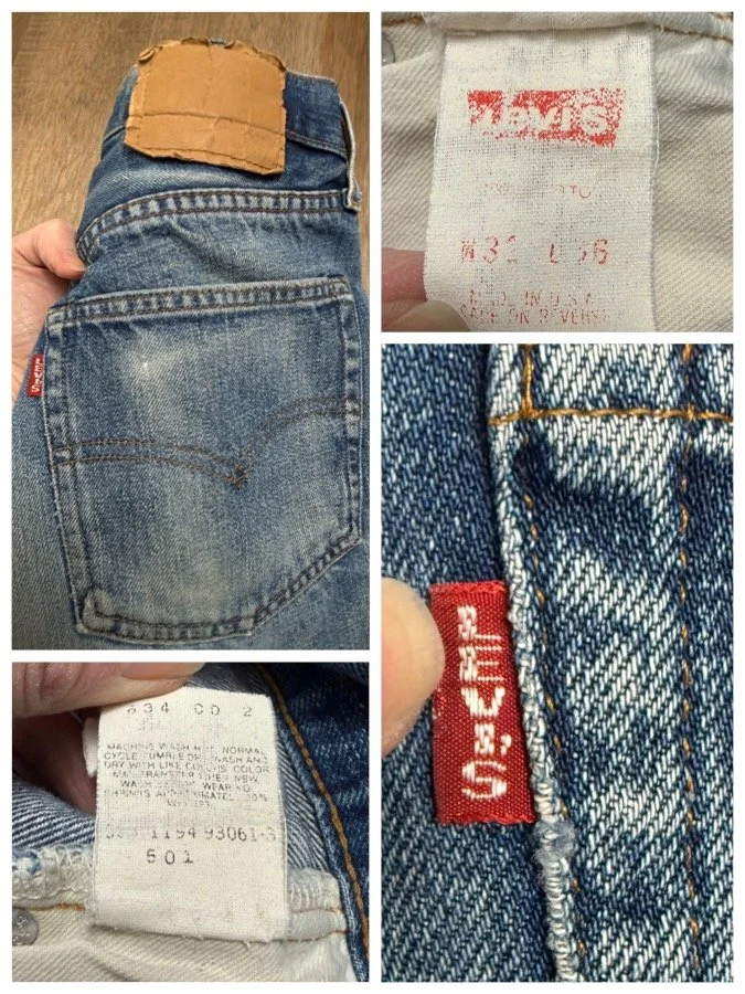 HISTORY LESSON: Levi’s stopped selvedge in 1984. Furthermore… Prior to 1971, there’s a Big E on the red tab. These are the most sought after vintage Levi’s. And valuable, and will only increase in value. Some sellers have stopped selling big E and only keep as an investment because they’re becoming so rare. Some folks cut the red tabs off back then, but you can tell the “big E” apart because of the single stitch on pockets and other telling characteristics. If there’s a V-stitch on the inside of the main button, it’s pre-1969. If there’s Selvedge in the coin pocket, it’s pre-1965. And on and on… 😉