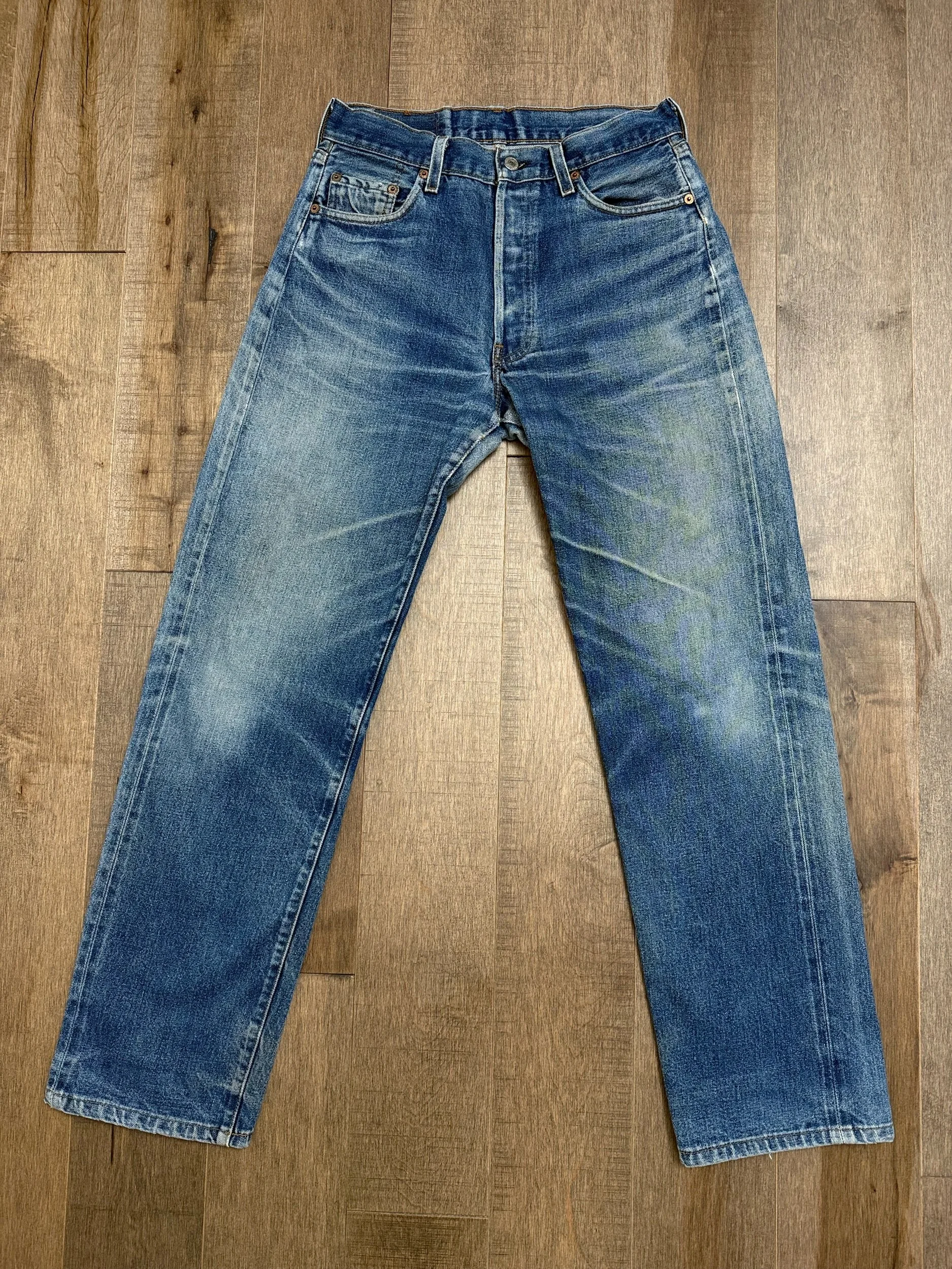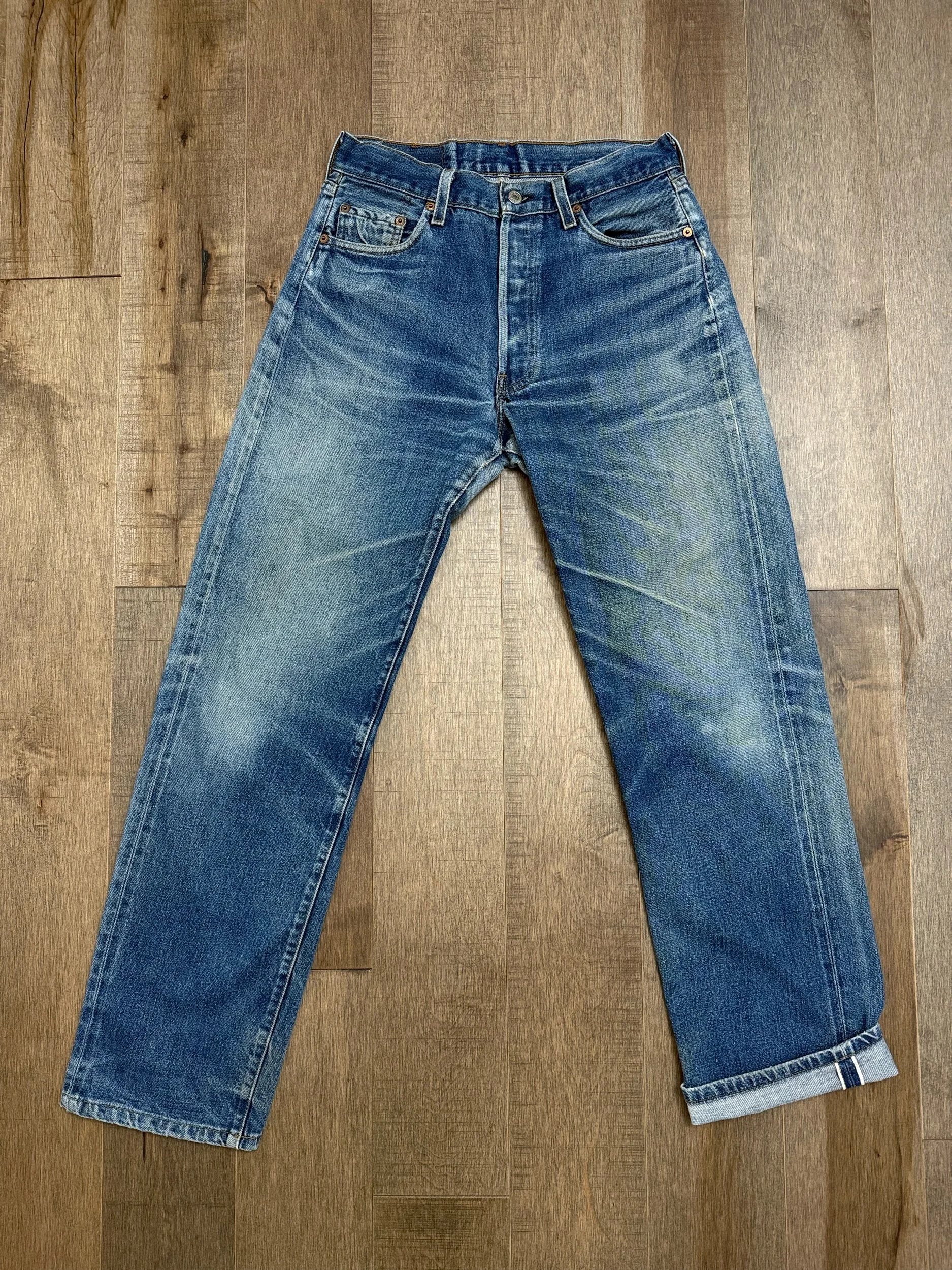 Selvedge 501s. Levi’s did reproductions of the Selvedge Big E in the early 90s in the SF Valencia shop, made in USA. Not as rare as those made in the 60s but still awesome. A way to get the “look” for less!