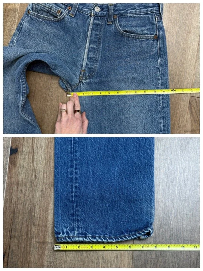Sold as is. Keep in mind, vintage jeans are not new jeans. Every pair is at least 20 years old, most are older. This means they’ve been worn and likely have signs of wear - i.e. thinning areas, loose threads, signs of previous repair work, discolorations, faint (or not so faint stains), organic distressing, wear at the rivets, wear at the button holes. I do my best to describe these areas/signs of wear&tear, so please - before you buy - understand that you may receive your jeans and there will be signs of aging. Most buy vintage jeans wanting this, but if you want pristine new looking jeans, vintage likely isn’t for you. And that’s A-OK! Also note, the word “vintage” is not synonymous with super worn & faded. Vintage means over 20 years old. An item can be both vintage and still be new or like new condition.