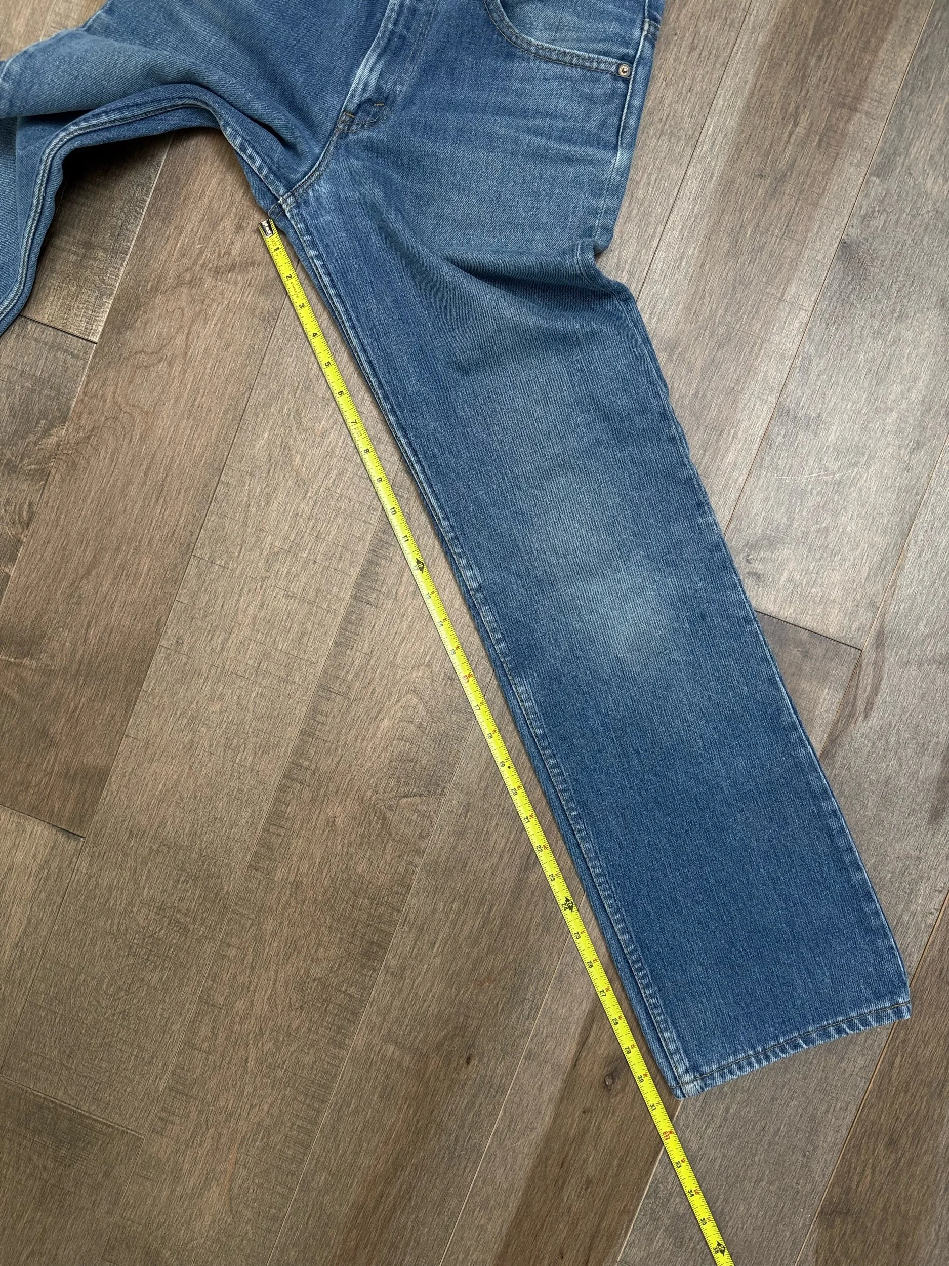 WASH: beautiful medium blue wash with cool subtle organic sun fades and those black bar tacks collectors love. So good!