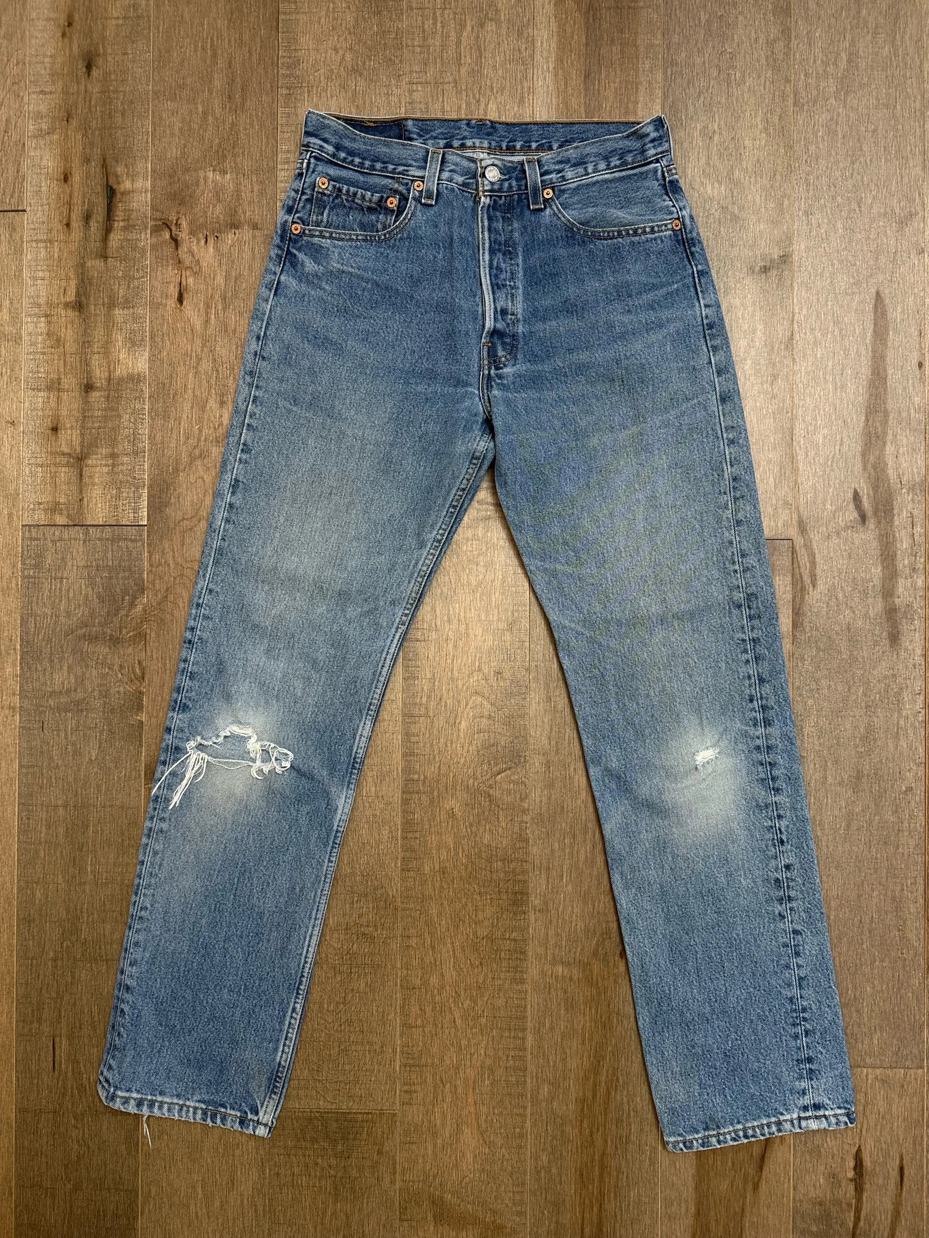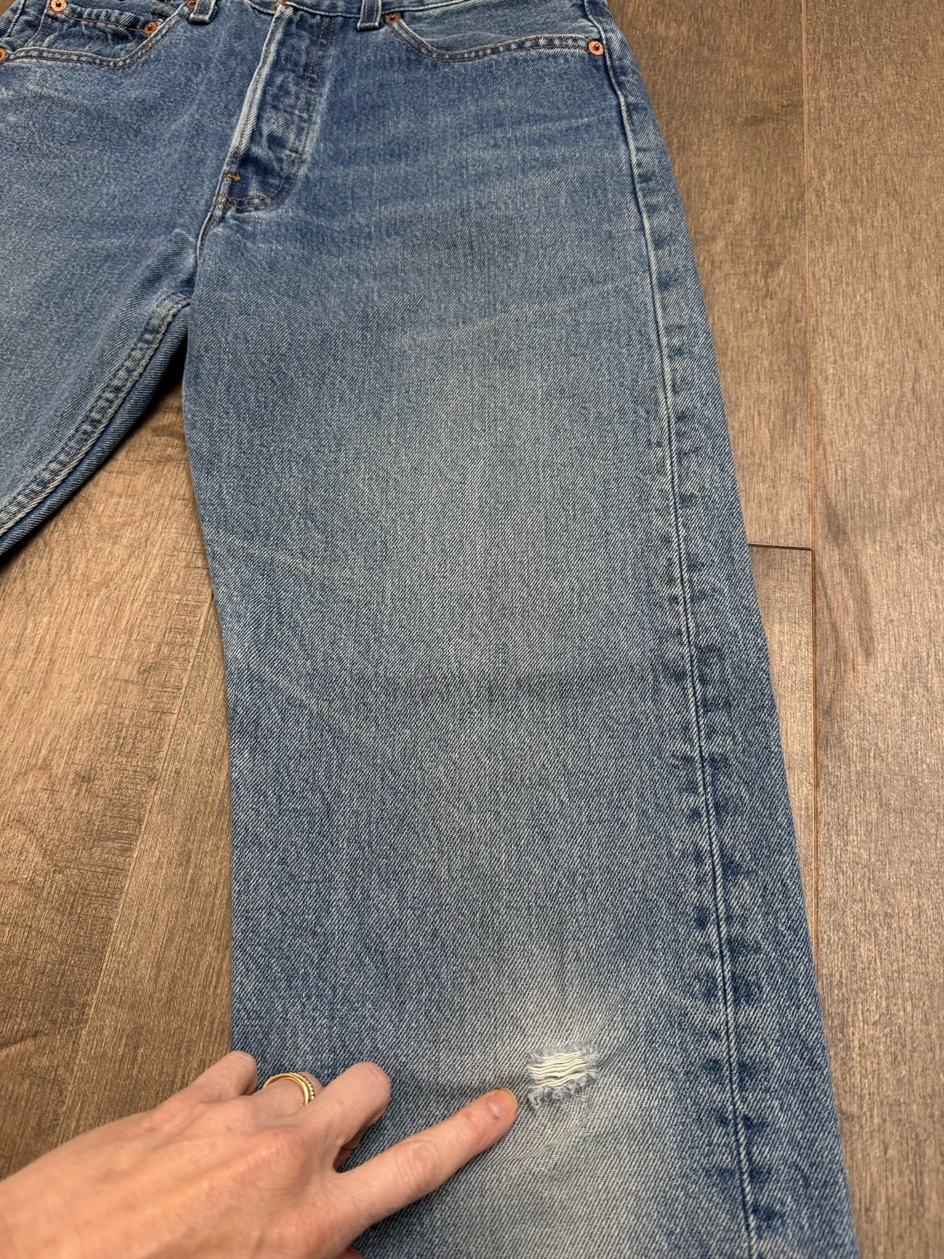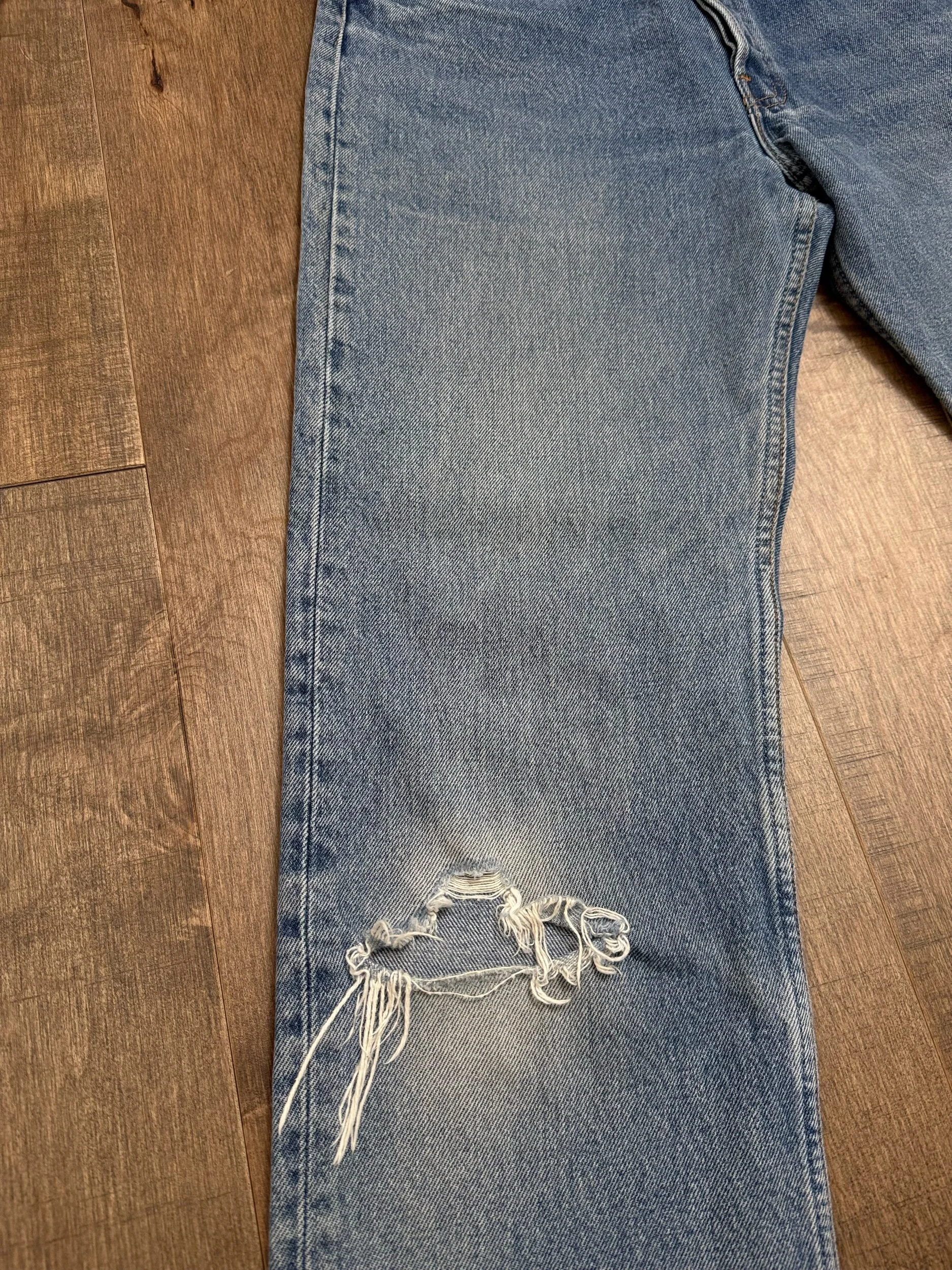 Sold as is. Keep in mind, vintage jeans are not new jeans. Every pair is at least 20 years old, most are older. This means they’ve been worn and likely have signs of wear - i.e. thinning areas, loose threads, signs of previous repair work, discolorations, faint (or not so faint stains), organic distressing, wear at the rivets, wear at the button holes. I do my best to describe these areas/signs of wear&tear, so please - before you buy - understand that you may receive your jeans and there will be signs of aging. Most buy vintage jeans wanting this, but if you want pristine new looking jeans, vintage likely isn’t for you. And that’s A-OK! Also note, the word “vintage” is not synonymous with super worn & faded. Vintage means over 20 years old. An item can be both vintage and still be new or like new condition.