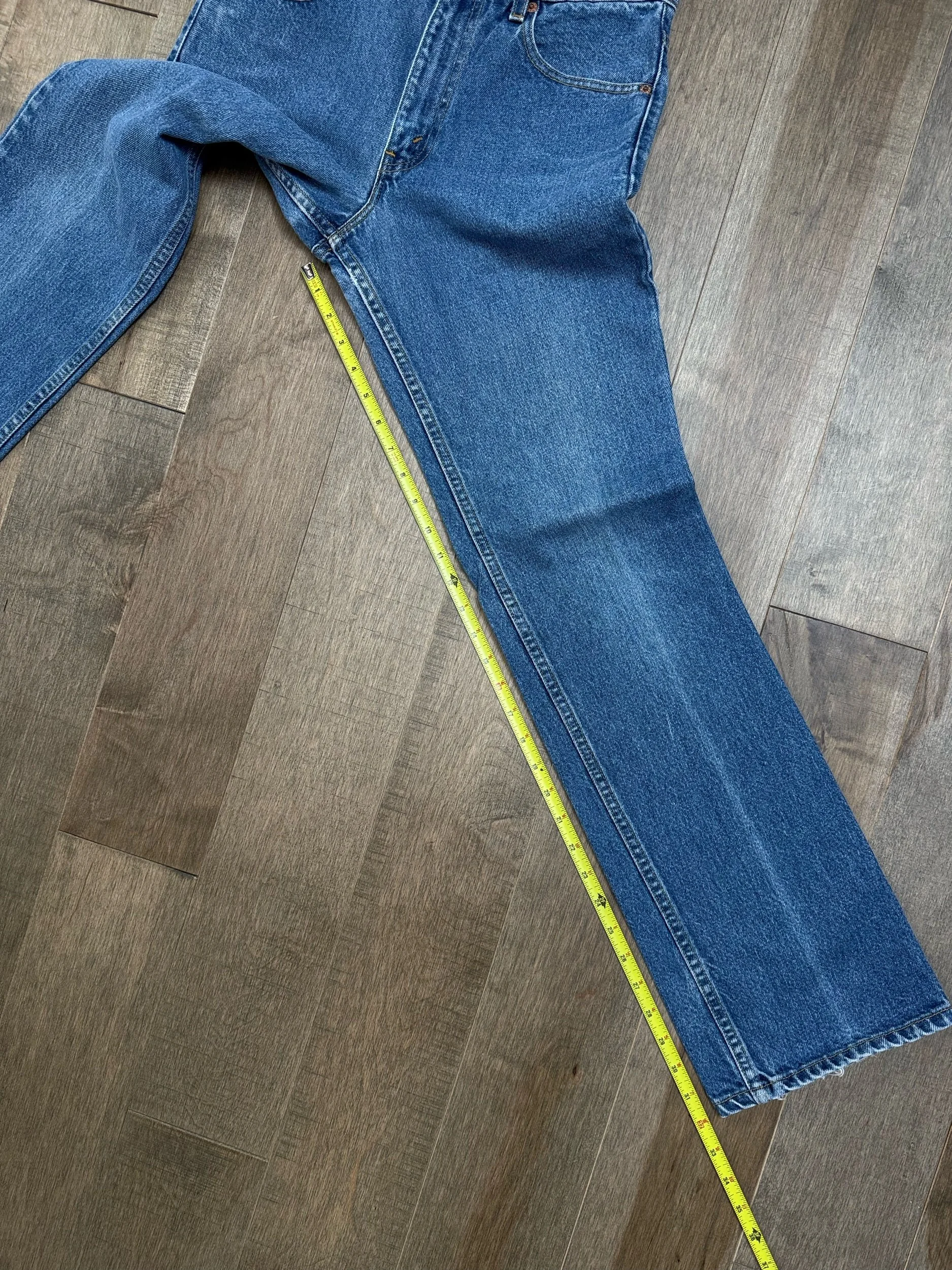 Keep in mind, vintage jeans are not new jeans. Every pair is at least 20 years old, most are older. This means they’ve been worn and likely have signs of wear - i.e. thinning areas, loose threads, signs of previous repair work, discolorations, faint (or not so faint stains), organic distressing, wear at the rivets, wear at the button holes. I do my best to describe these areas/signs of wear&tear, so please - before you buy - understand that you may receive your jeans and there will be signs of aging. Most buy vintage jeans wanting this, but if you want pristine new looking jeans, vintage likely isn’t for you. And that’s A-OK! Also note, the word “vintage” is not synonymous with super worn & faded. Vintage means over 20 years old. An item can be both vintage and still be new or like new condition.