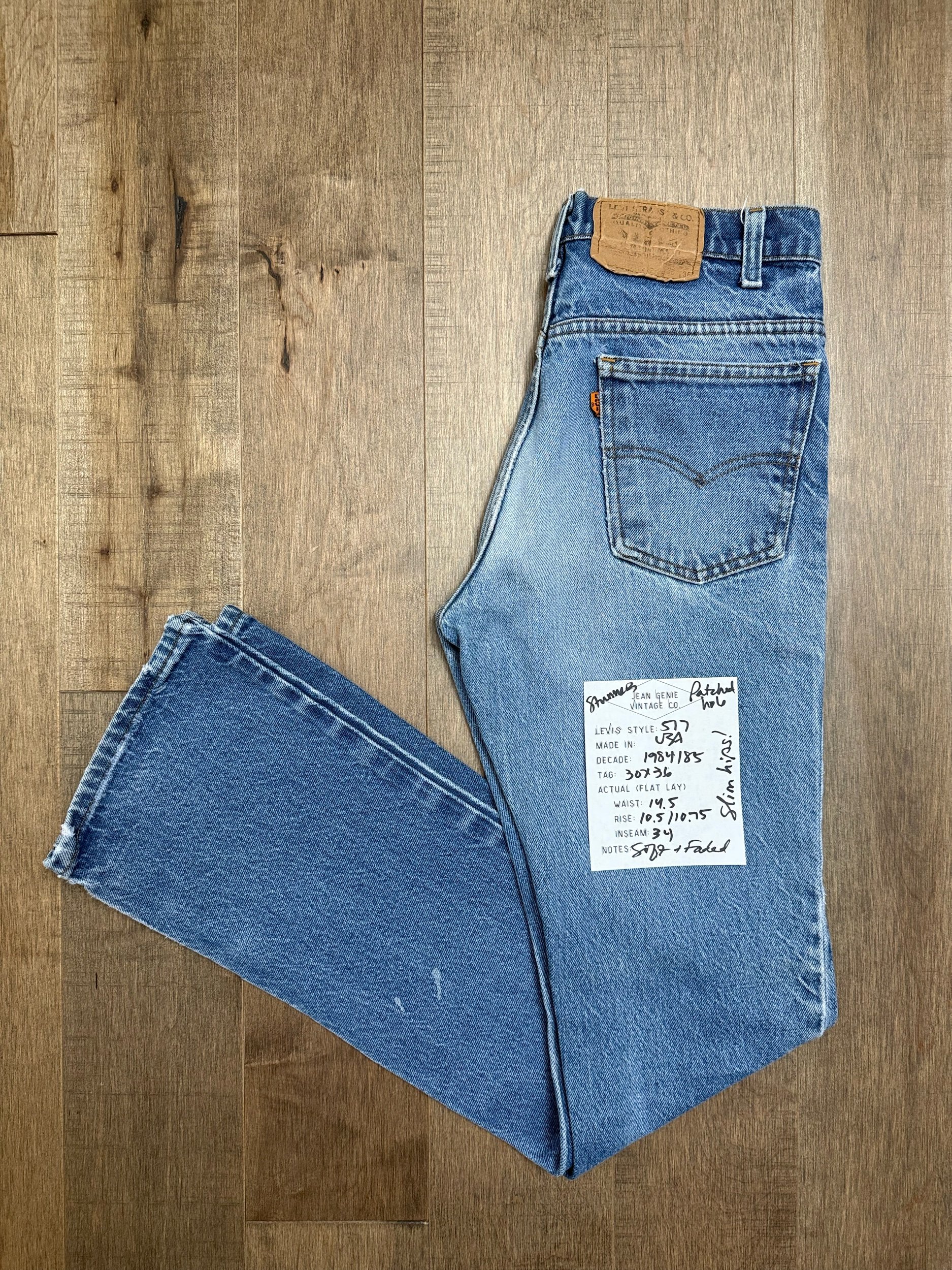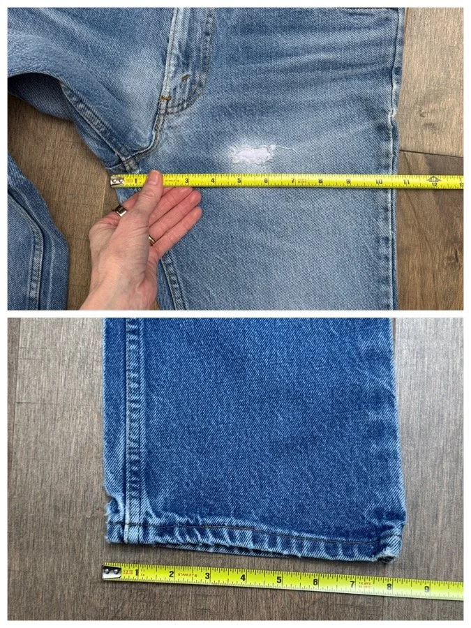 Keep in mind, vintage jeans are not new jeans. Every pair is at least 20 years old, most are older. This means they’ve been worn and likely have signs of wear - i.e. thinning areas, loose threads, signs of previous repair work, discolorations, faint (or not so faint stains), organic distressing, wear at the rivets, wear at the button holes. I do my best to describe these areas/signs of wear&tear, so please - before you buy - understand that you may receive your jeans and there will be signs of aging. Most buy vintage jeans wanting this, but if you want pristine new looking jeans, vintage likely isn’t for you. And that’s A-OK! Also note, the word “vintage” is not synonymous with super worn & faded. Vintage means over 20 years old. An item can be both vintage and still be new or like new condition.