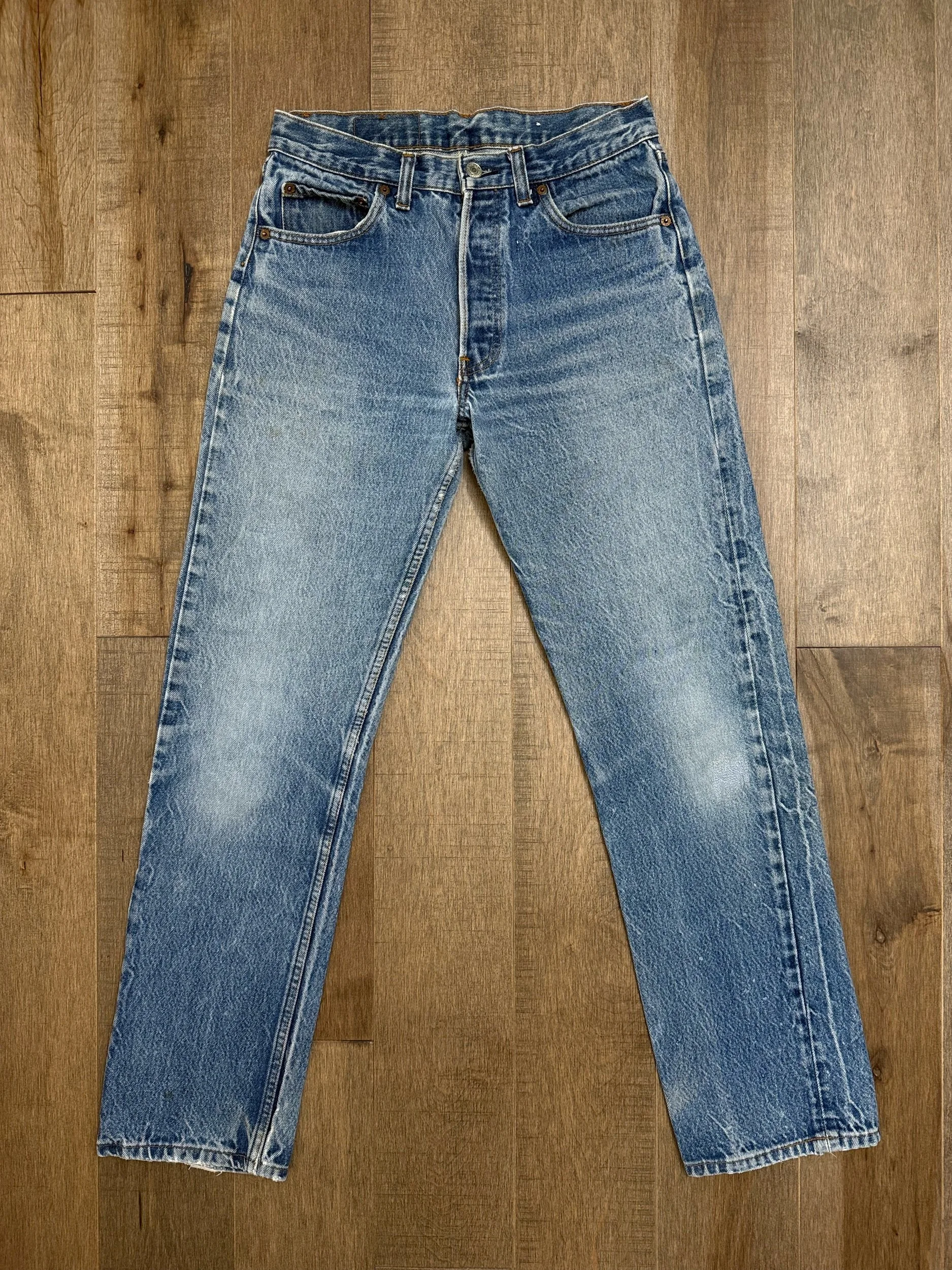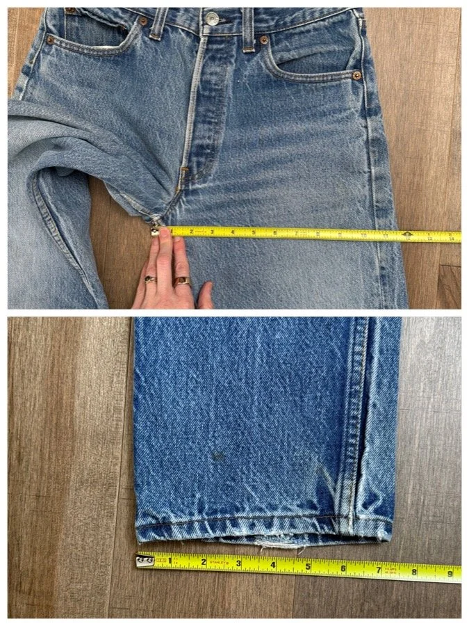 Sold as is. Keep in mind, vintage jeans are not new jeans. Every pair is at least 20 years old, most are older. This means they’ve been worn and likely have signs of wear - i.e. thinning areas, loose threads, signs of previous repair work, discolorations, faint (or not so faint stains), organic distressing, wear at the rivets, wear at the button holes. I do my best to describe these areas/signs of wear&tear, so please - before you buy - understand that you may receive your jeans and there will be signs of aging. Most buy vintage jeans wanting this, but if you want pristine new looking jeans, vintage likely isn’t for you. And that’s A-OK! Also note, the word “vintage” is not synonymous with super worn & faded. Vintage means over 20 years old. An item can be both vintage and still be new or like new condition.