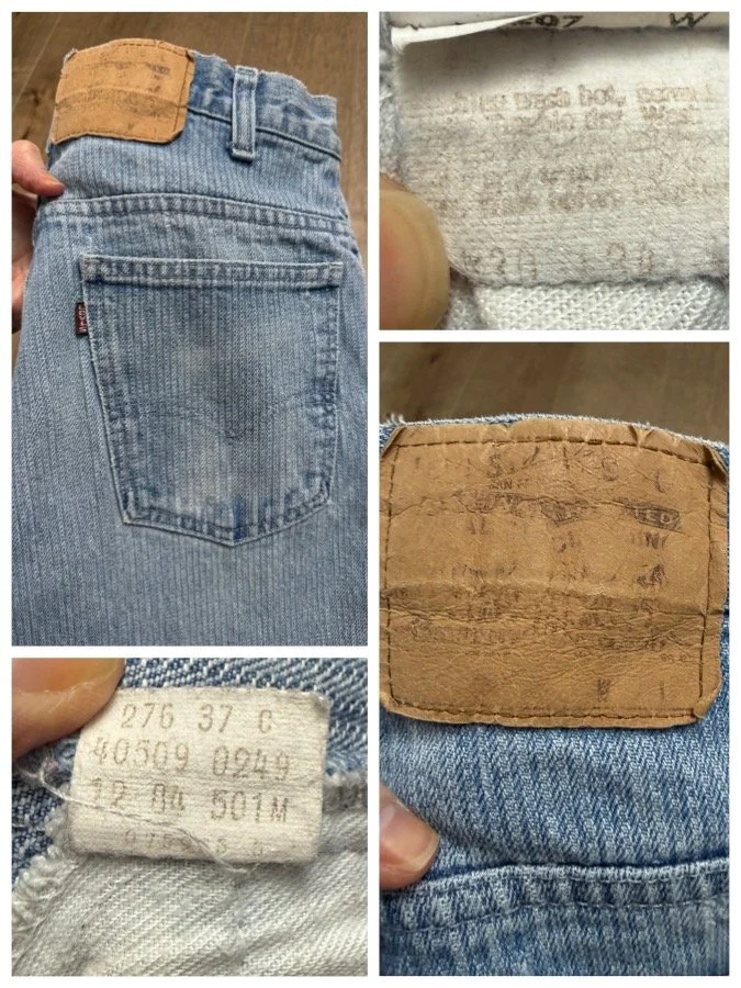 Keep in mind, vintage jeans are not new jeans. Every pair is at least 20 years old, most are older. This means they’ve been worn and likely have signs of wear - i.e. thinning areas, loose threads, signs of previous repair work, discolorations, faint (or not so faint stains), organic distressing, wear at the rivets, wear at the button holes. I do my best to describe these areas/signs of wear&tear, so please - before you buy - understand that you may receive your jeans and there will be signs of aging. Most buy vintage jeans wanting this, but if you want pristine new looking jeans, vintage likely isn’t for you. And that’s A-OK! Also note, the word “vintage” is not synonymous with super worn & faded. Vintage means over 20 years old. An item can be both vintage and still be new or like new condition.
